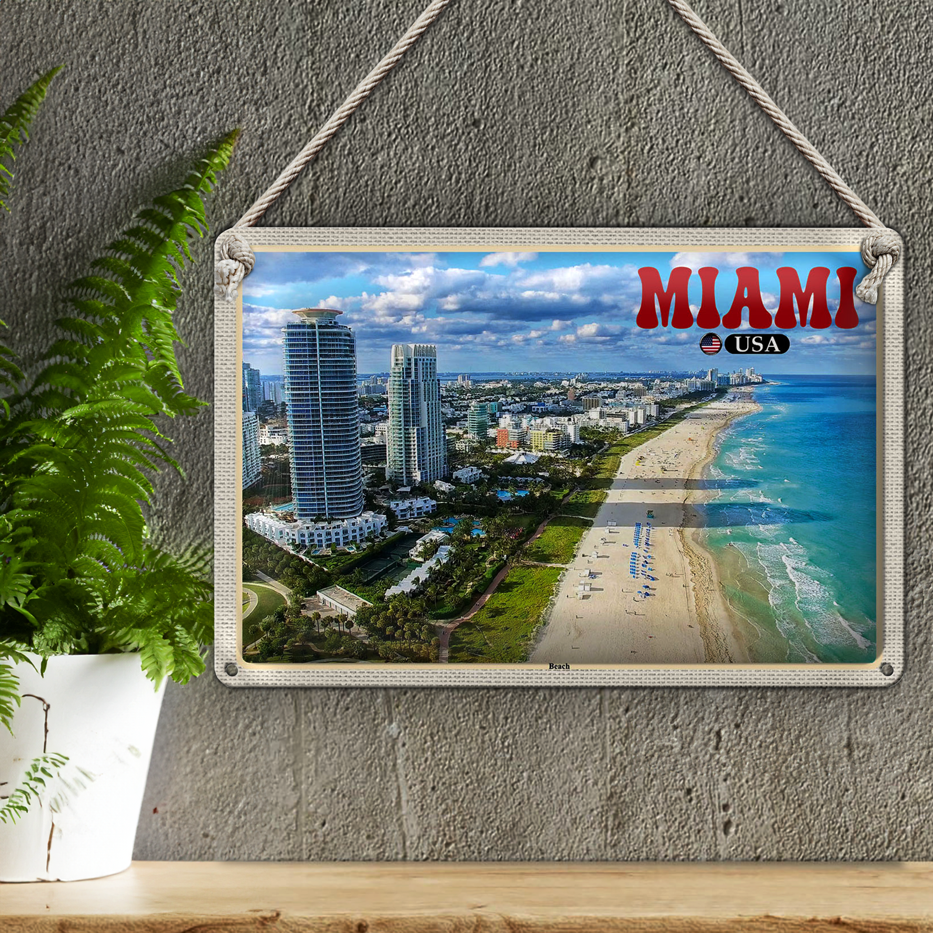 Blechschild Reise 30x20cm Miami USA Strand Hochhäuser Meer Urlaub
