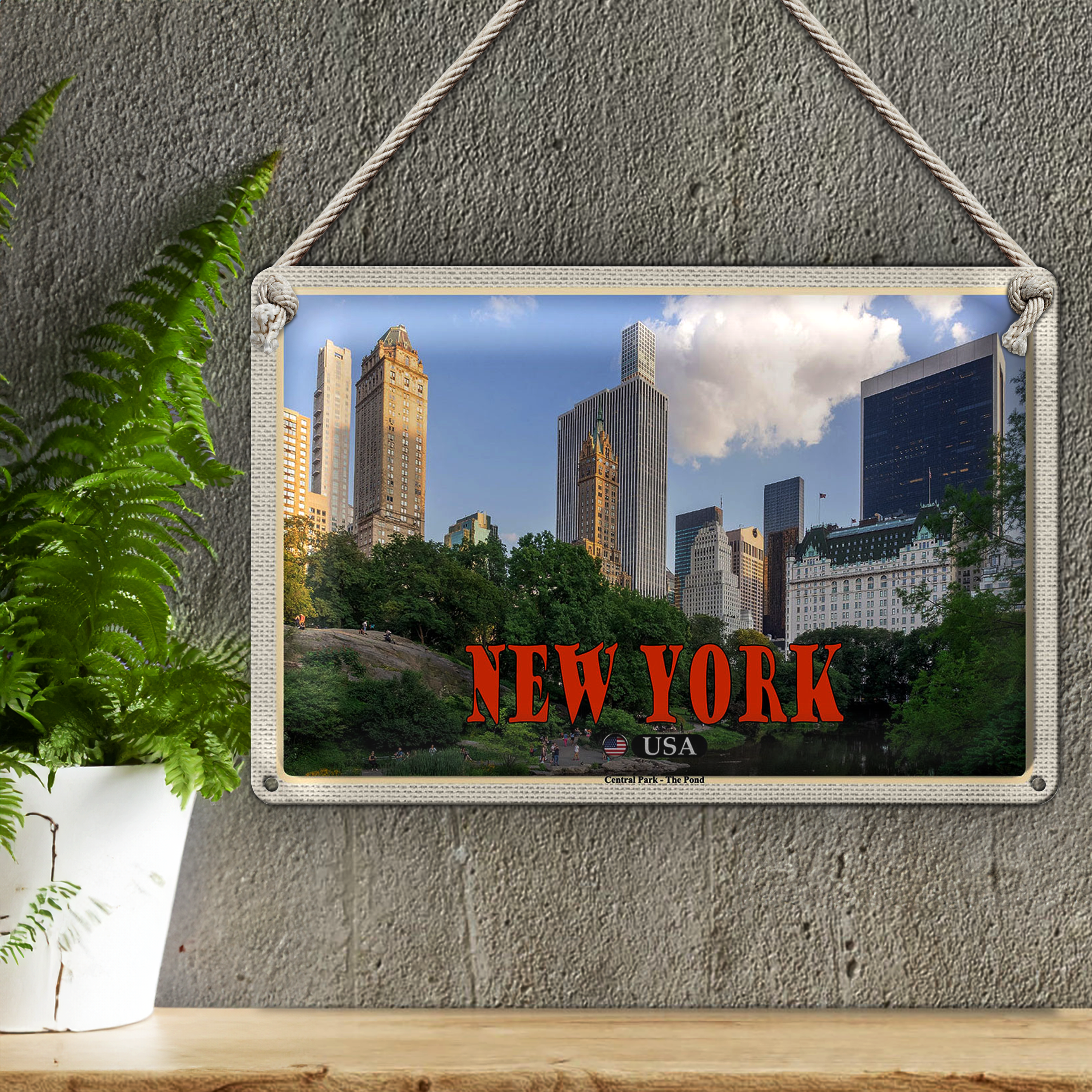 Blechschild Reise 30x20cm New York USA Central Park - The Pond See