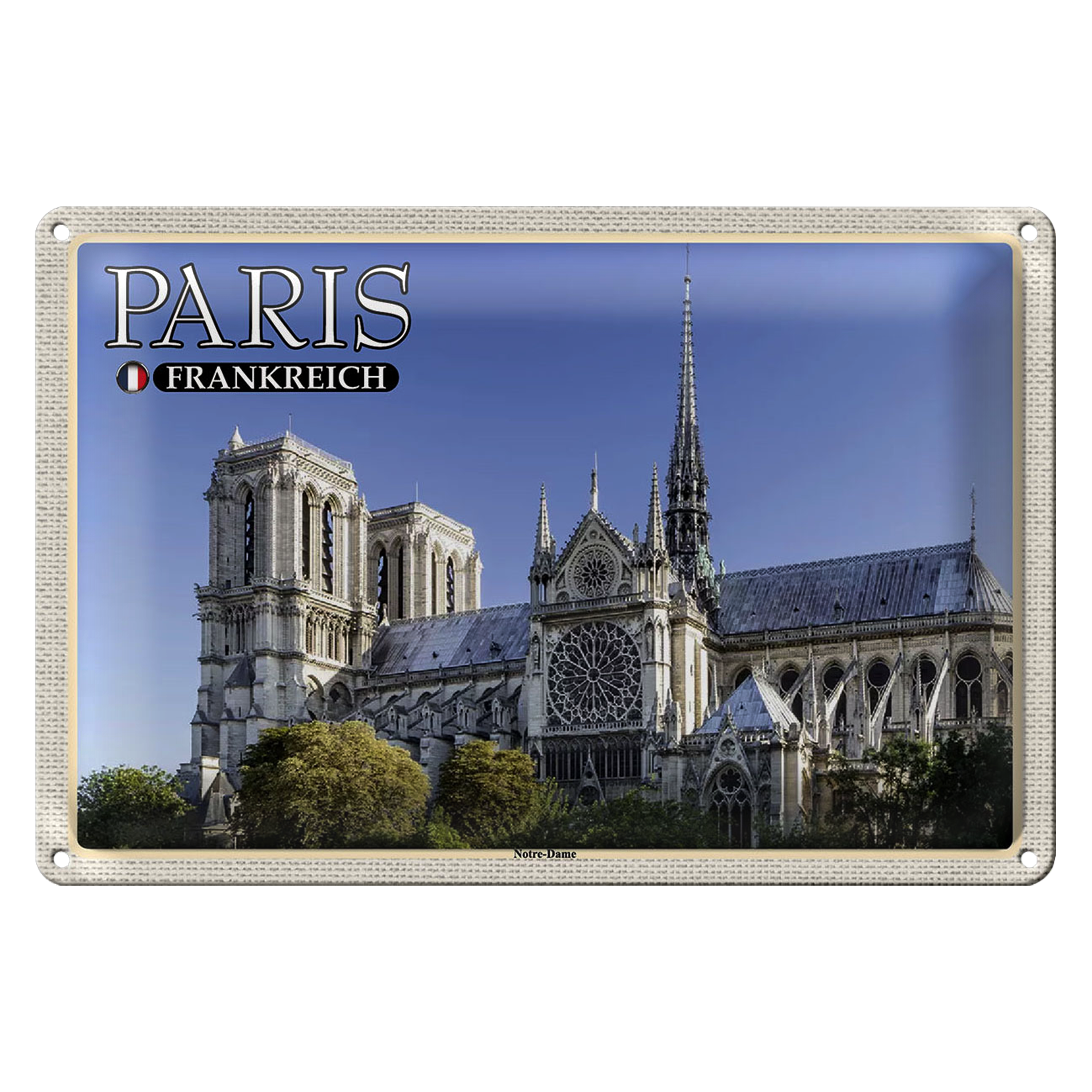 Blechschild Reise 30x20cm Paris Frankreich Notre-Dame Kathedrale