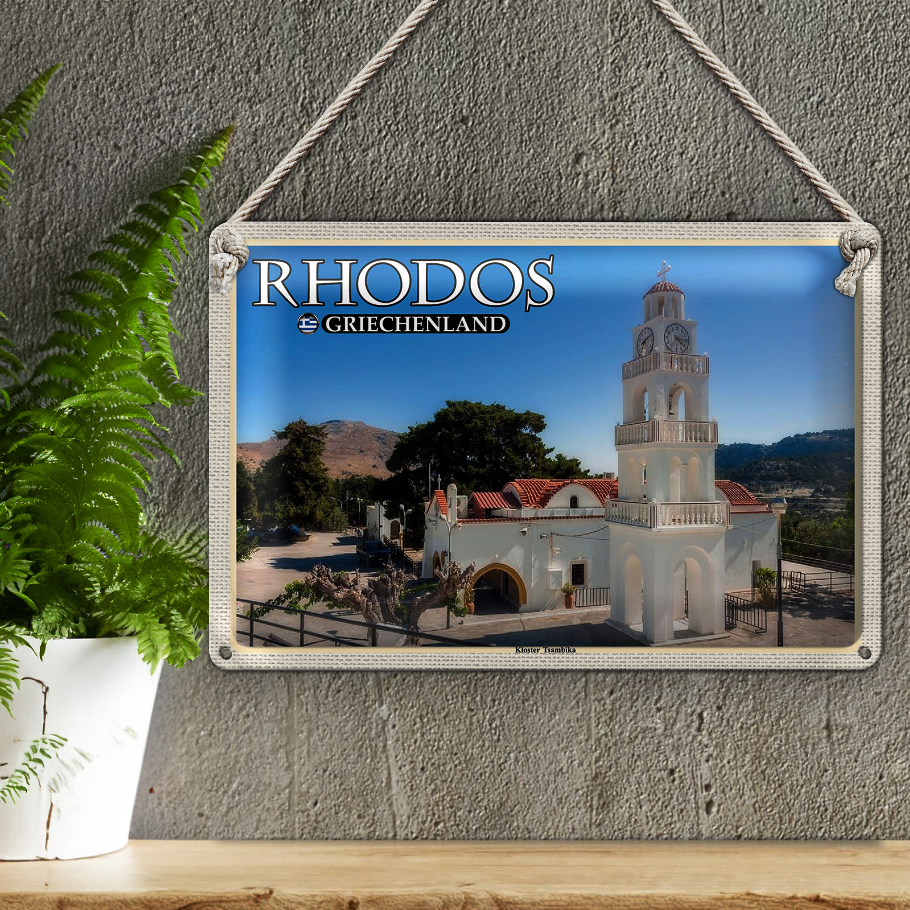 Blechschild Reise 30x20cm Rhodos Griechenland Kloster Tsambika
