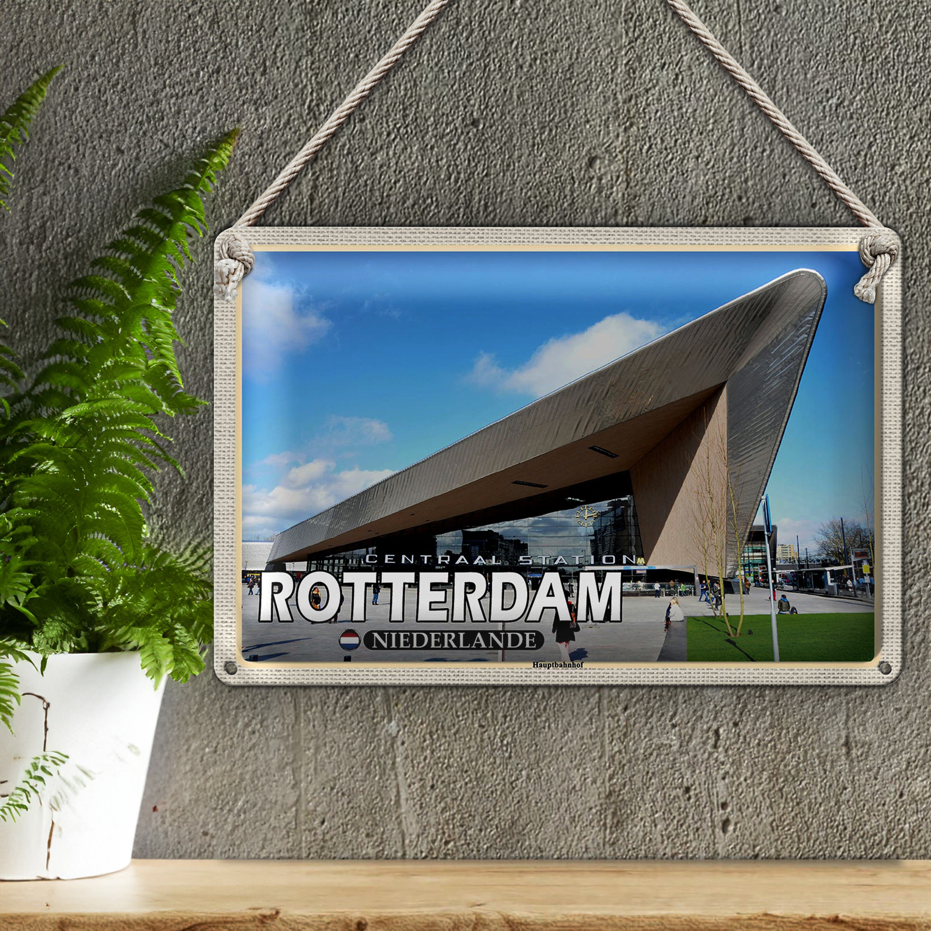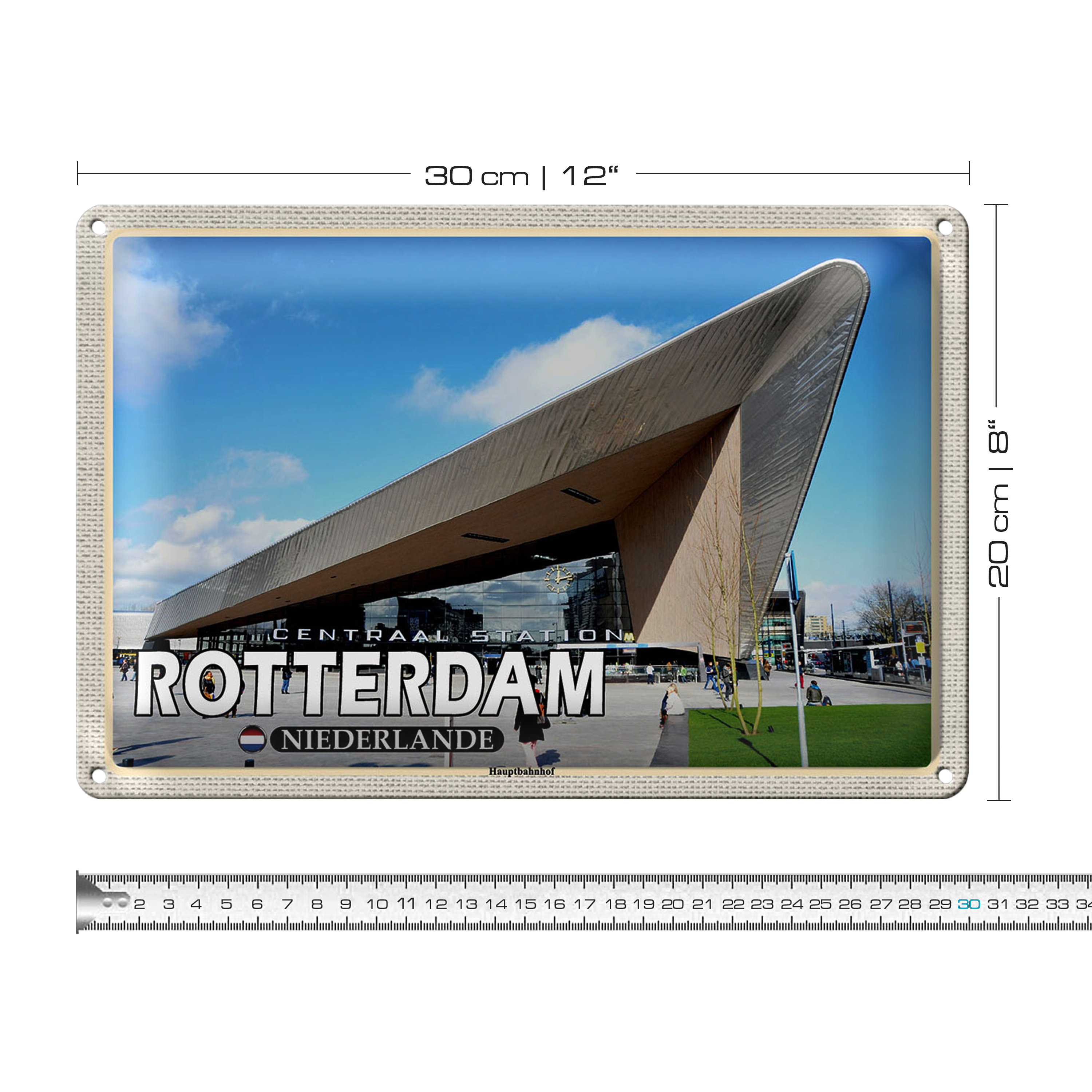 Blechschild Reise 30x20cm Rotterdam Niederlande Hauptbahnhof