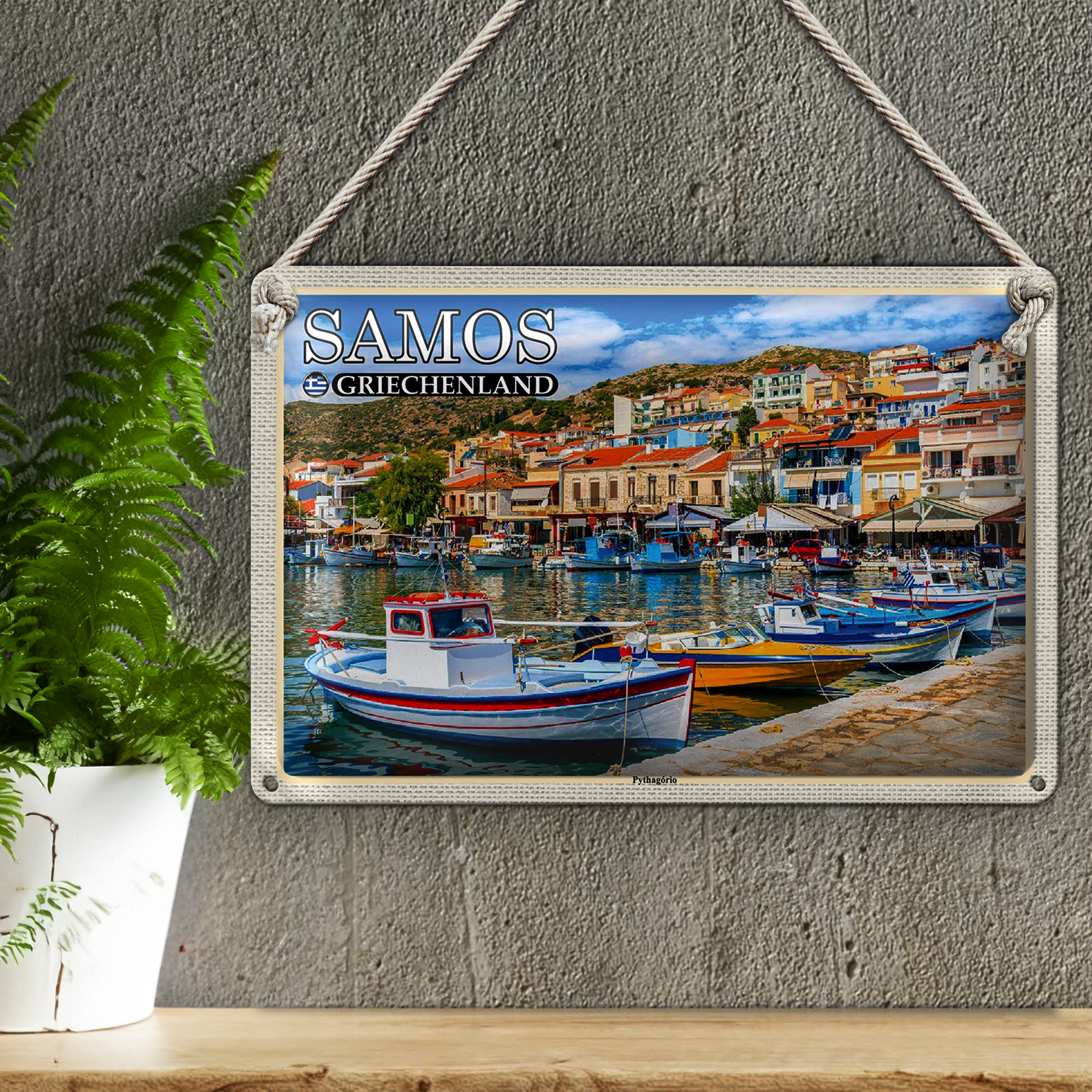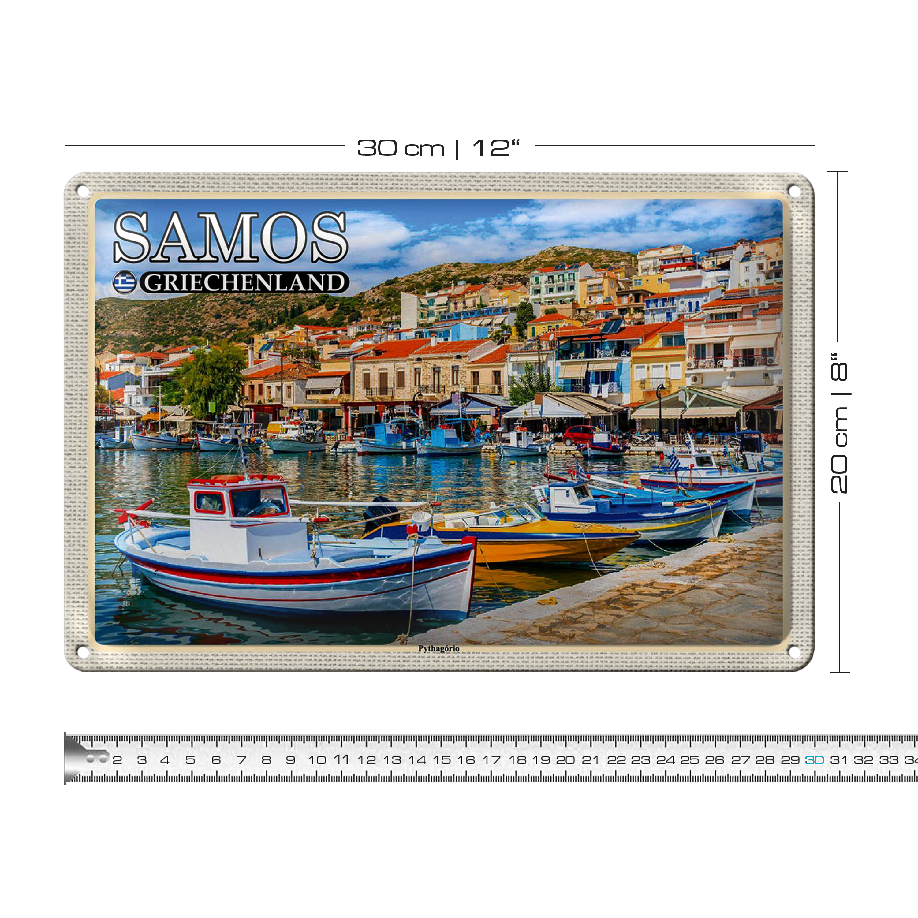 Blechschild Reise 30x20cm Samos Griechenland Pythagório Kleinstadt