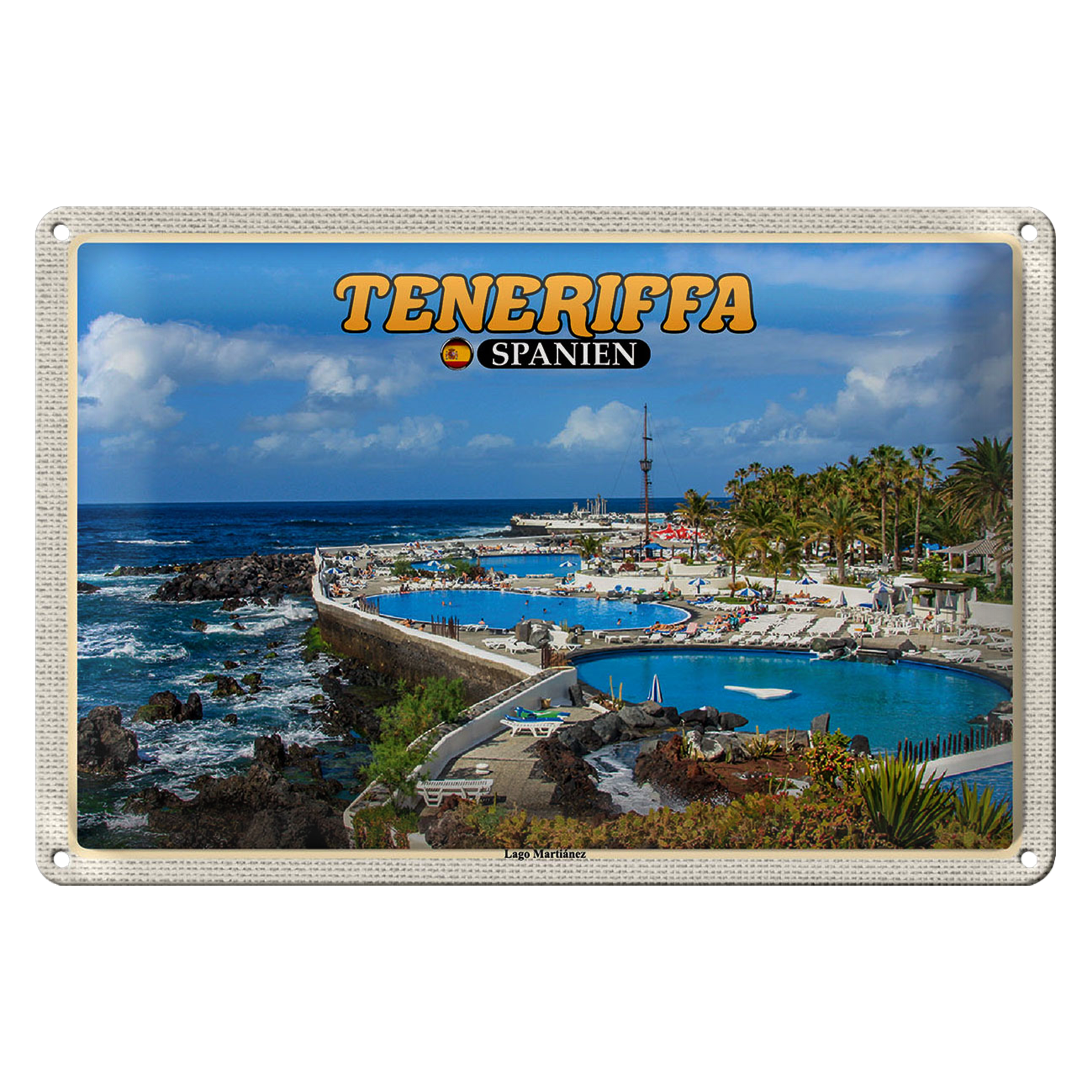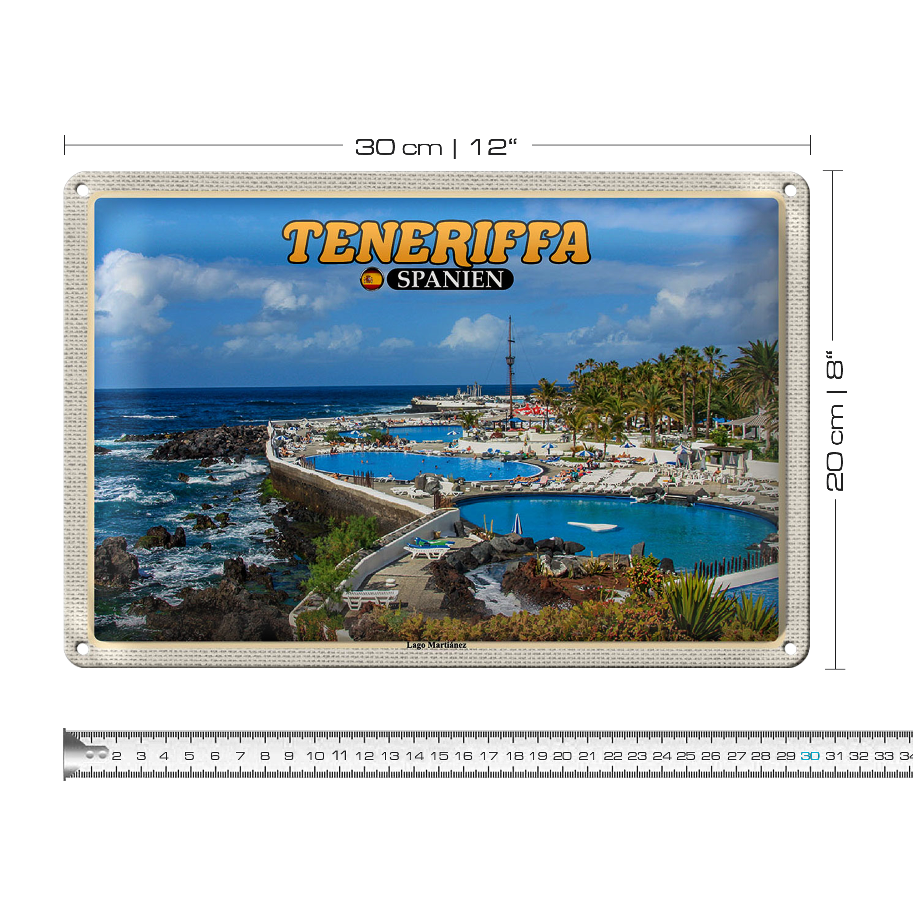 Blechschild Reise 30x20cm Teneriffa Spanien Lago Martiánez Freibad