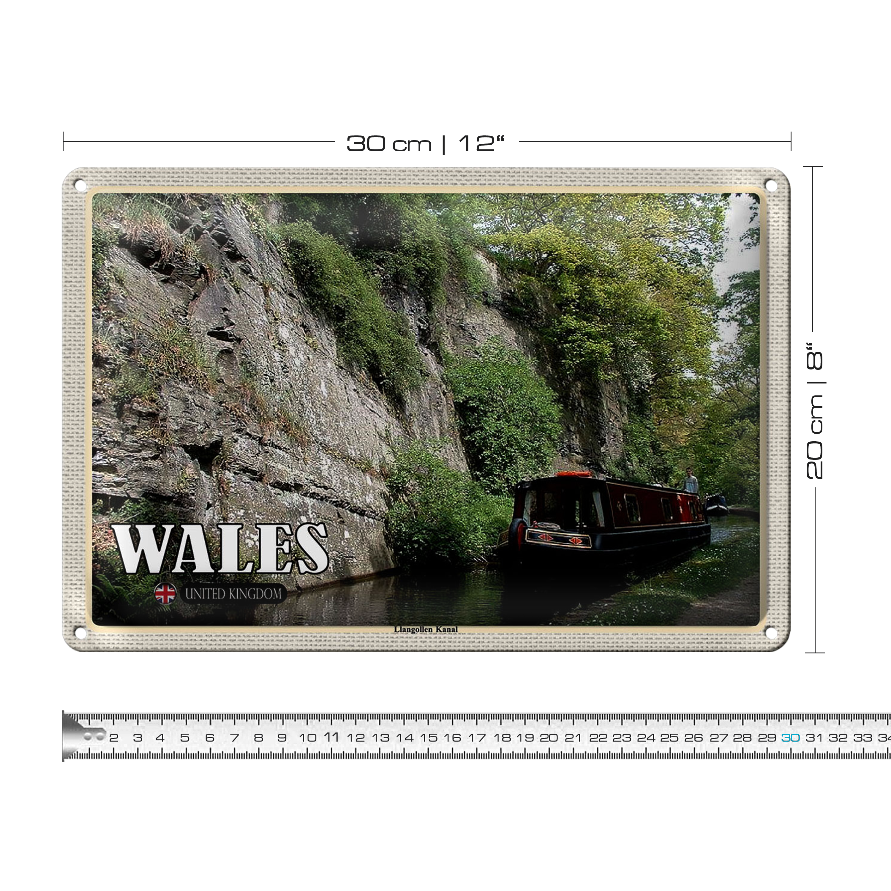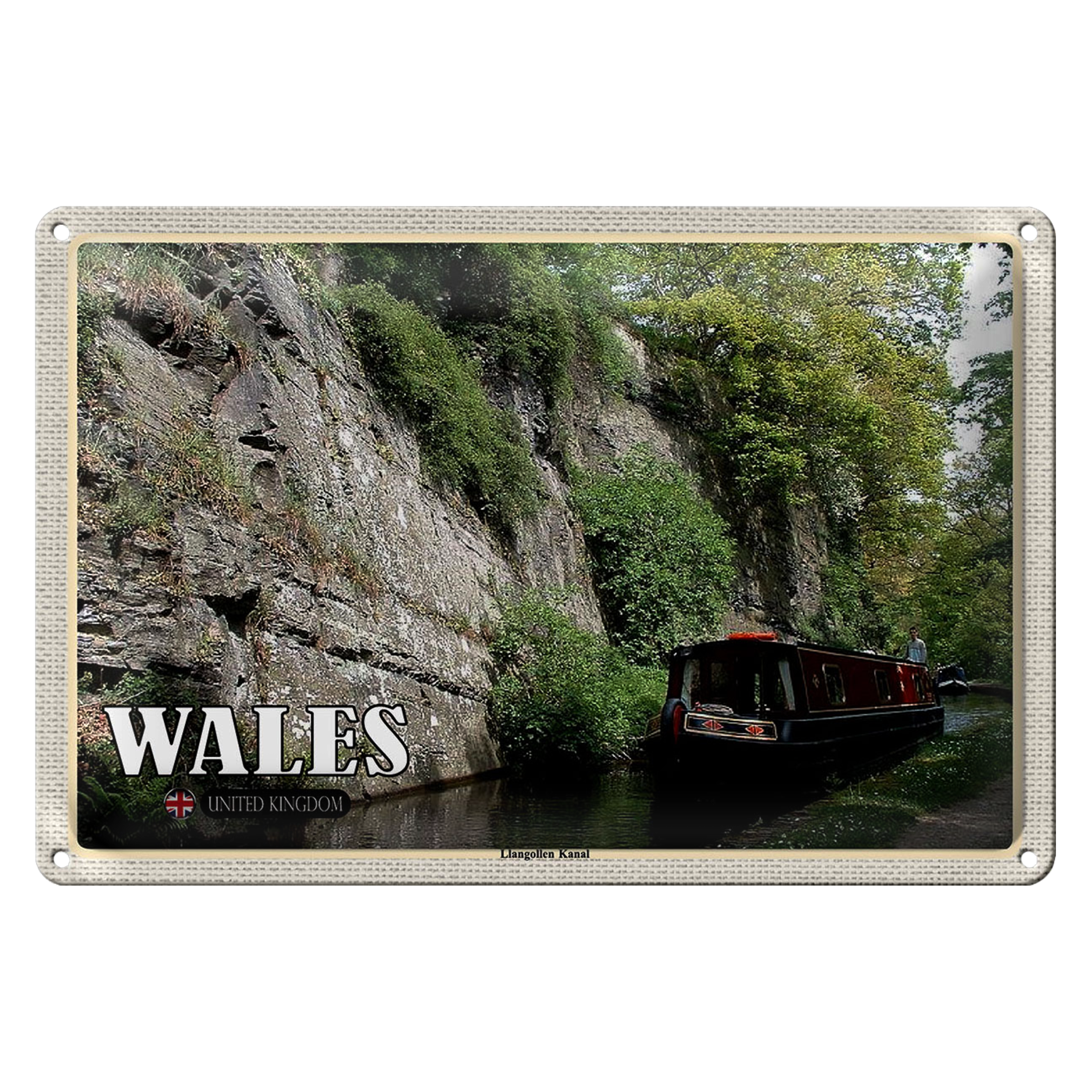 Blechschild Reise 30x20cm Wales United Kingdom Llangollen Kanal
