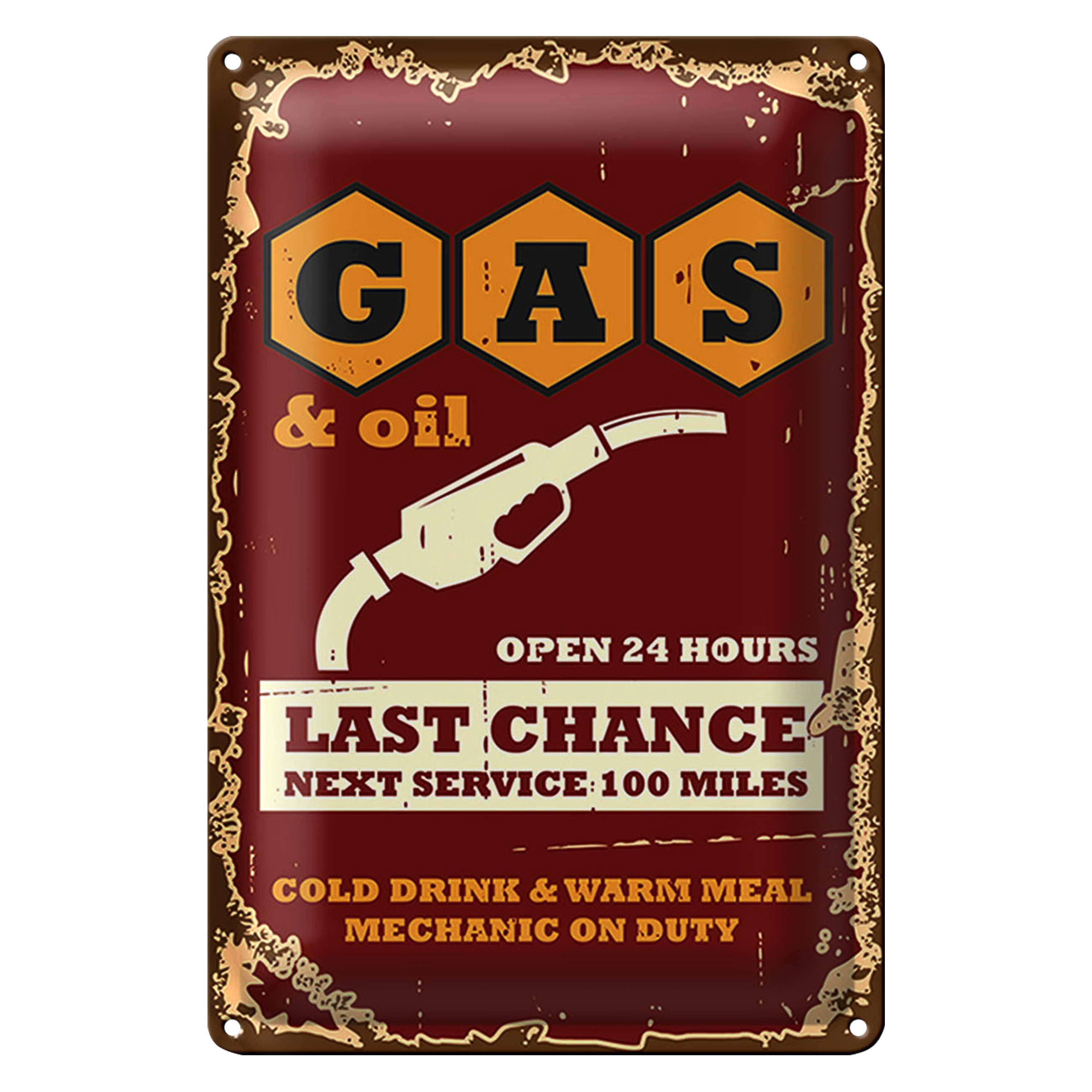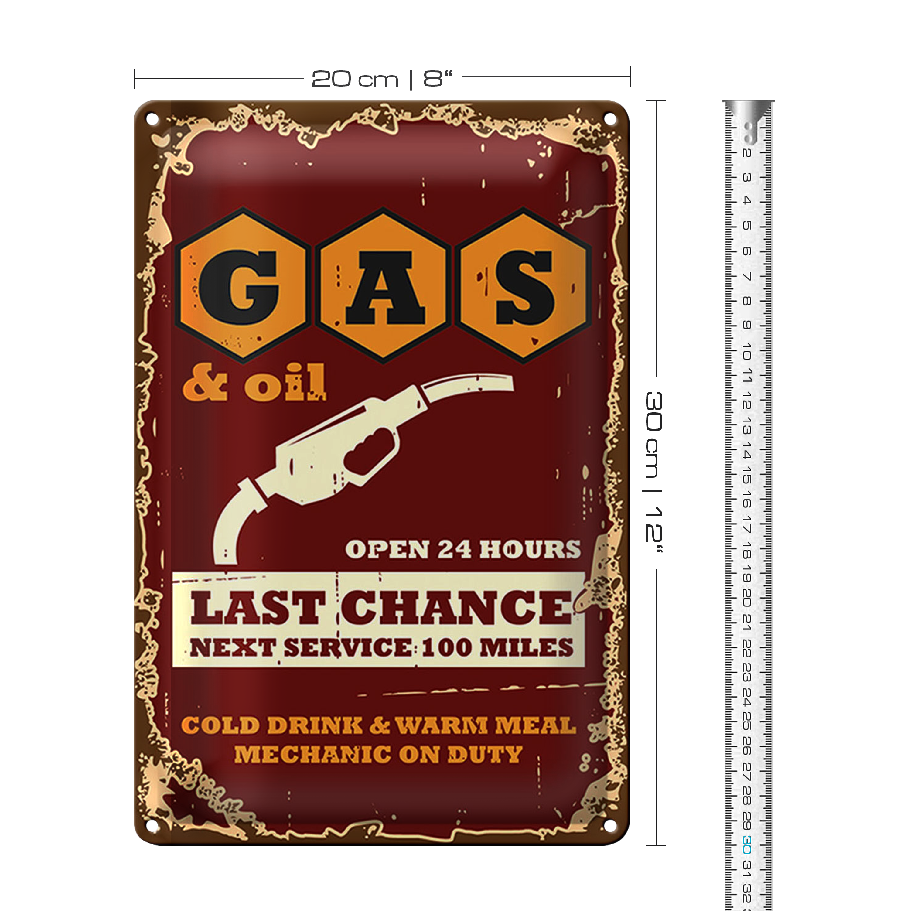 Blechschild Retro 20x30cm Gas and Oil Last chance