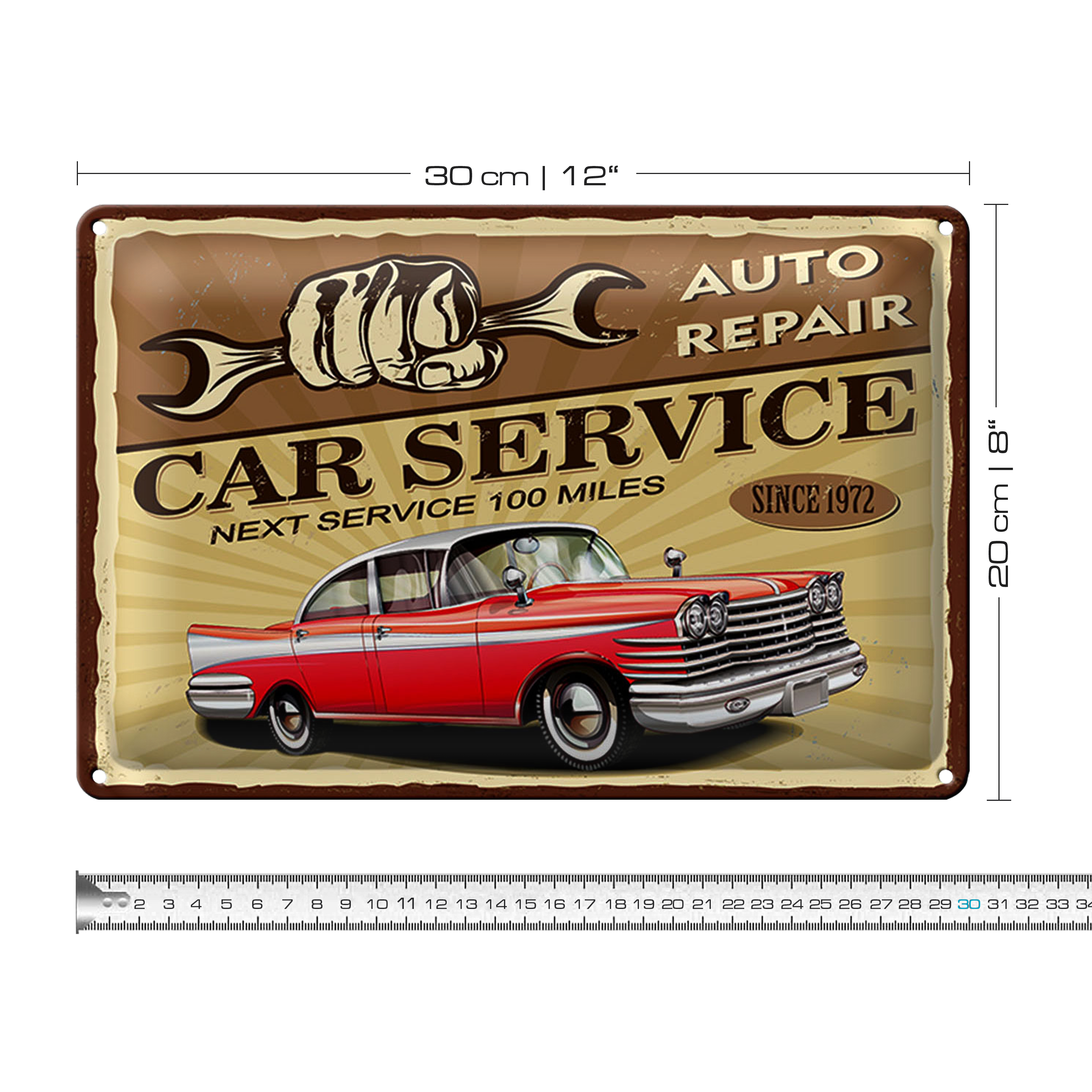 Blechschild Retro 30x20cm Car Service Auto repair 1972