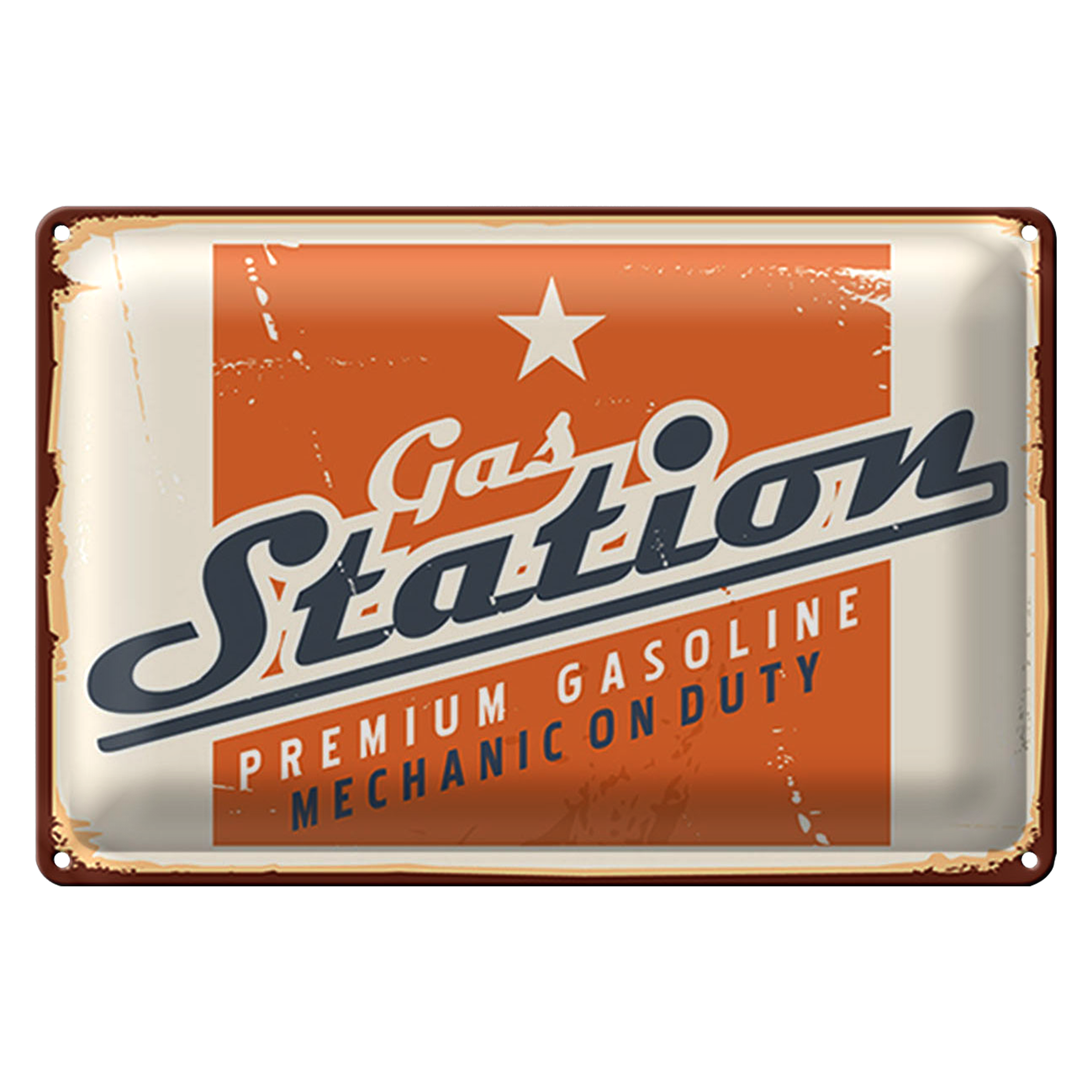 Blechschild Retro 30x20cm Gas Station Premum Tankstelle