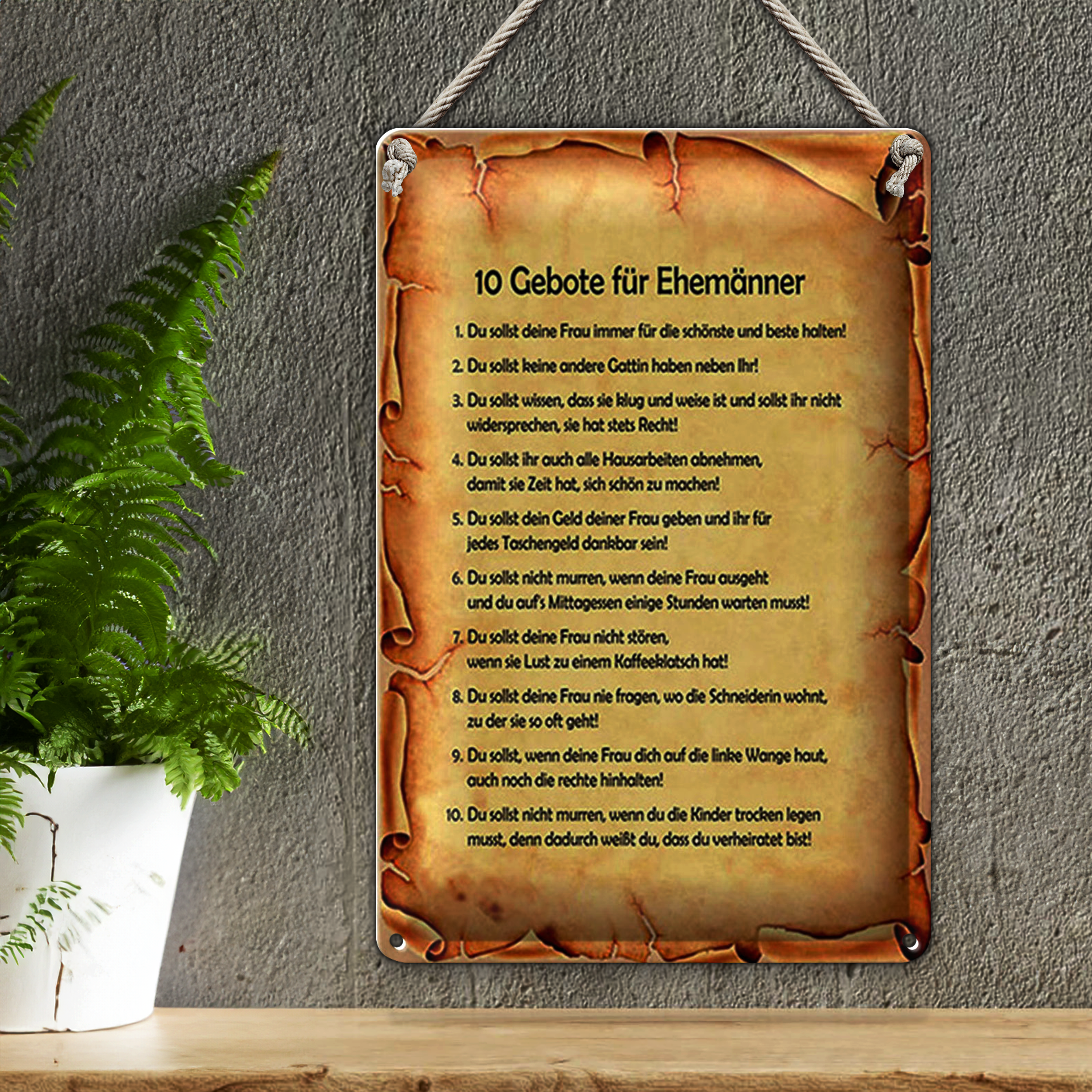 Blechschild Spruch 20x30cm 10 Gebote für Ehemänner
