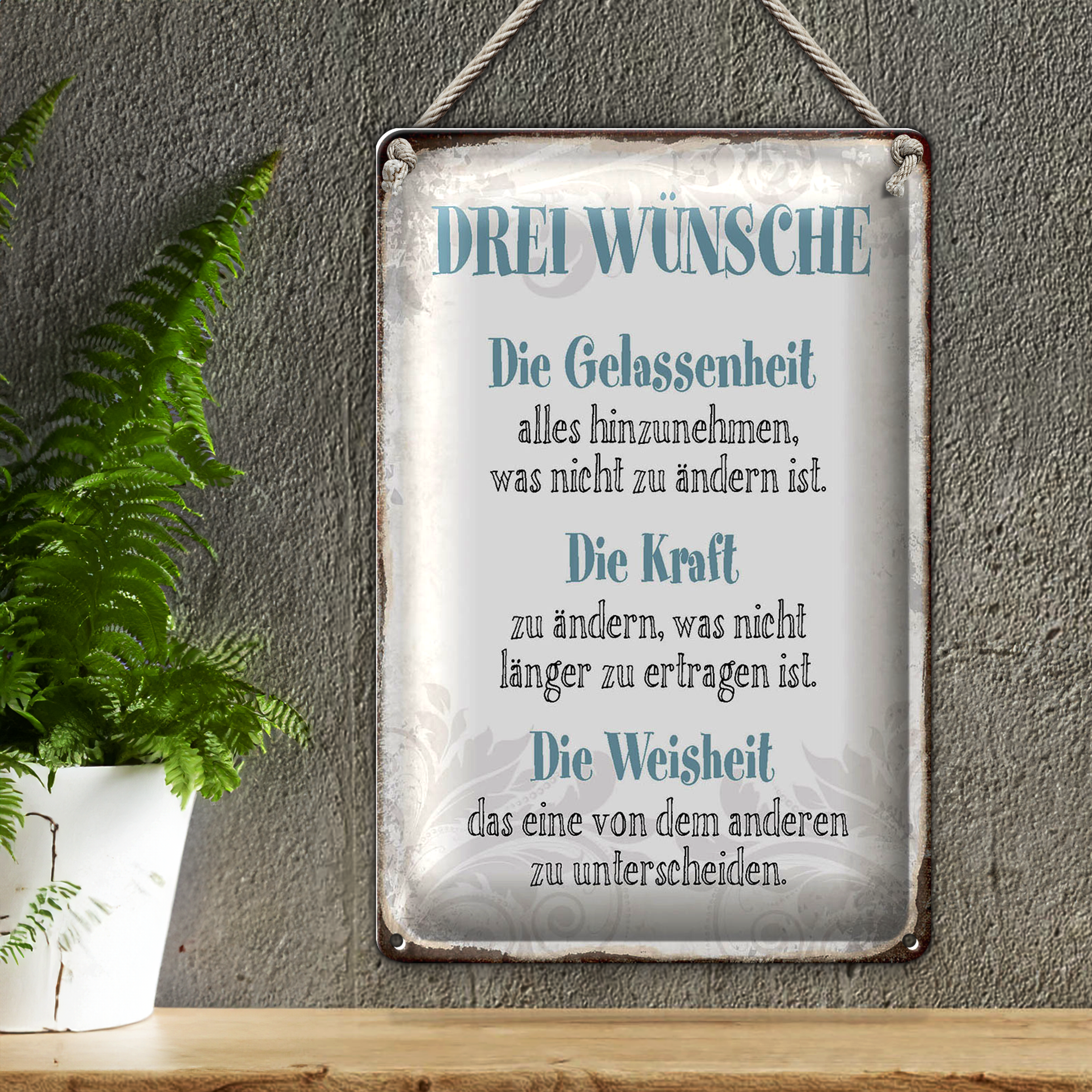 Blechschild Spruch 20x30cm 3 Wünsche Gelassenheit Kraft