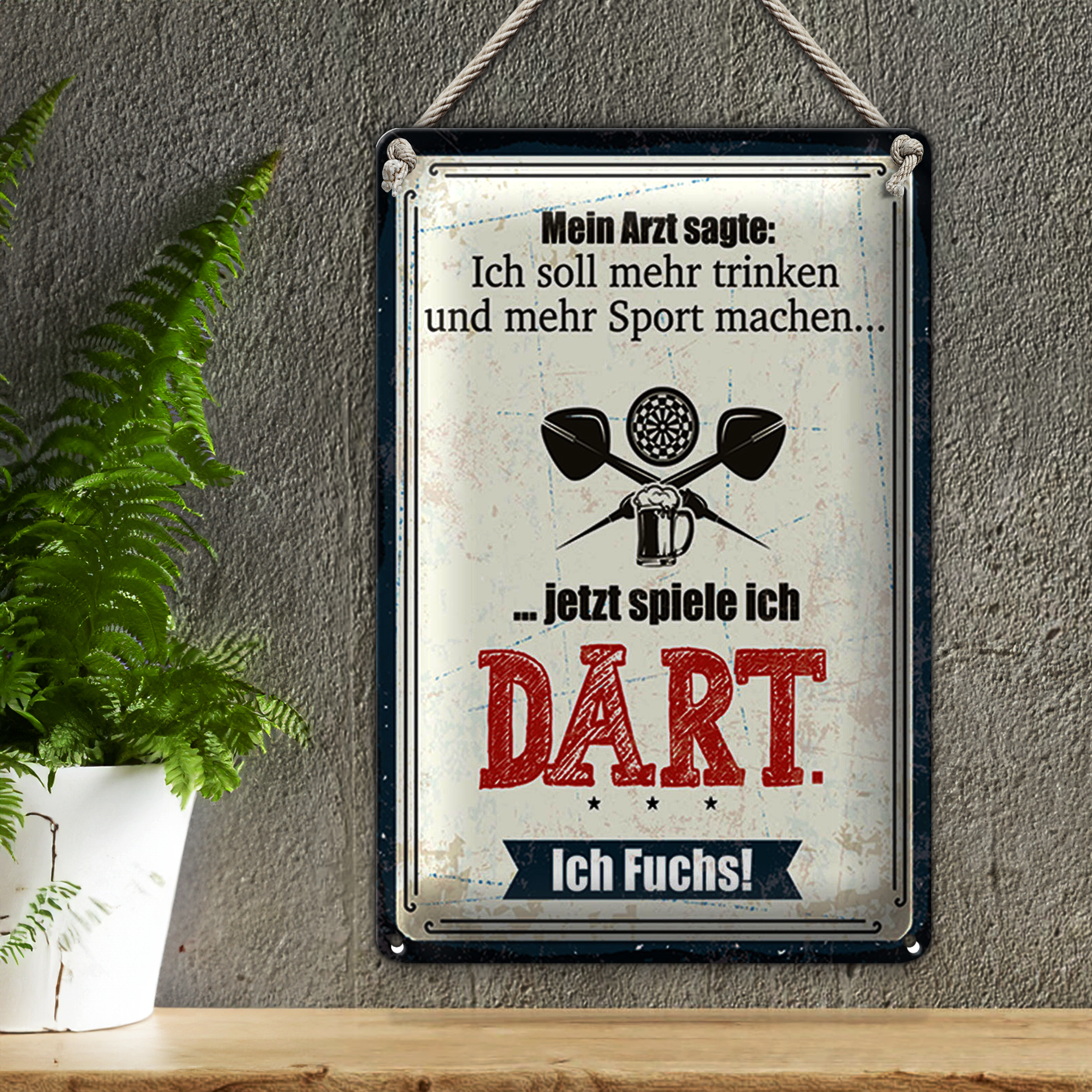 Blechschild Spruch 20x30cm Arzt sagt mehr trinken und Sport jetzt spiel ich Dart