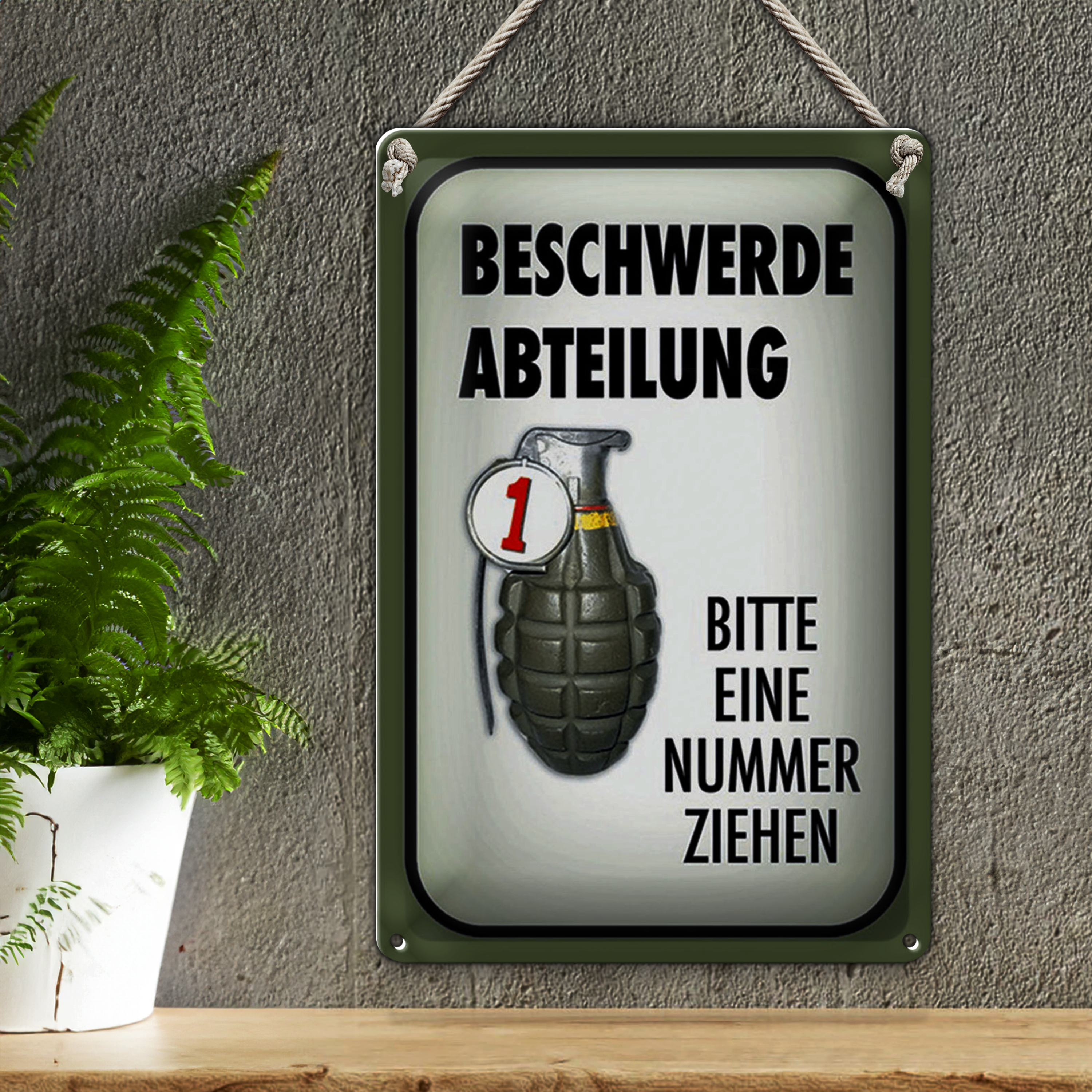 Blechschild Spruch 20x30cm Beschwerde Abteilung bitte Nr.