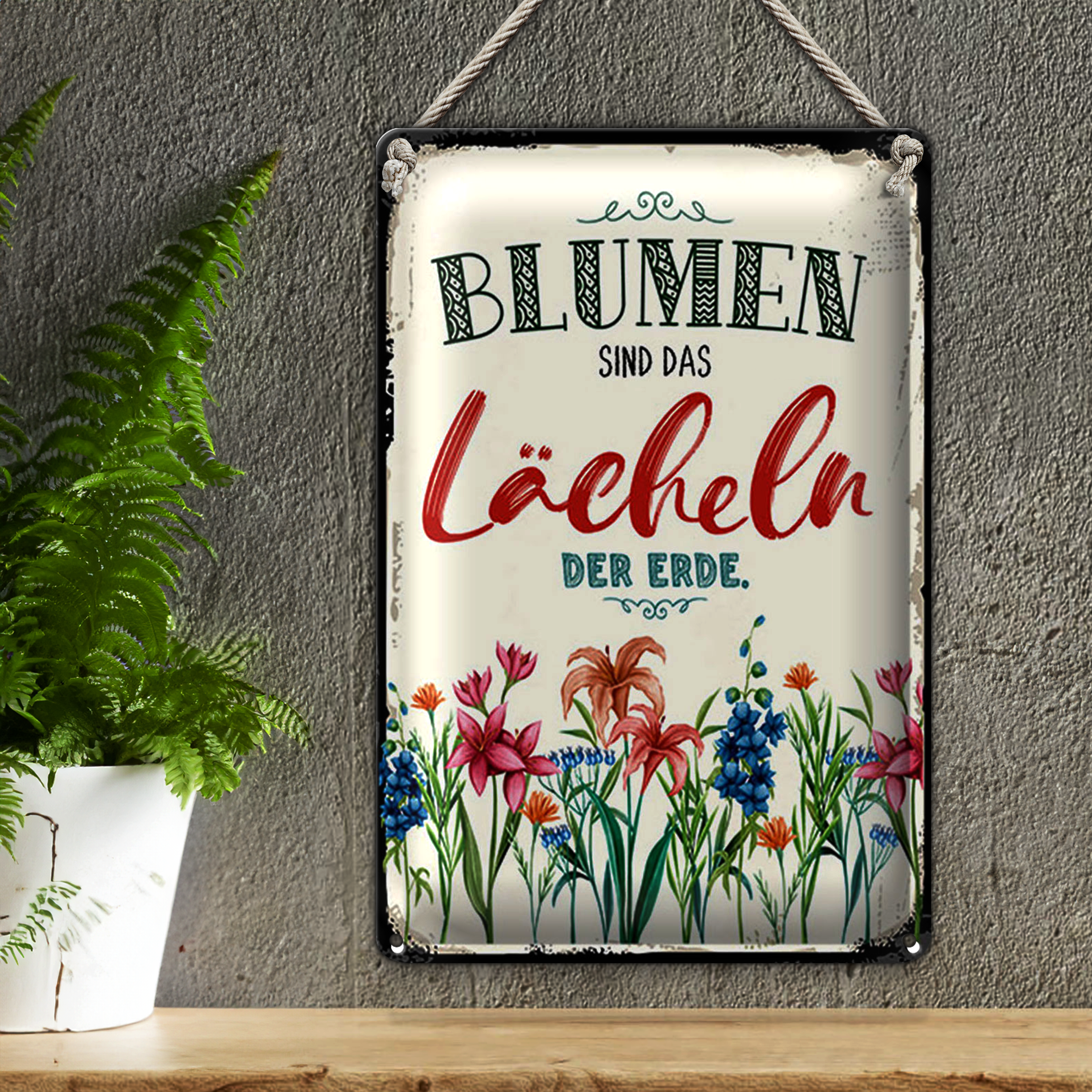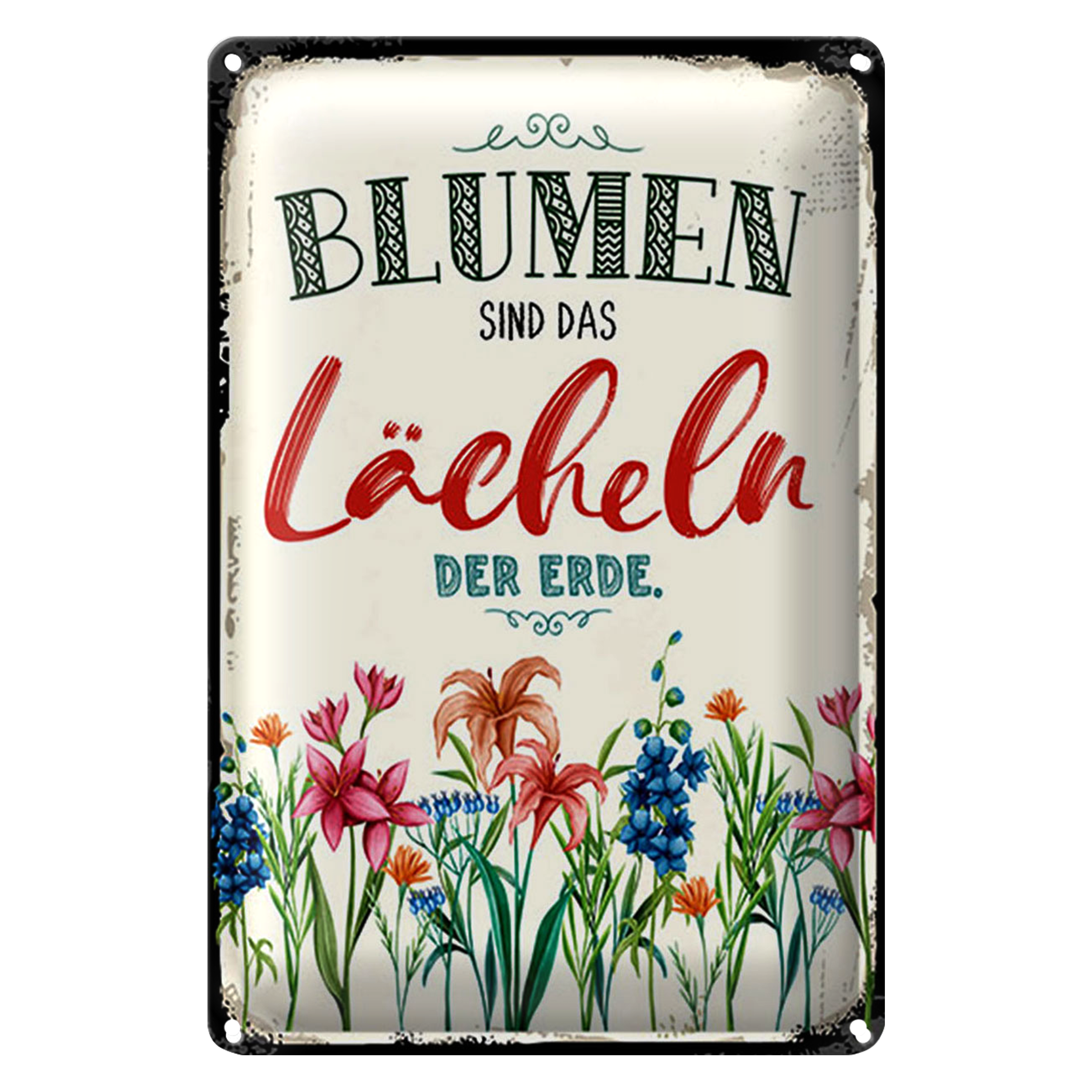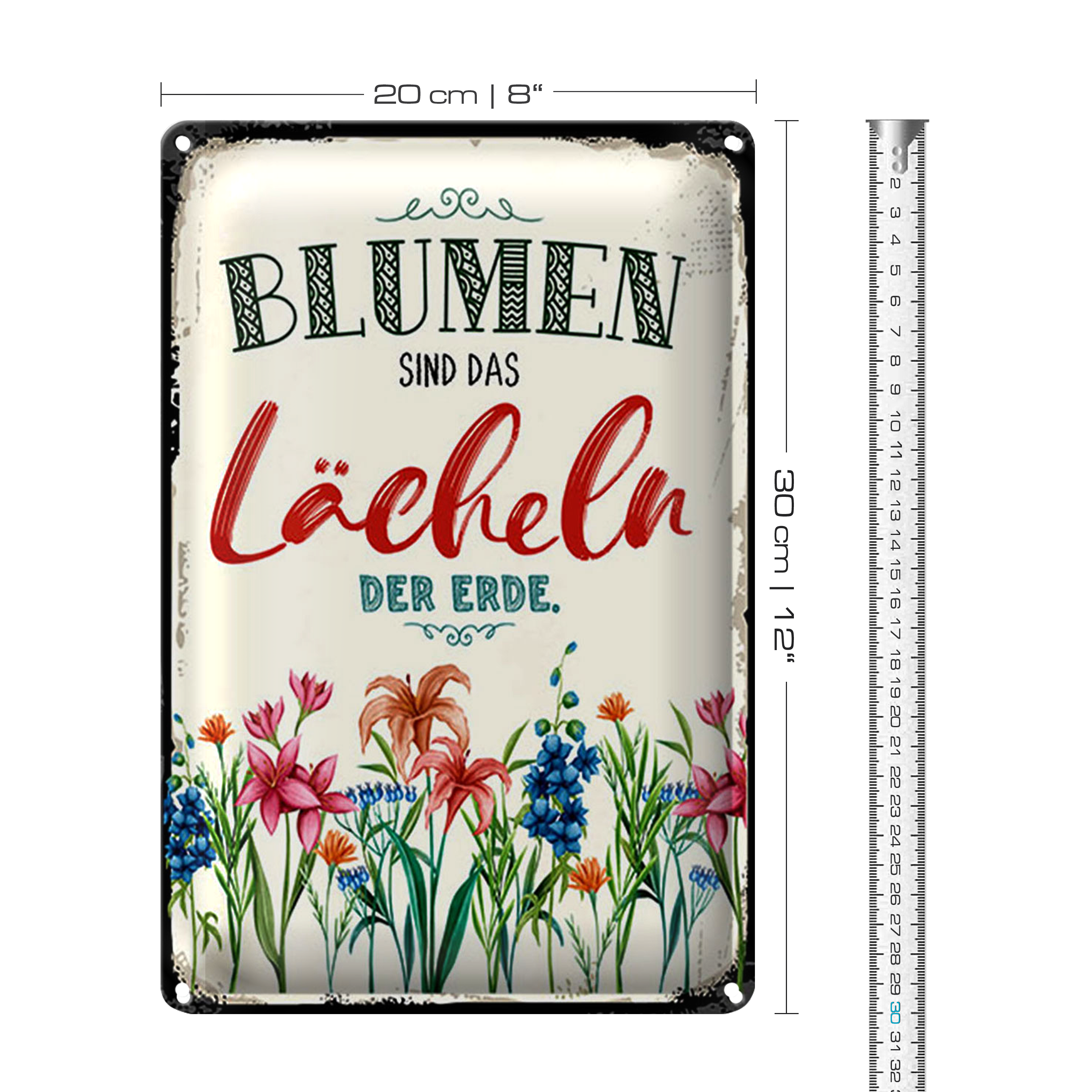 Blechschild Spruch 20x30cm Blumen sind das Lächeln der Erde