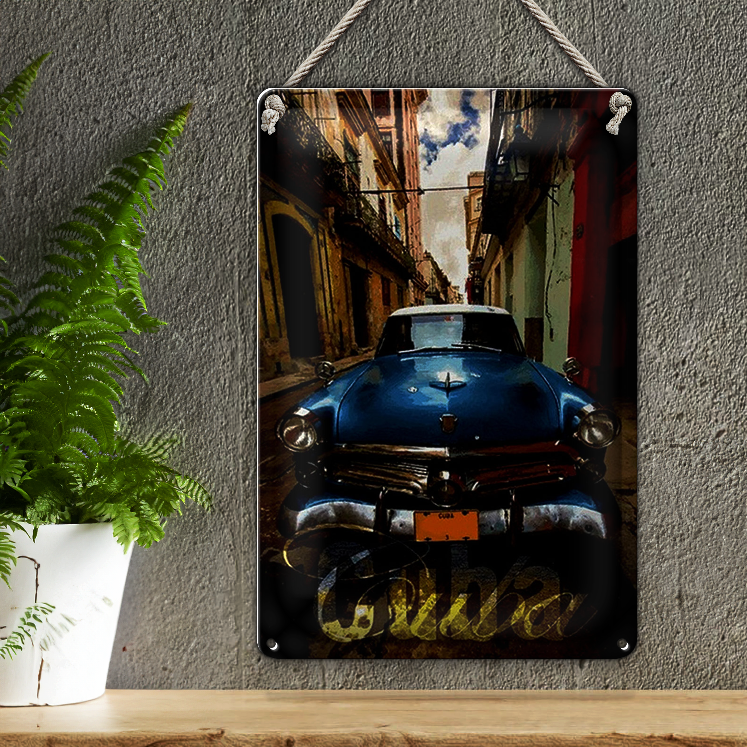 Blechschild Spruch 20x30cm Cuba Oldtimer Auto blau