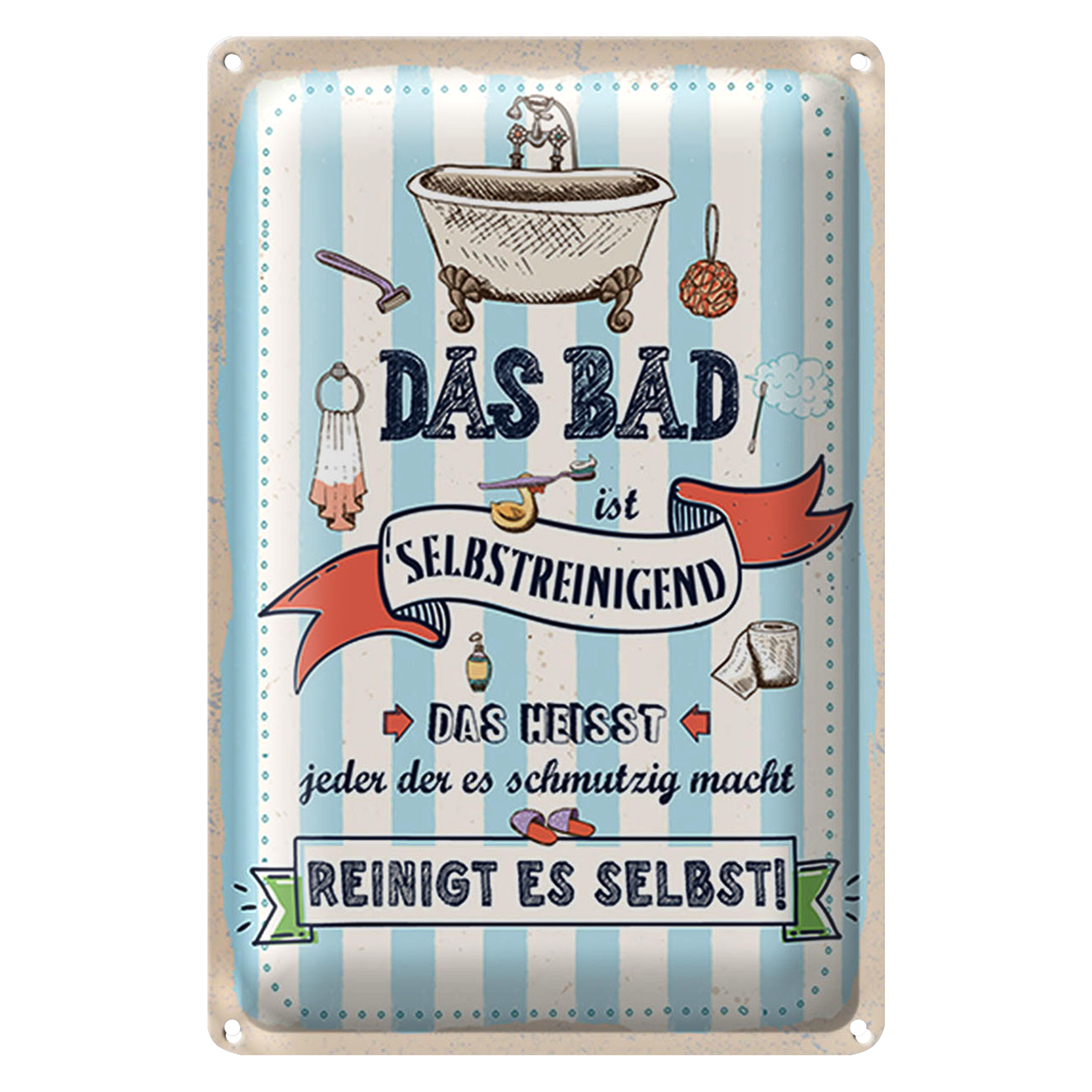 Blechschild Spruch 20x30cm Das Bad ist selbstreinigend Reinigt es selbst