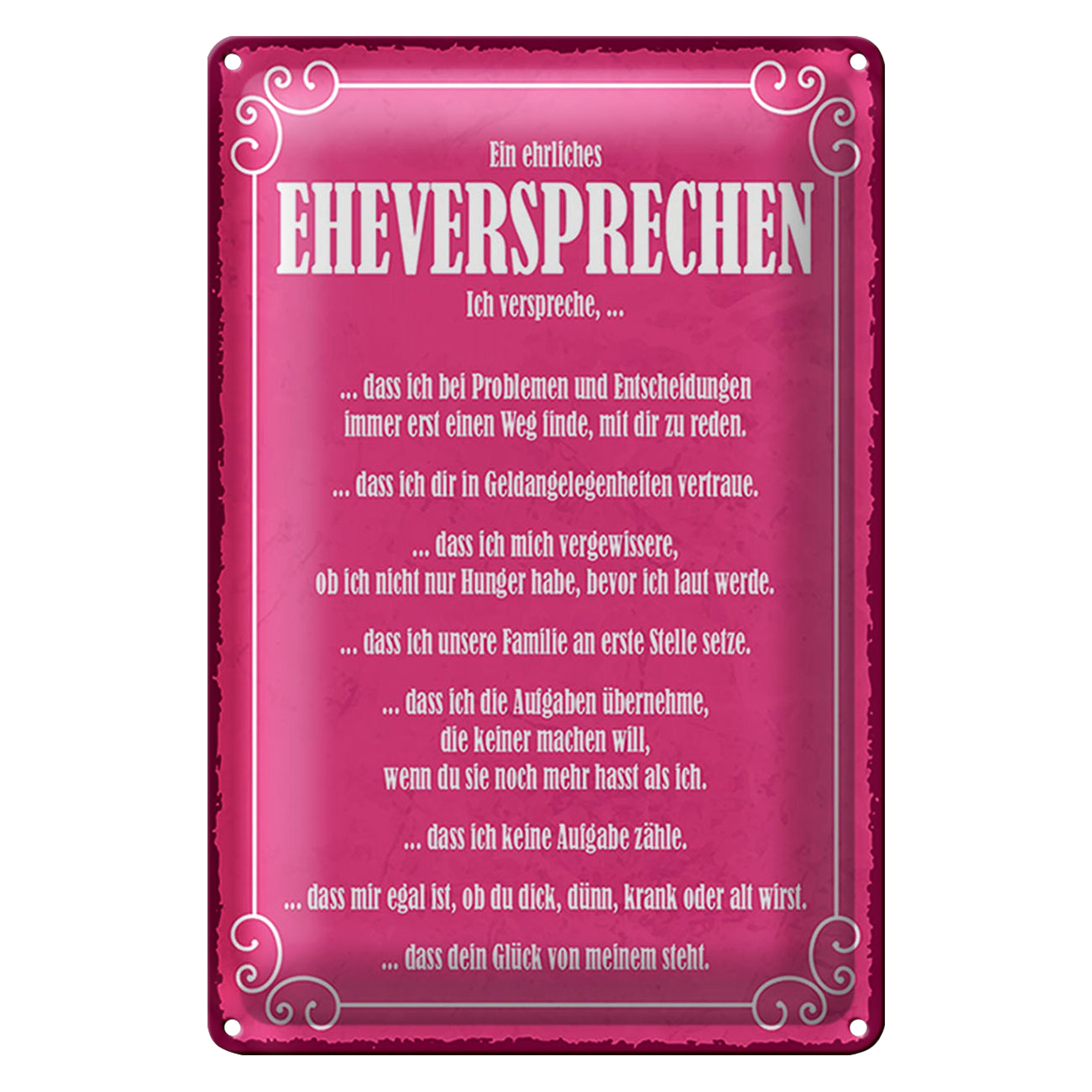 Blechschild Spruch 20x30cm ein ehrliches Eheversprechen rosa Schild