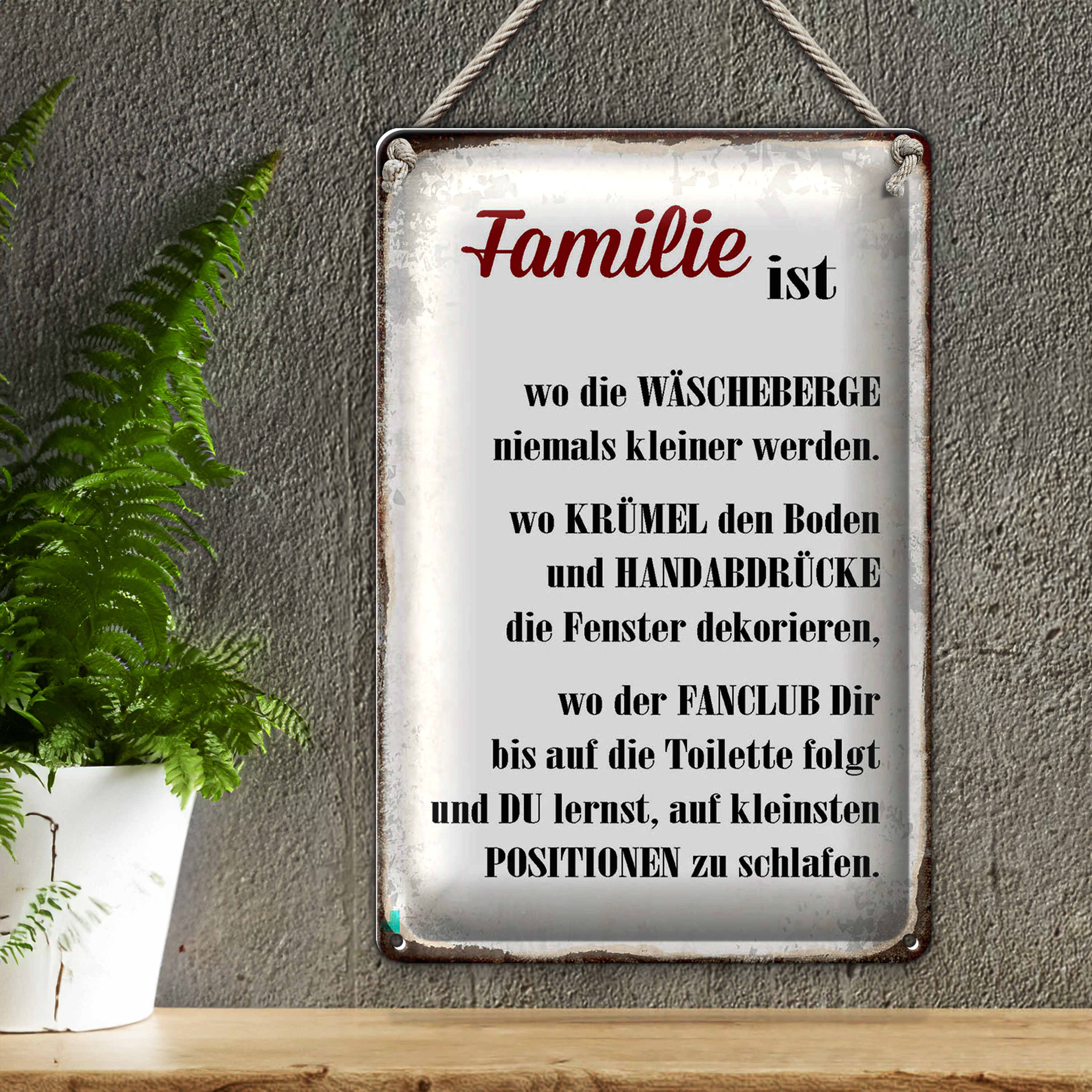 Blechschild Spruch 20x30cm Familie ist wo die Wäscheberge