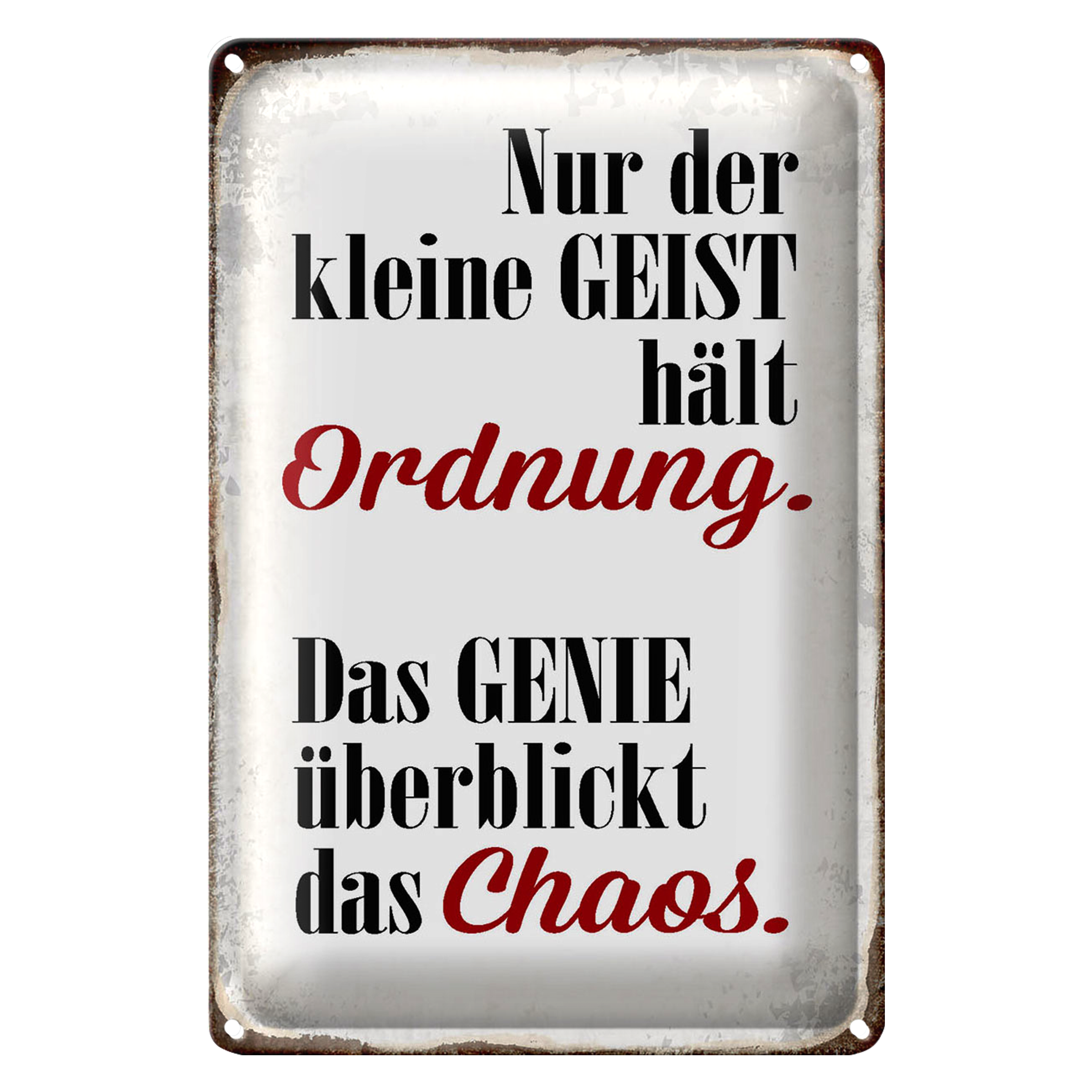 Blechschild Spruch 20x30cm Geist hält Ordnung Genie Chaos