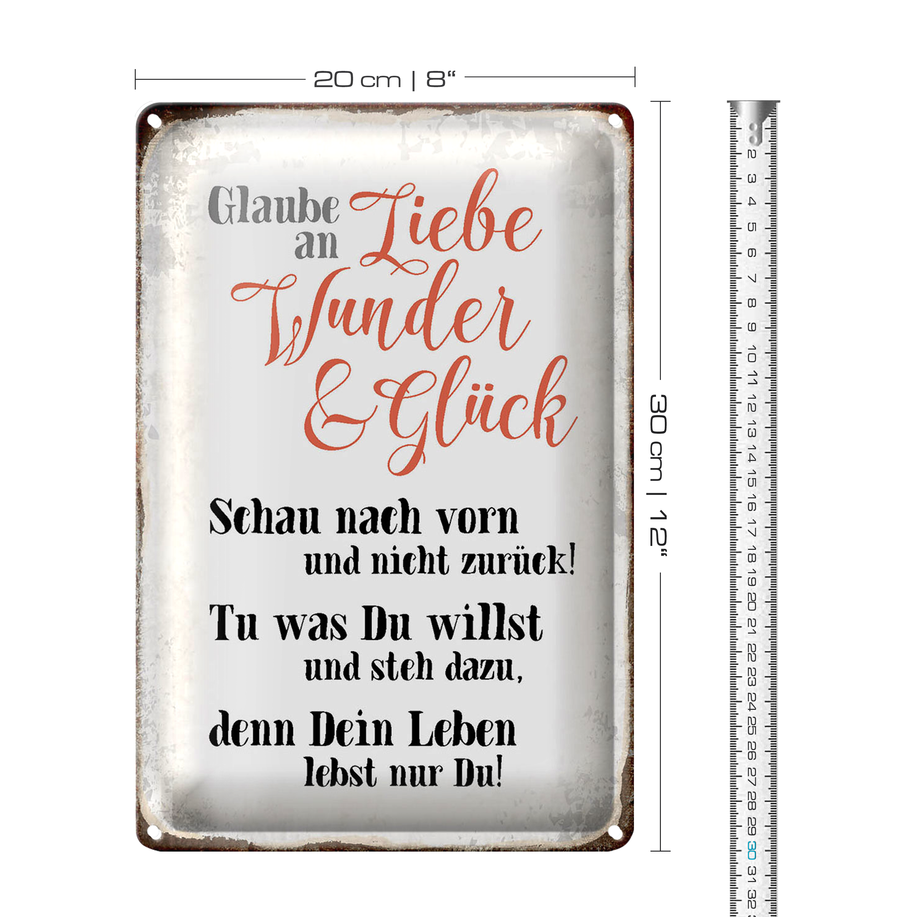 Blechschild Spruch 20x30cm glaube an Liebe Wunder Glück