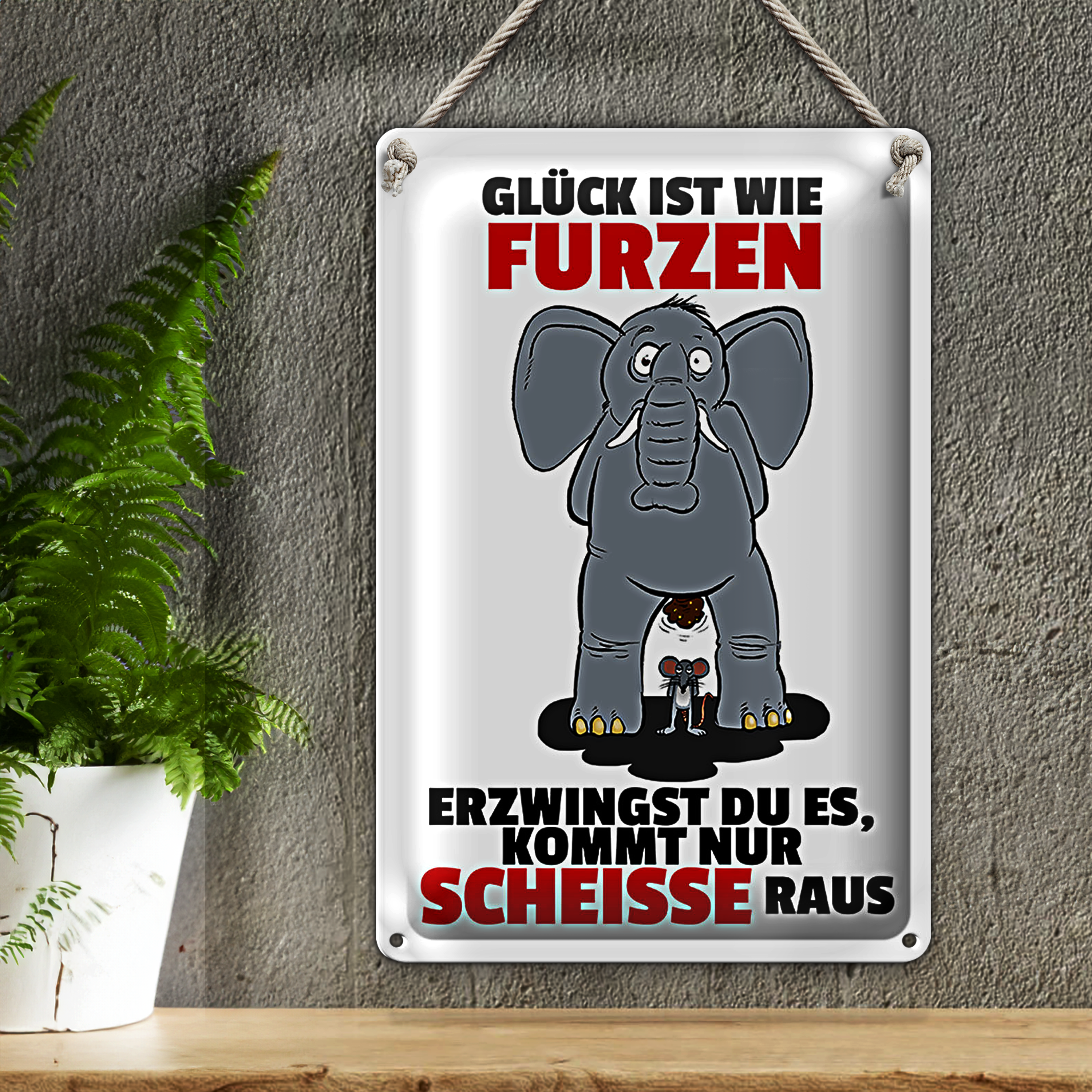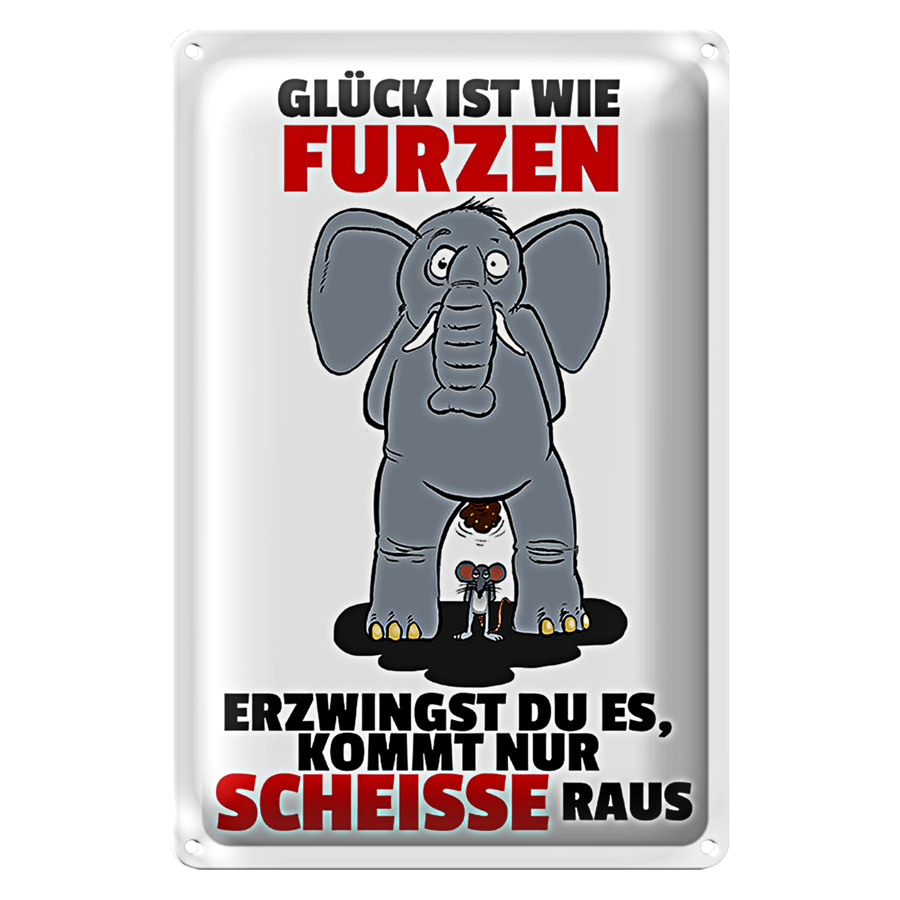 Blechschild Spruch 20x30cm Glück ist wie furzen Elefant