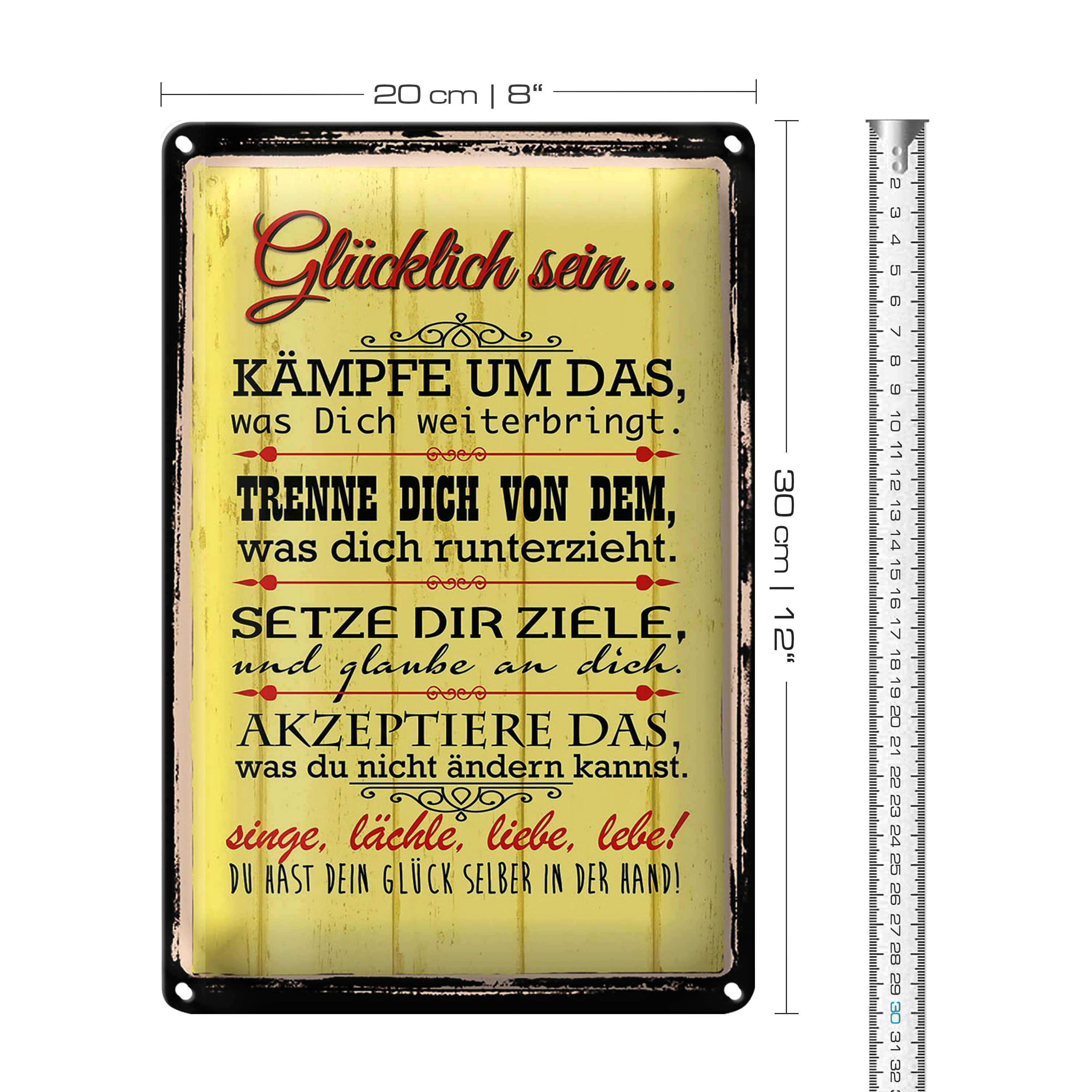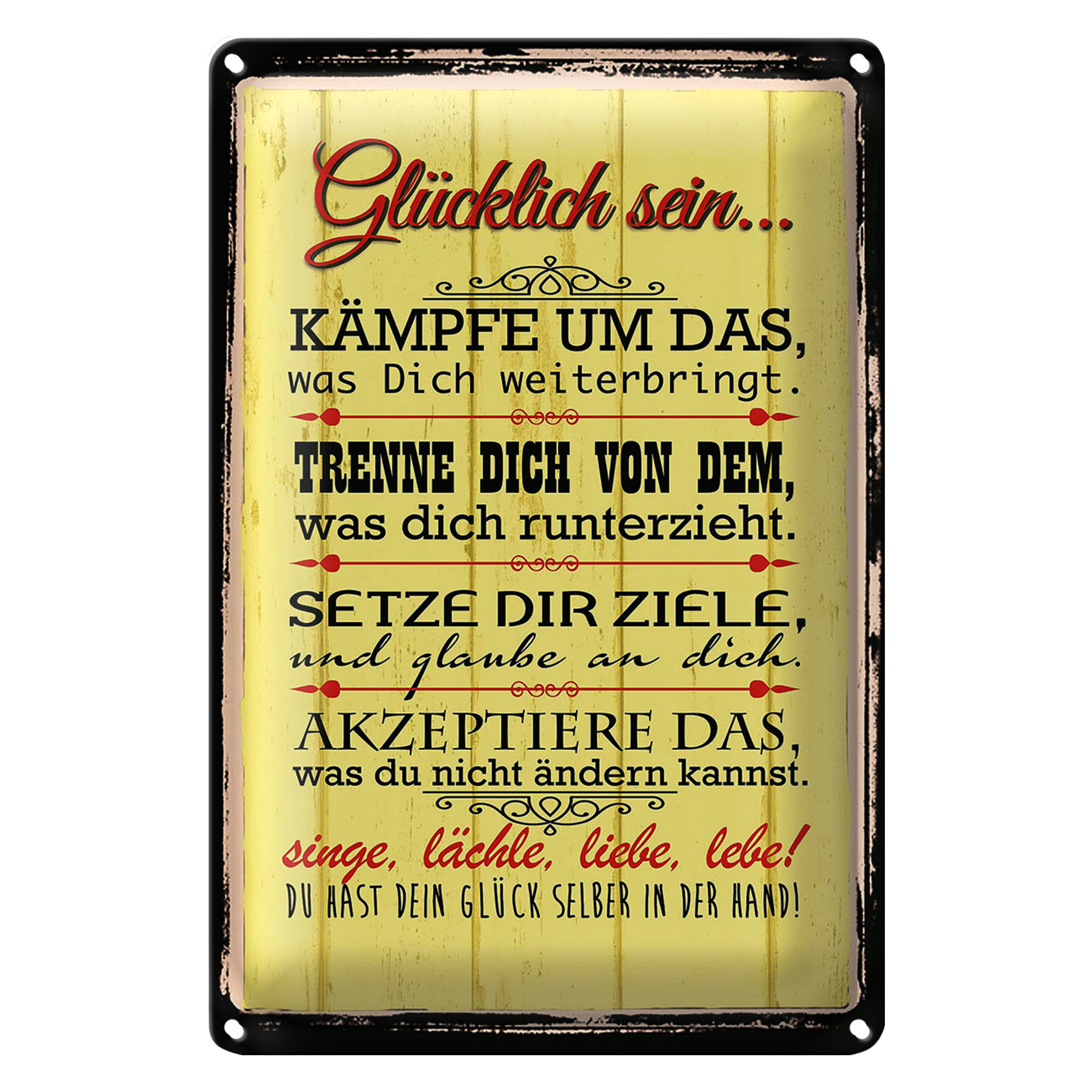 Blechschild Spruch 20x30cm Glücklich singe lächle liebe