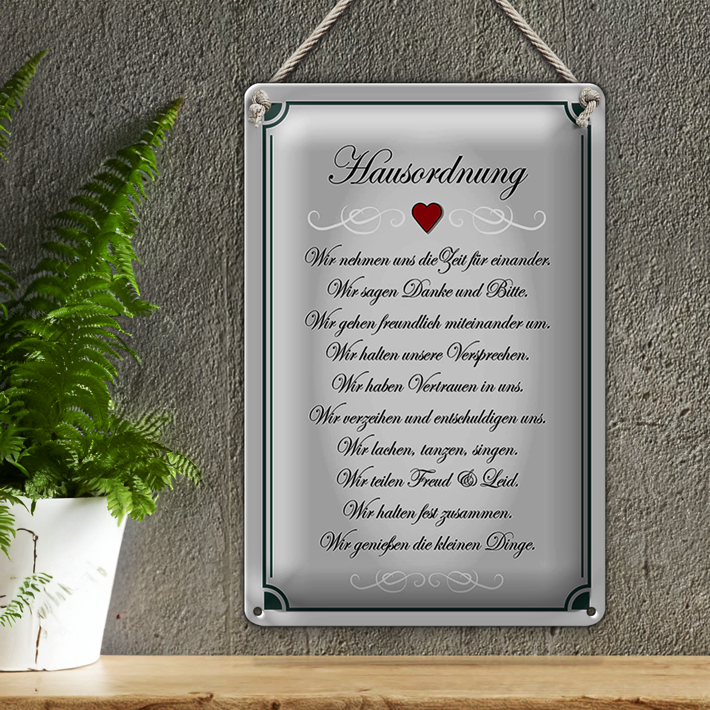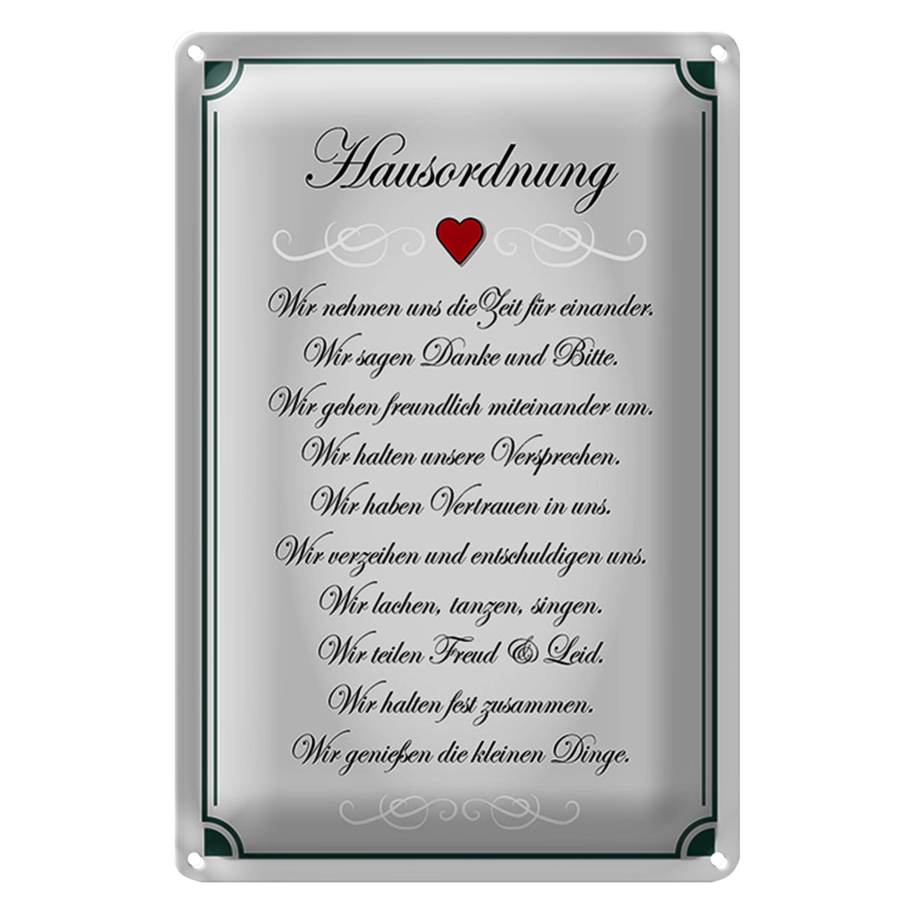 Blechschild Spruch 20x30cm Hausordnung wir Zeit füreinander
