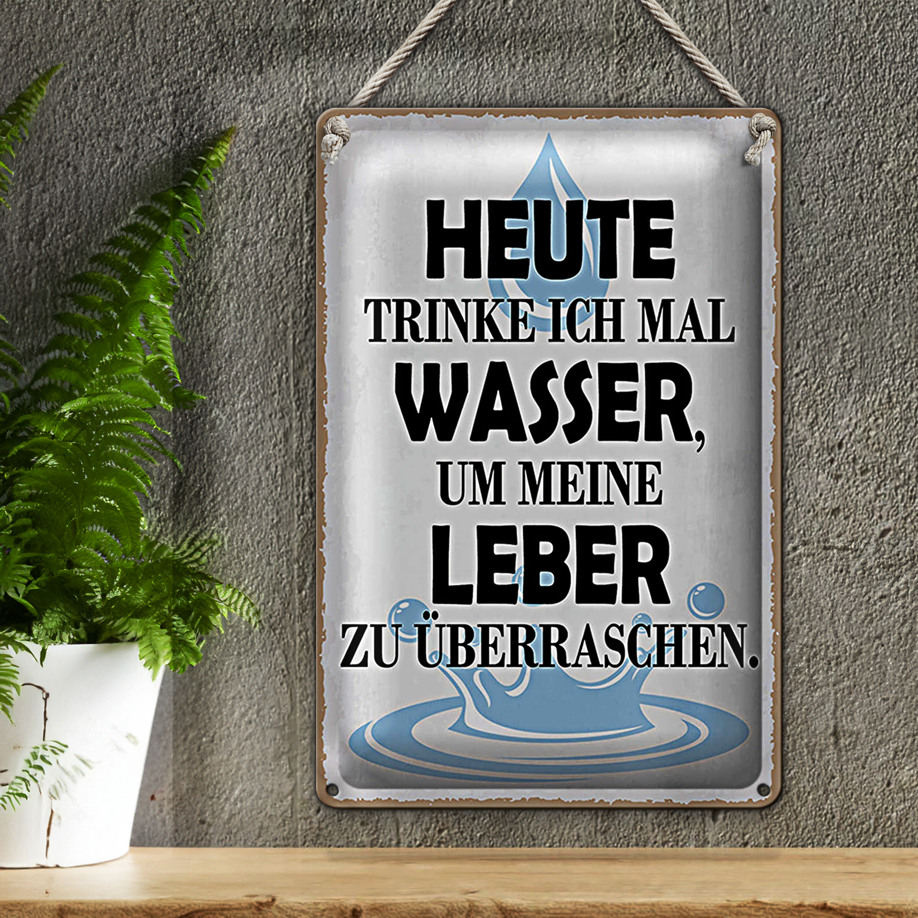 Blechschild Spruch 20x30cm heute trinke ich Wasser Leber
