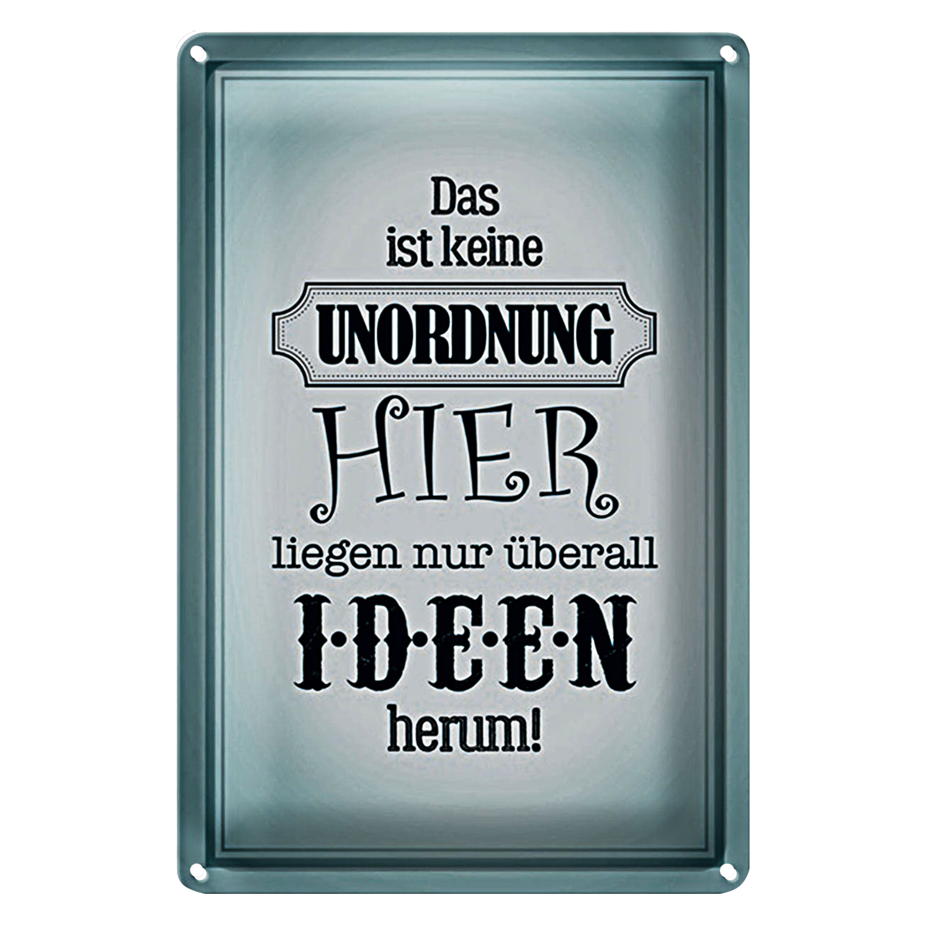 Blechschild Spruch 20x30cm hier keine Unordnung nur Ideen