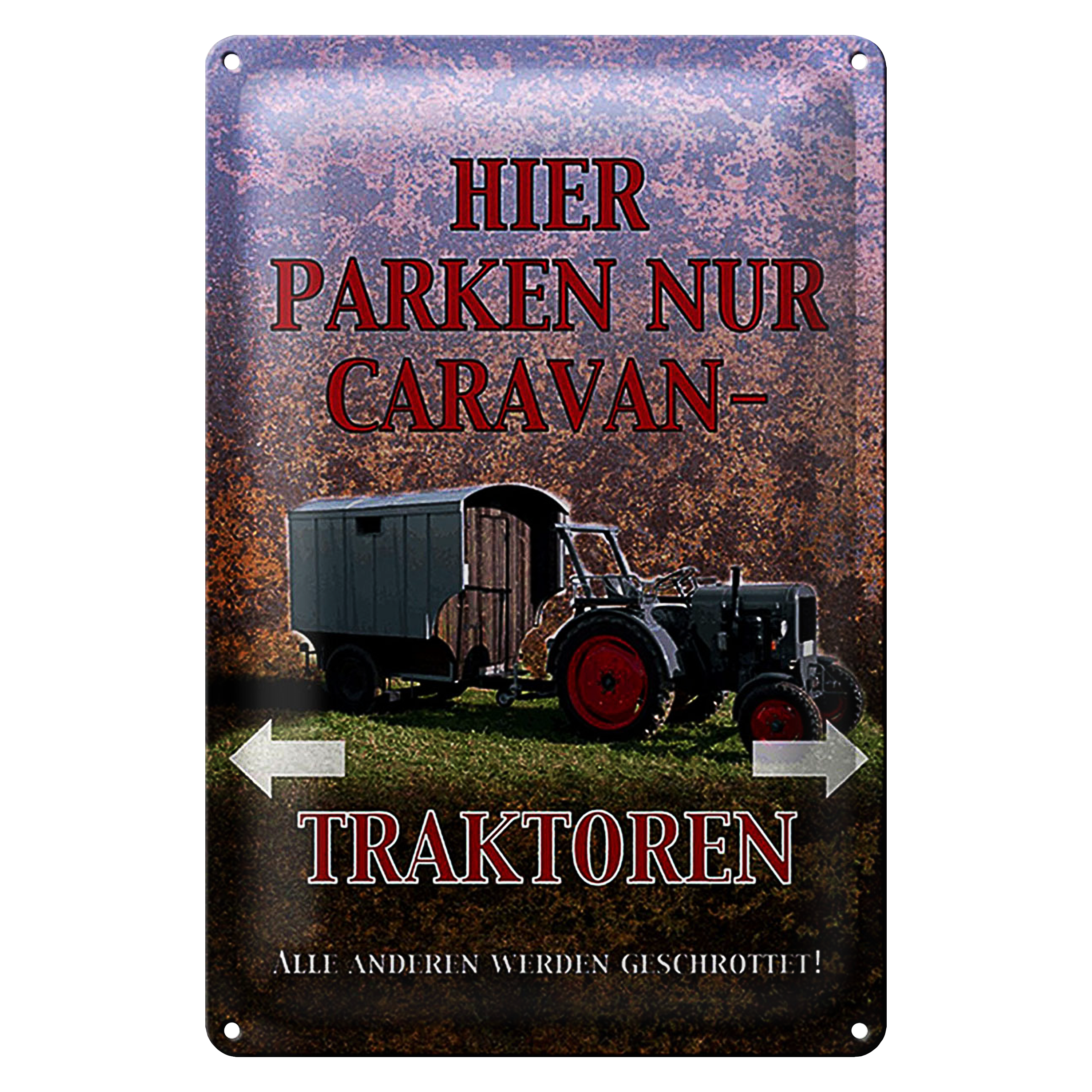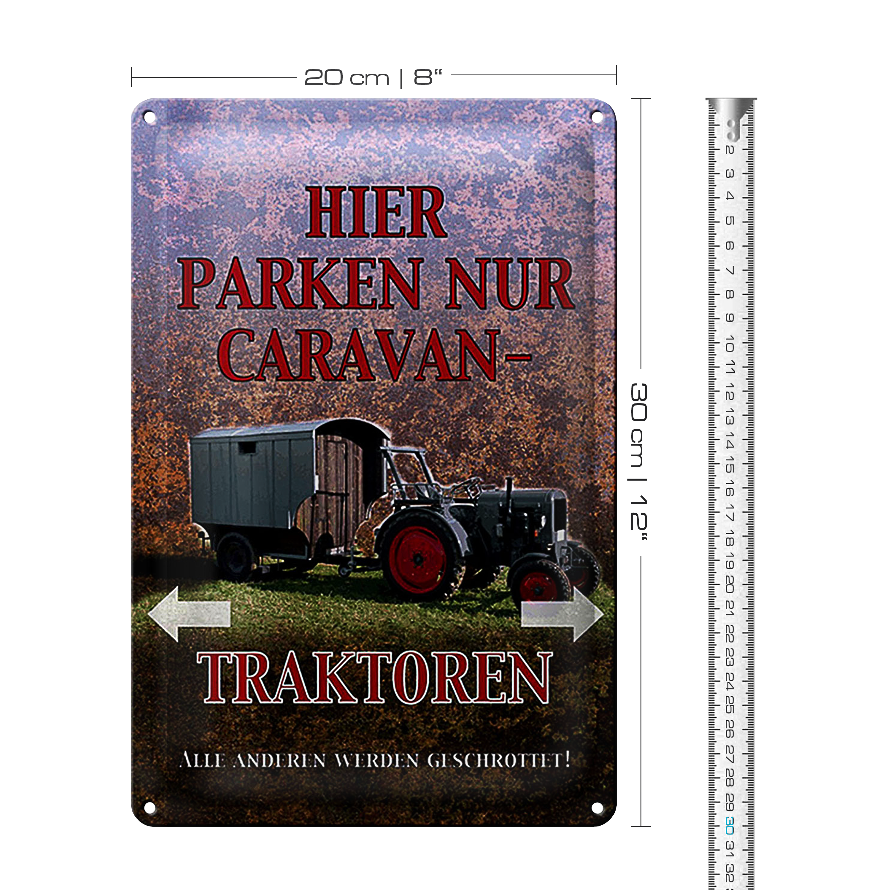 Blechschild Spruch 20x30cm hier parken Caravan-Traktoren