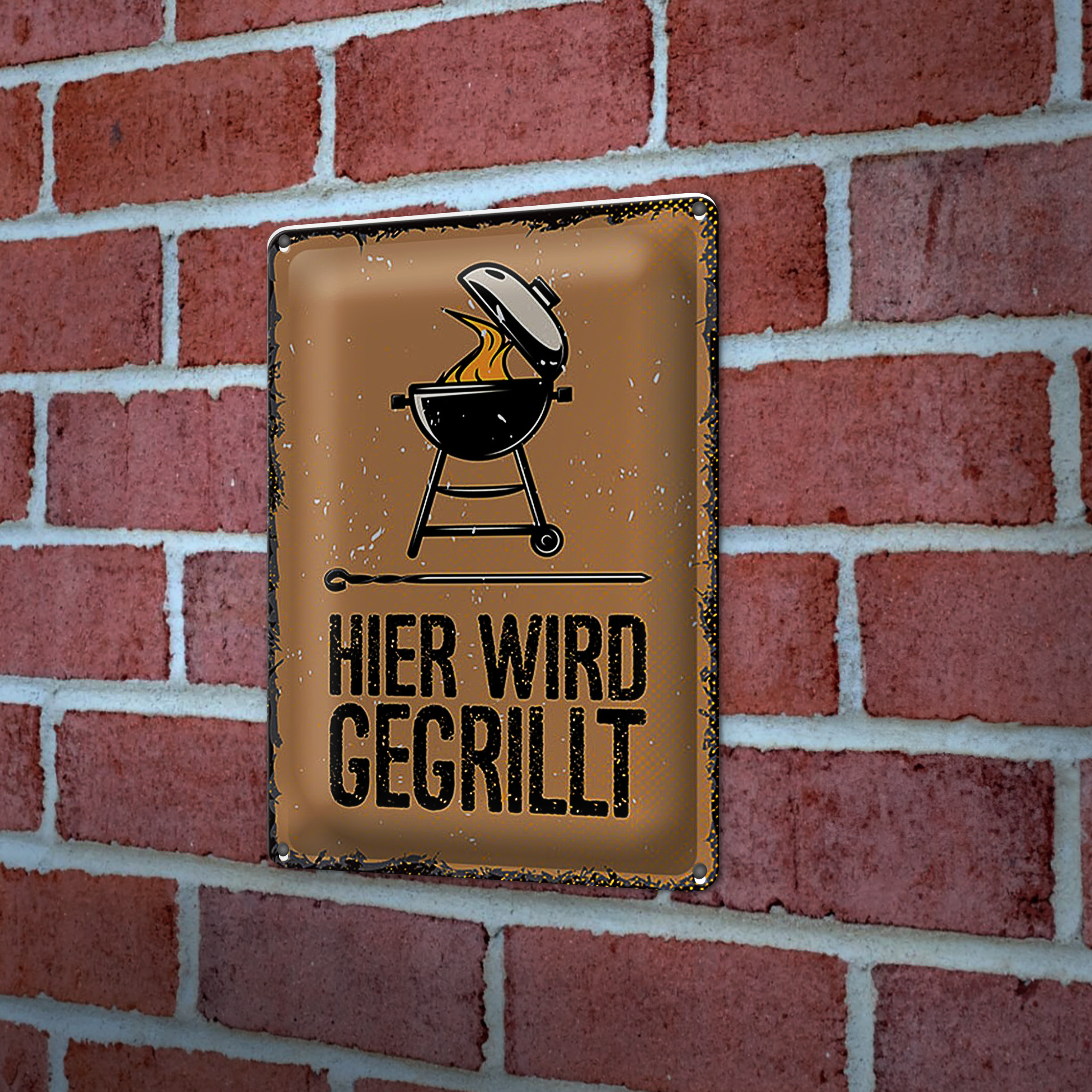 Blechschild Spruch 20x30cm Hier wird gegrillt Kugelgrill