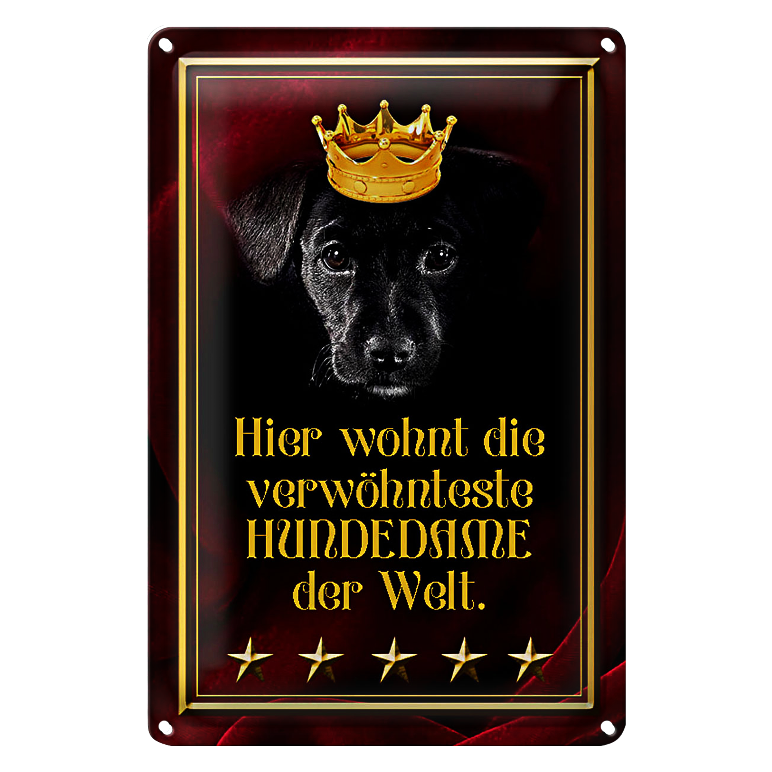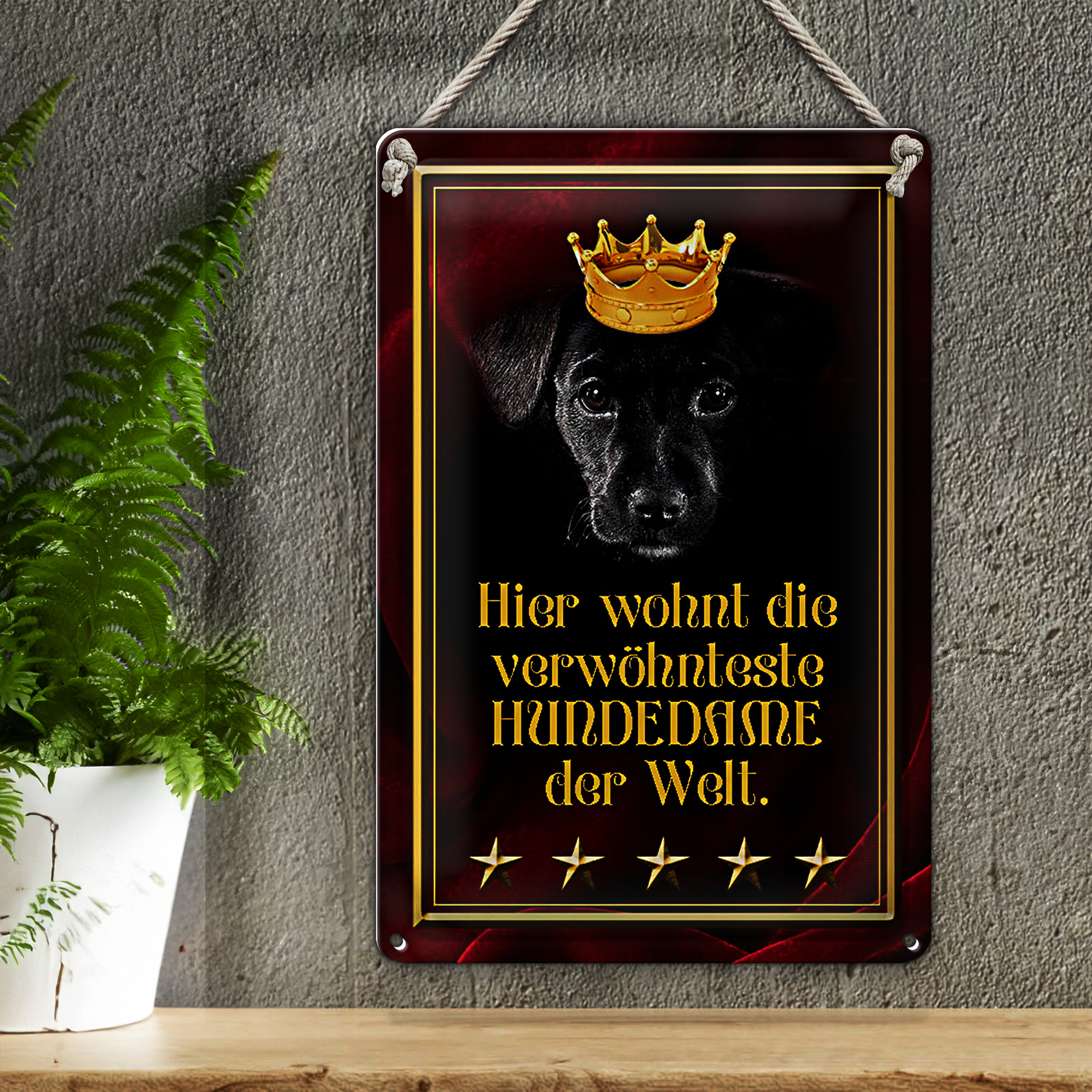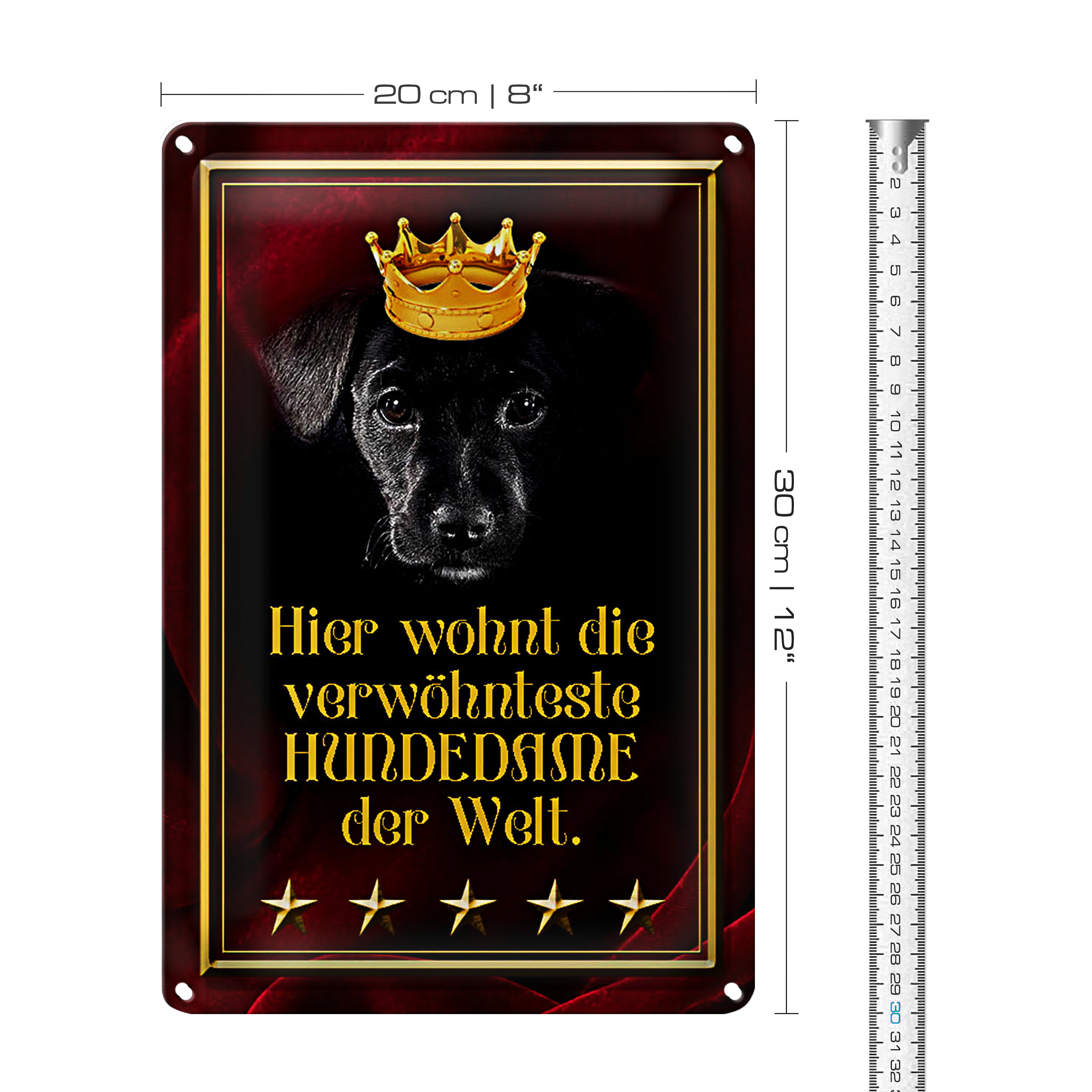 Blechschild Spruch 20x30cm hier wohnt Hundedame der Welt