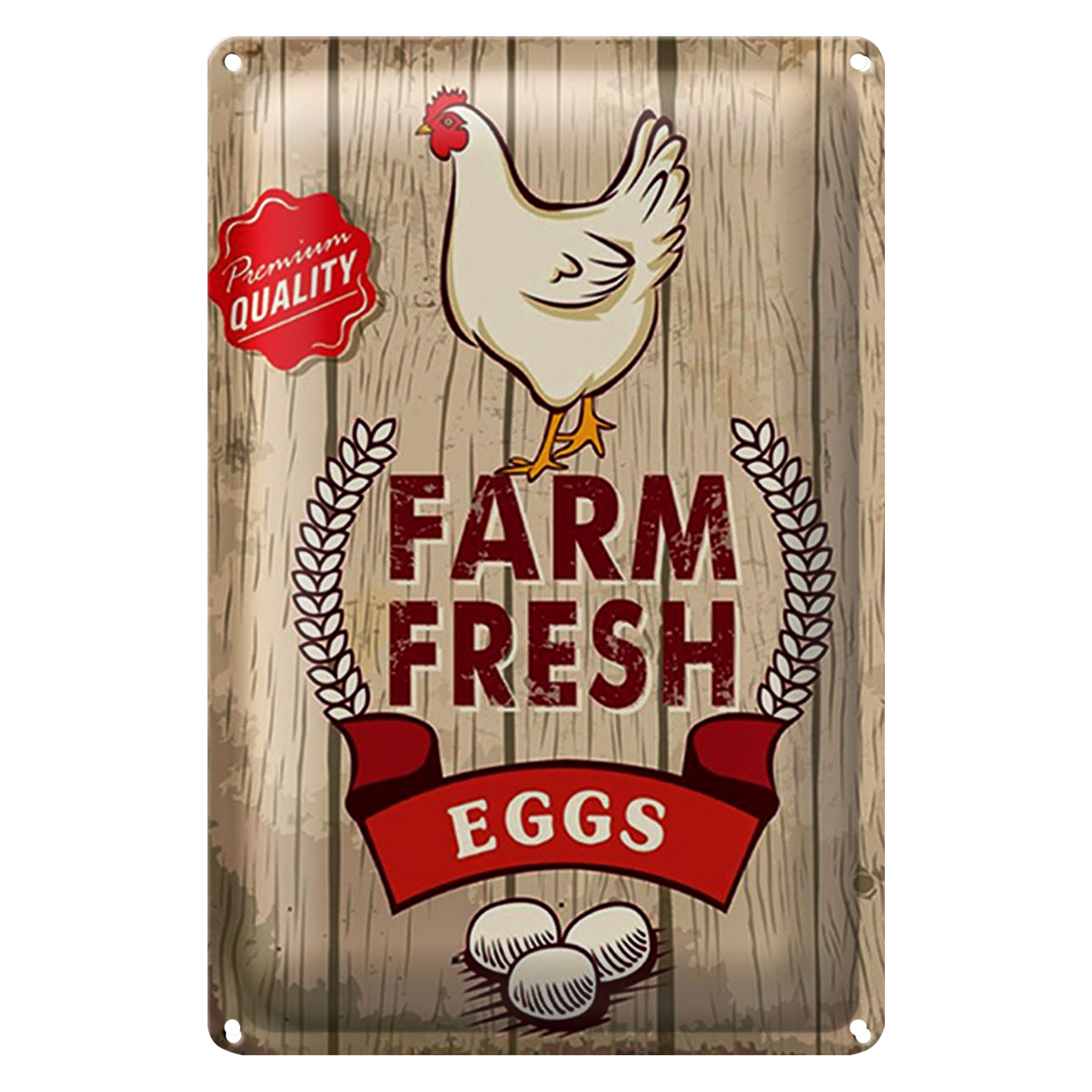 Blechschild Spruch 20x30cm Huhn farm fresh eggs premium