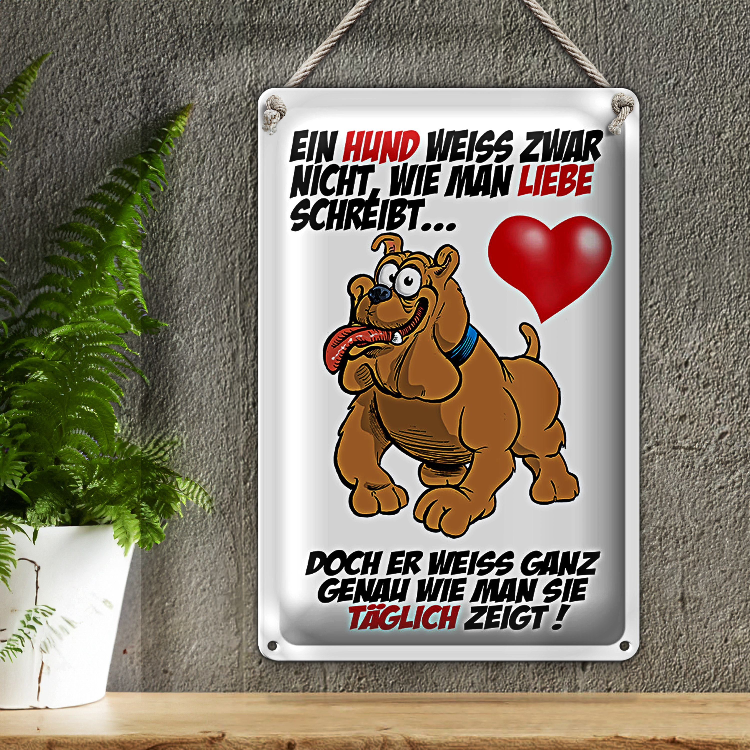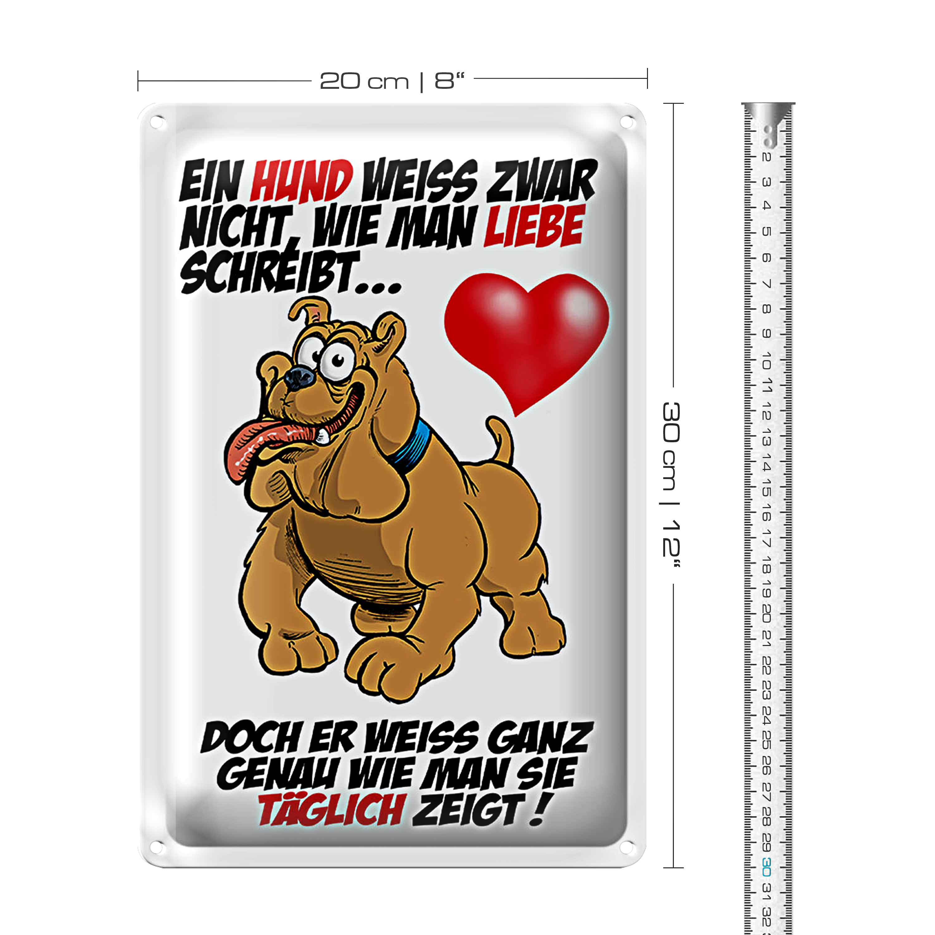 Blechschild Spruch 20x30cm Hund weiß nicht Liebe zu zeigen