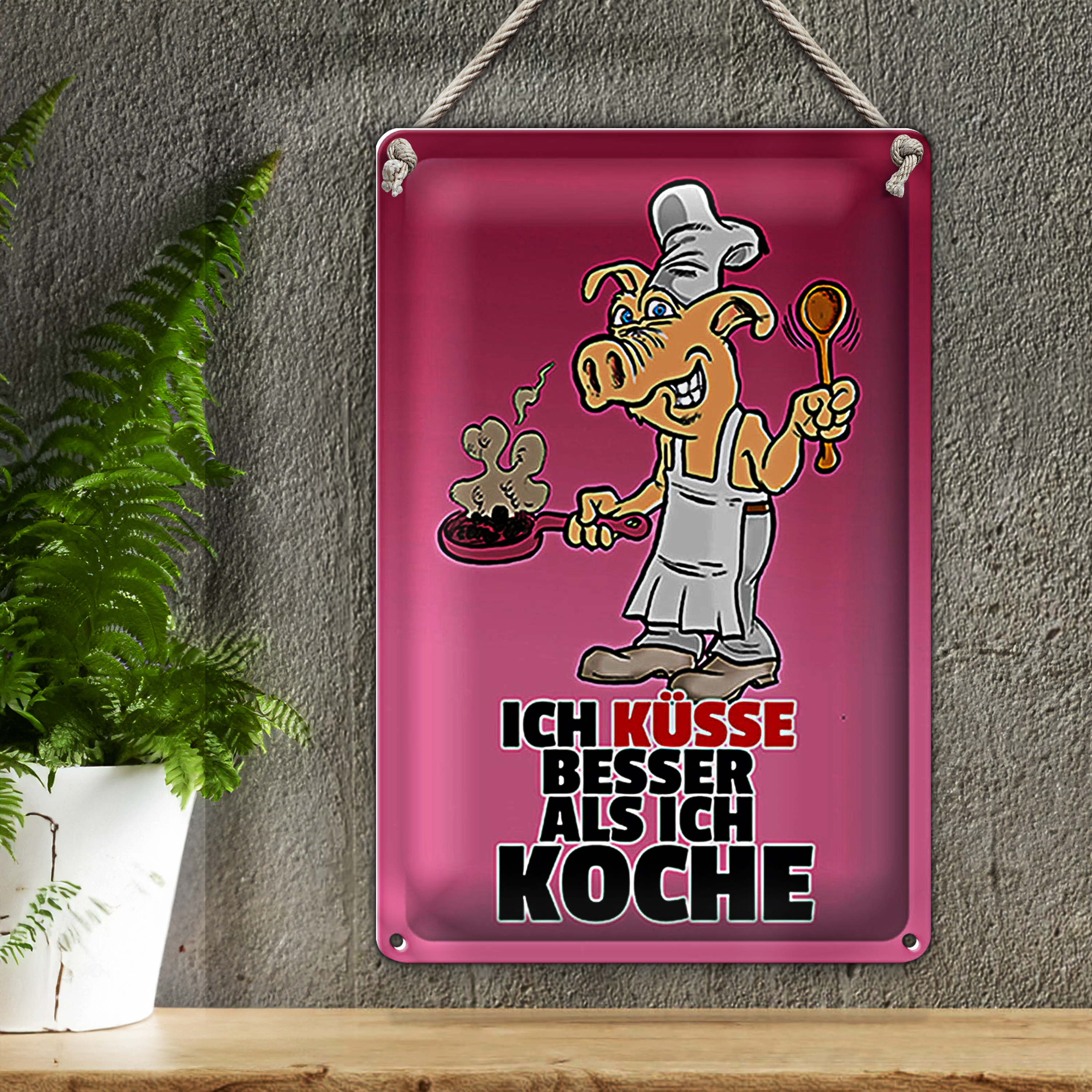 Blechschild Spruch 20x30cm Ich küsse besser als ich koche