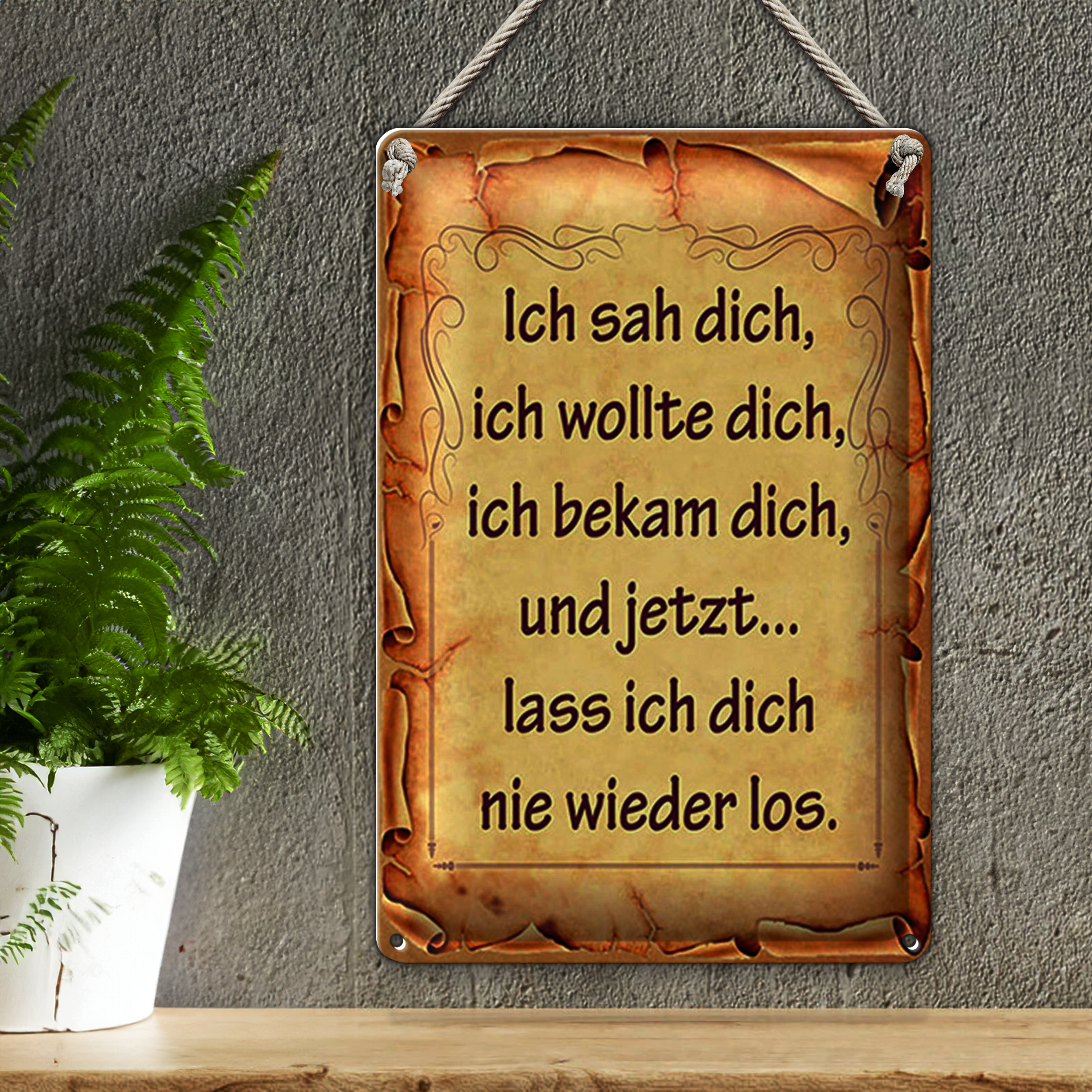 Blechschild Spruch 20x30cm ich sah dich ich bekam dich und
