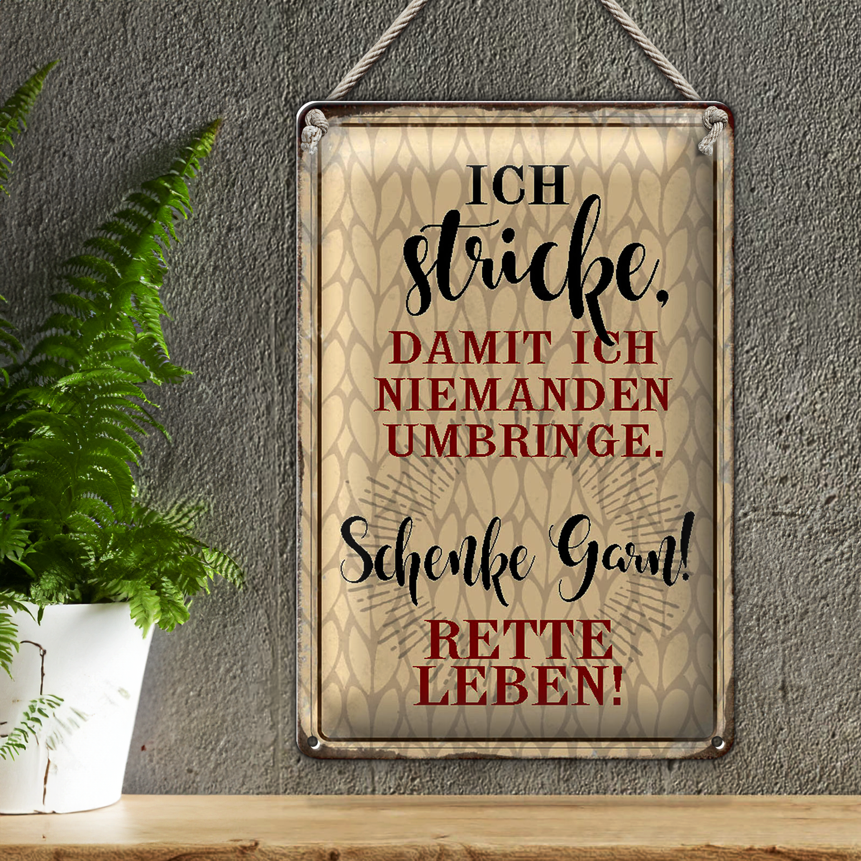 Blechschild Spruch 20x30cm ich stricke niemanden umbringe