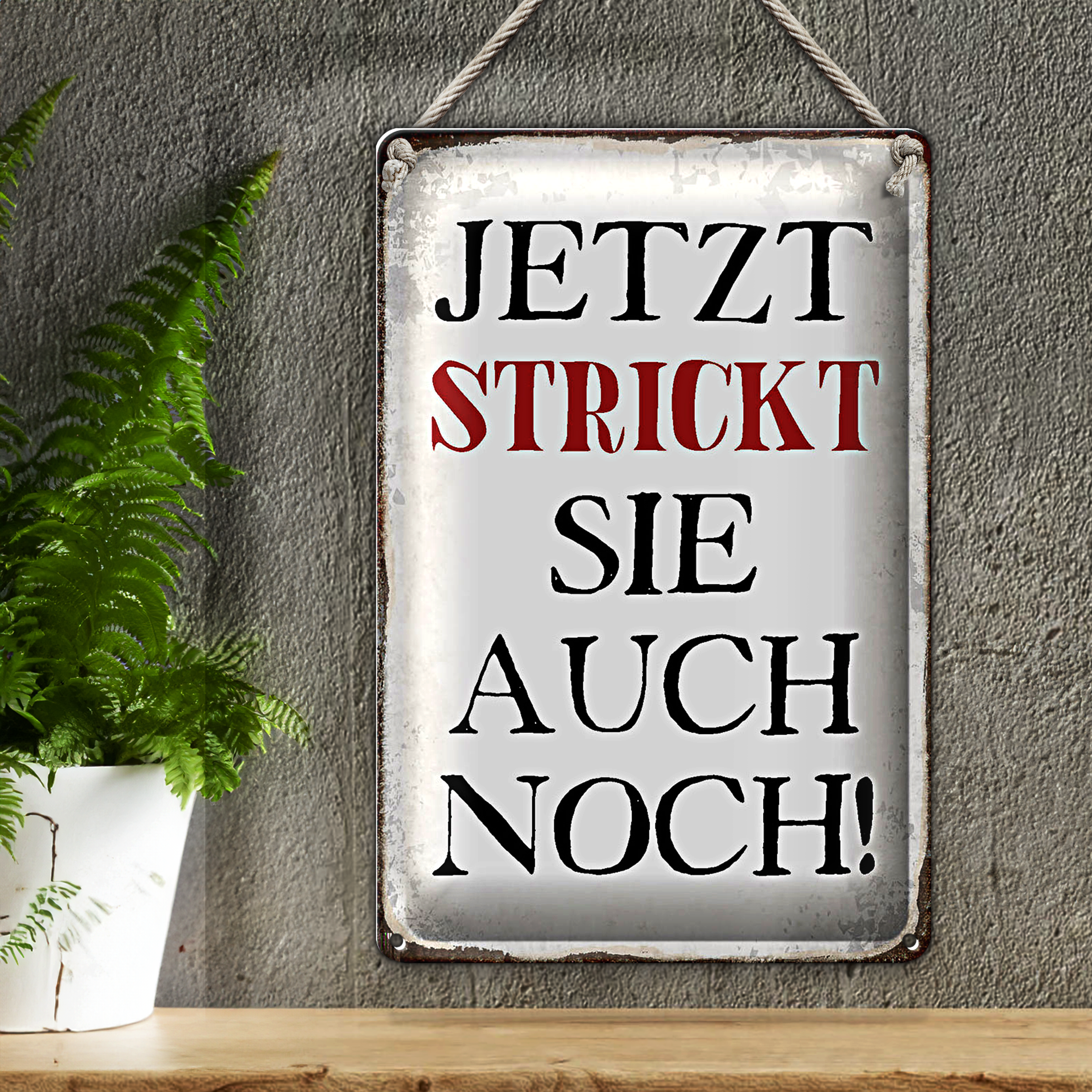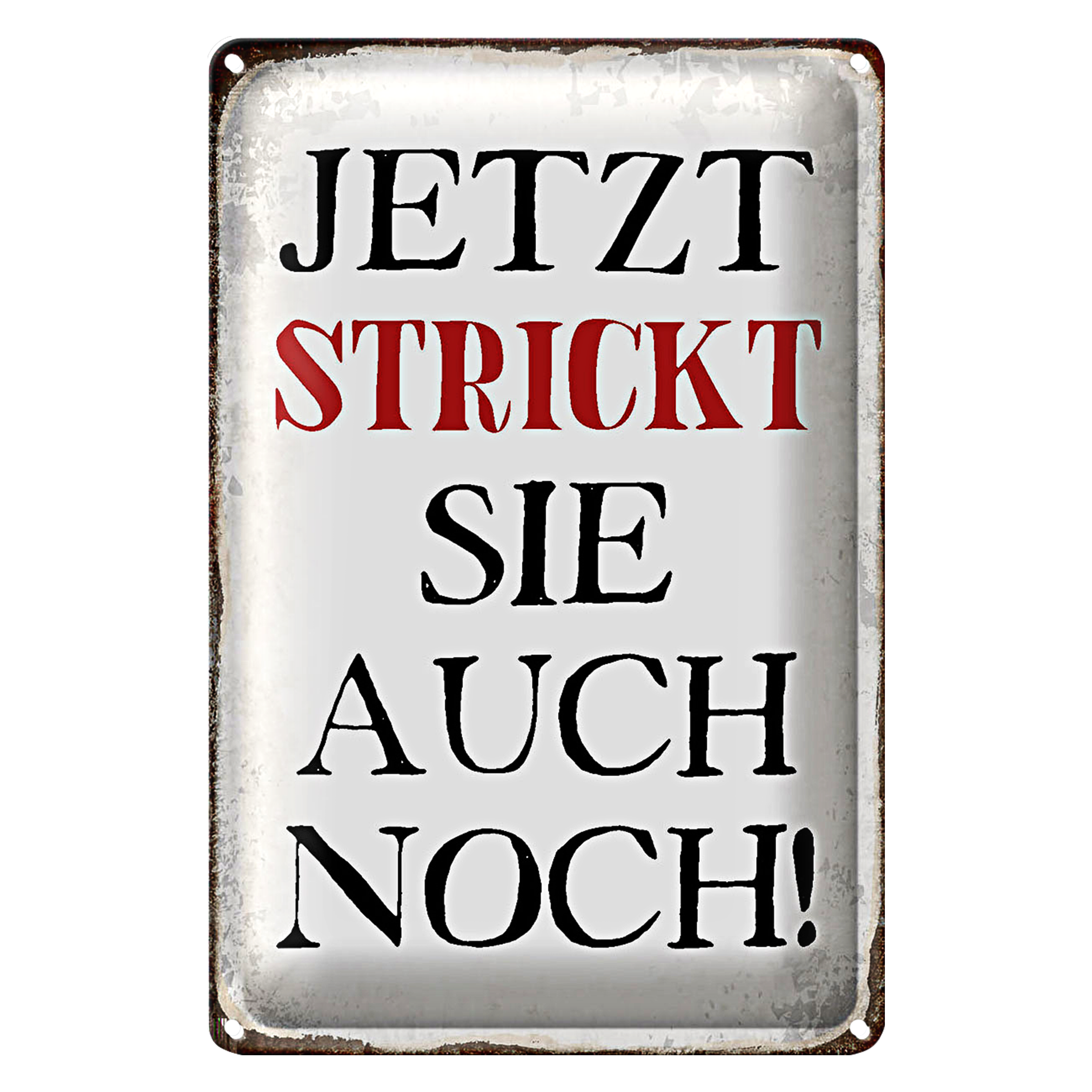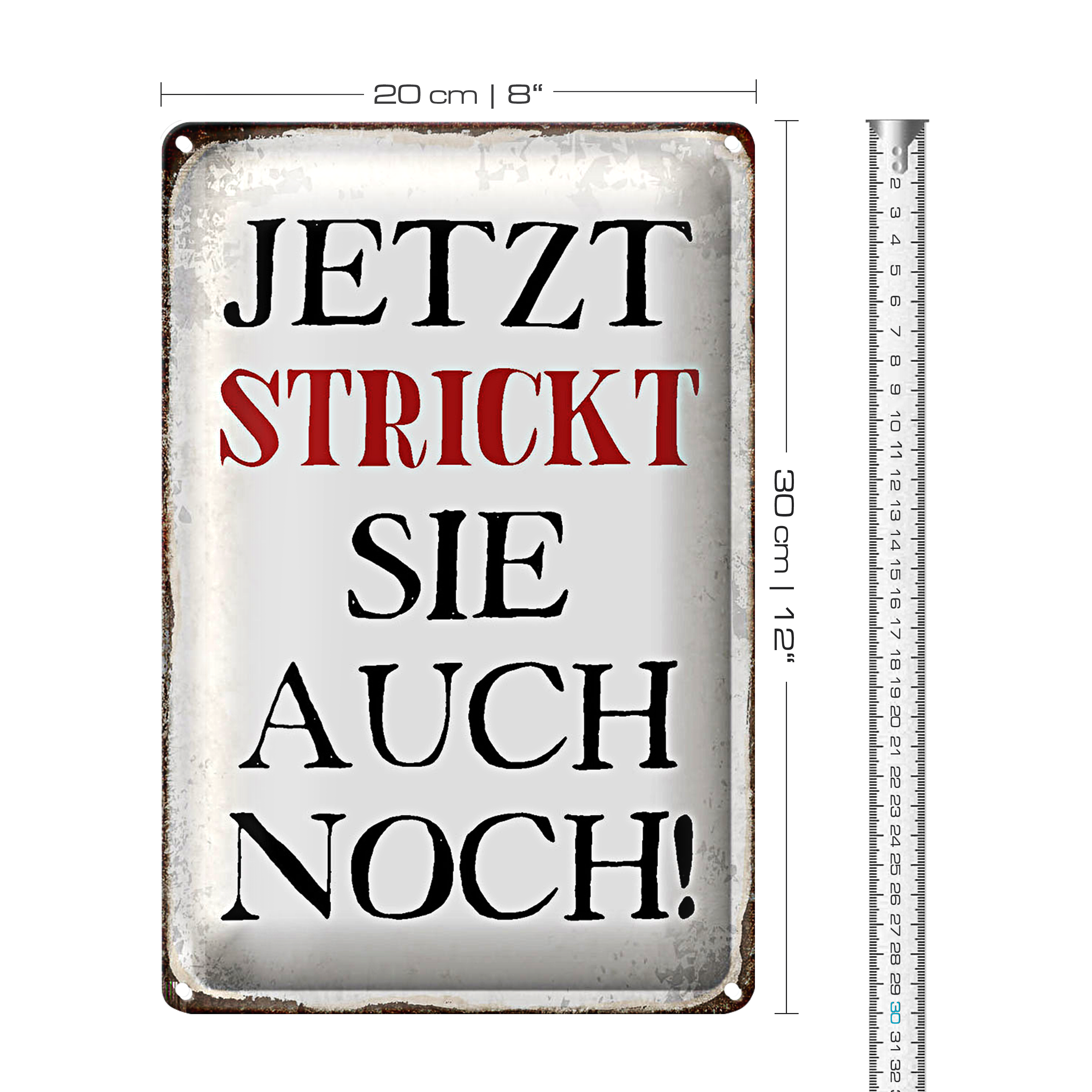 Blechschild Spruch 20x30cm jetzt strickt sie auch noch