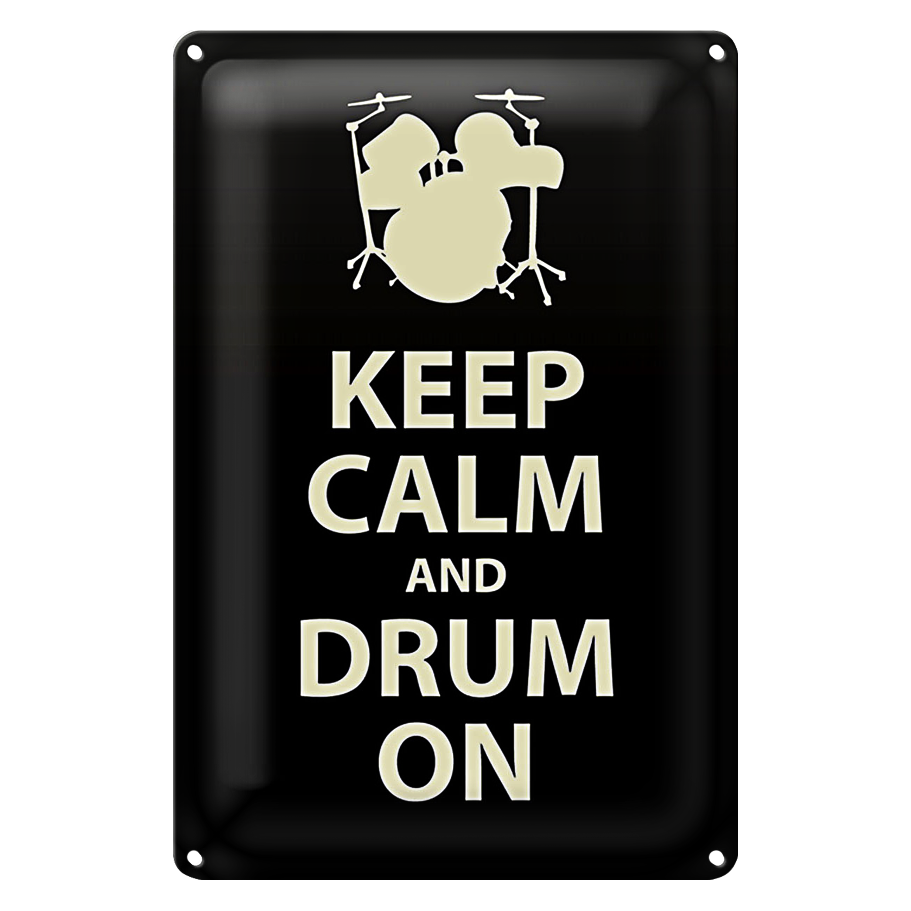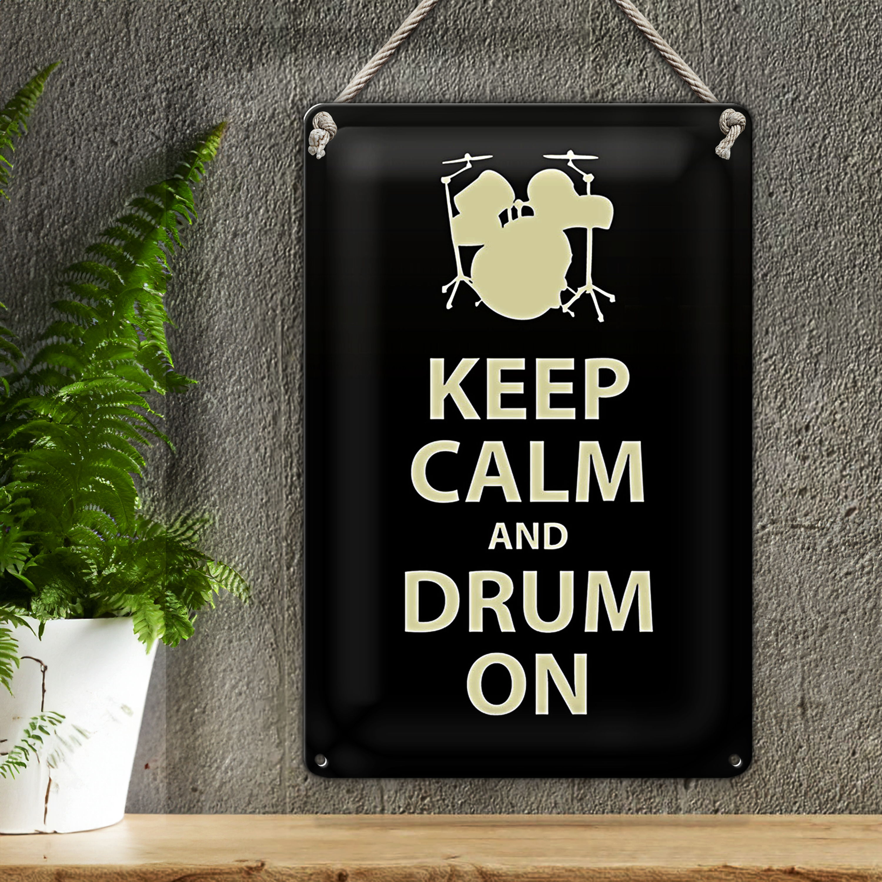 Blechschild Spruch 20x30cm Keep calm and drum on