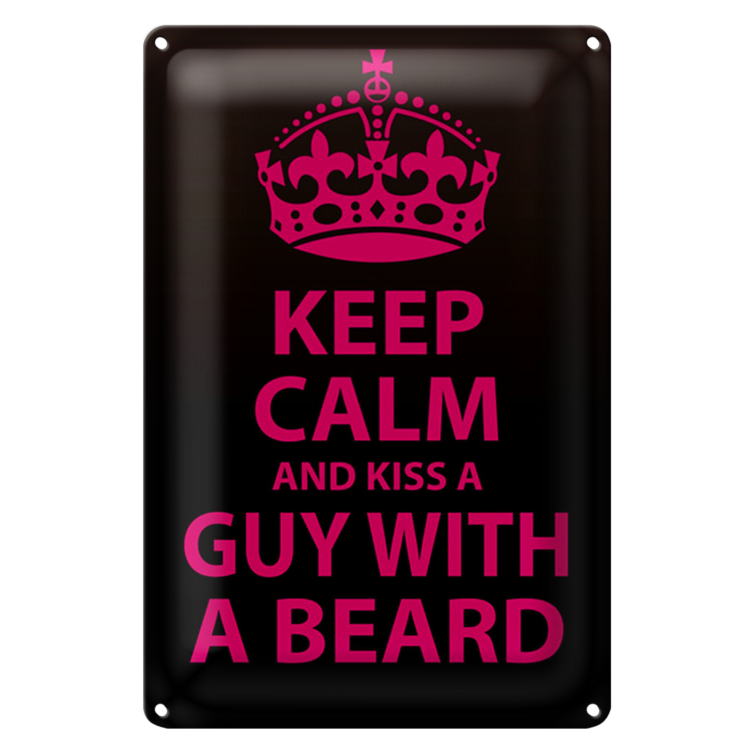 Blechschild Spruch 20x30cm Keep Calm and kiss guy with a beard