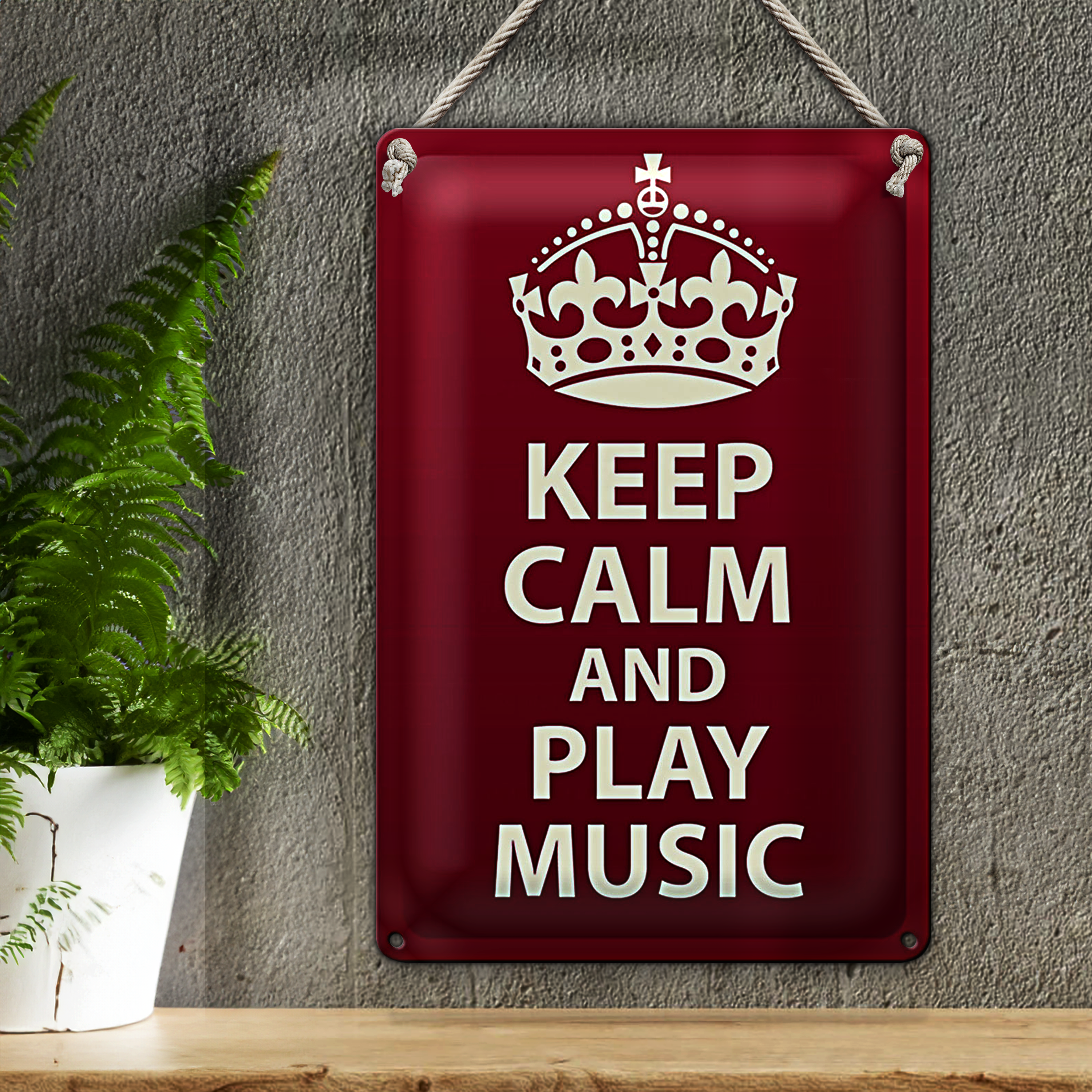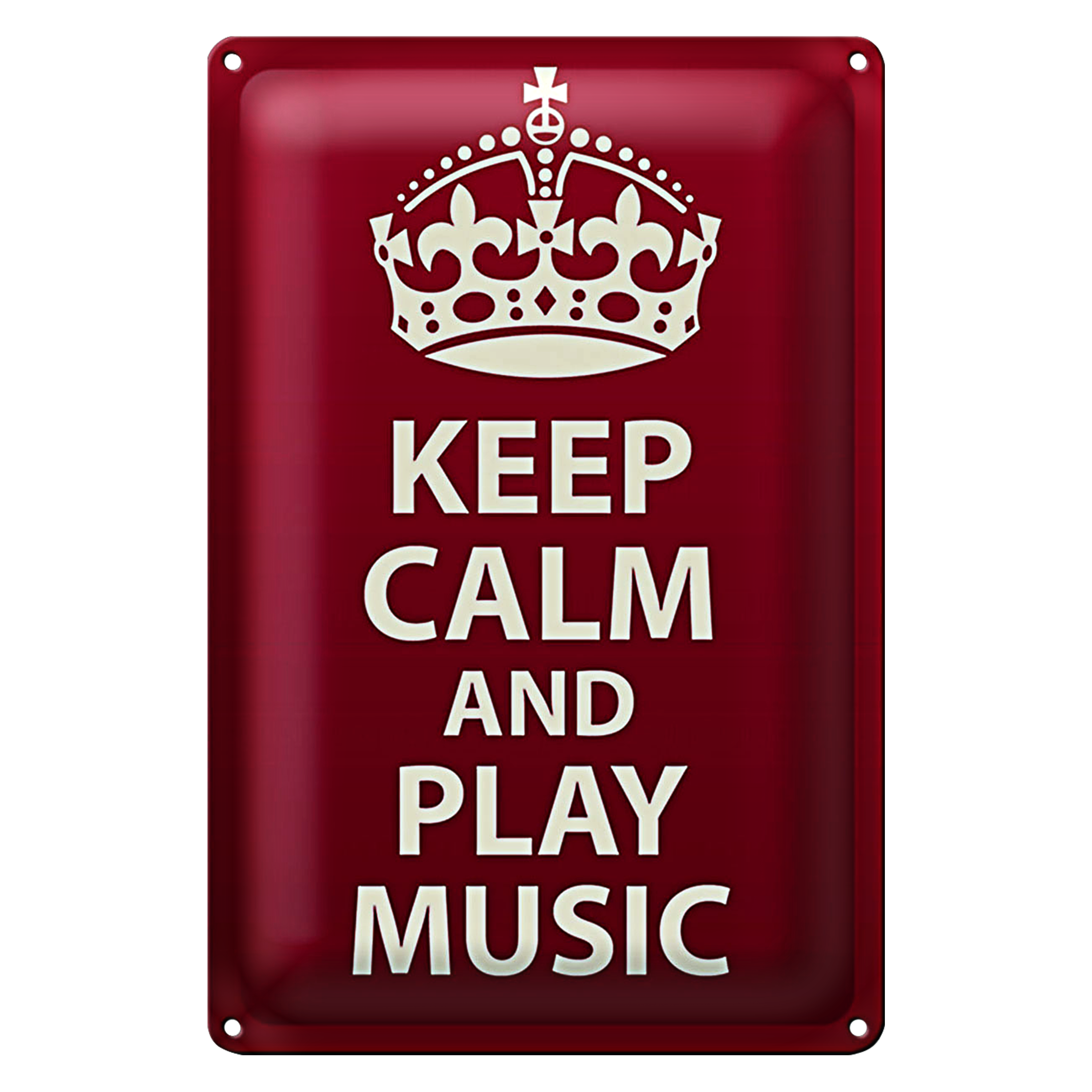 Blechschild Spruch 20x30cm Keep Calm and play Music Krone