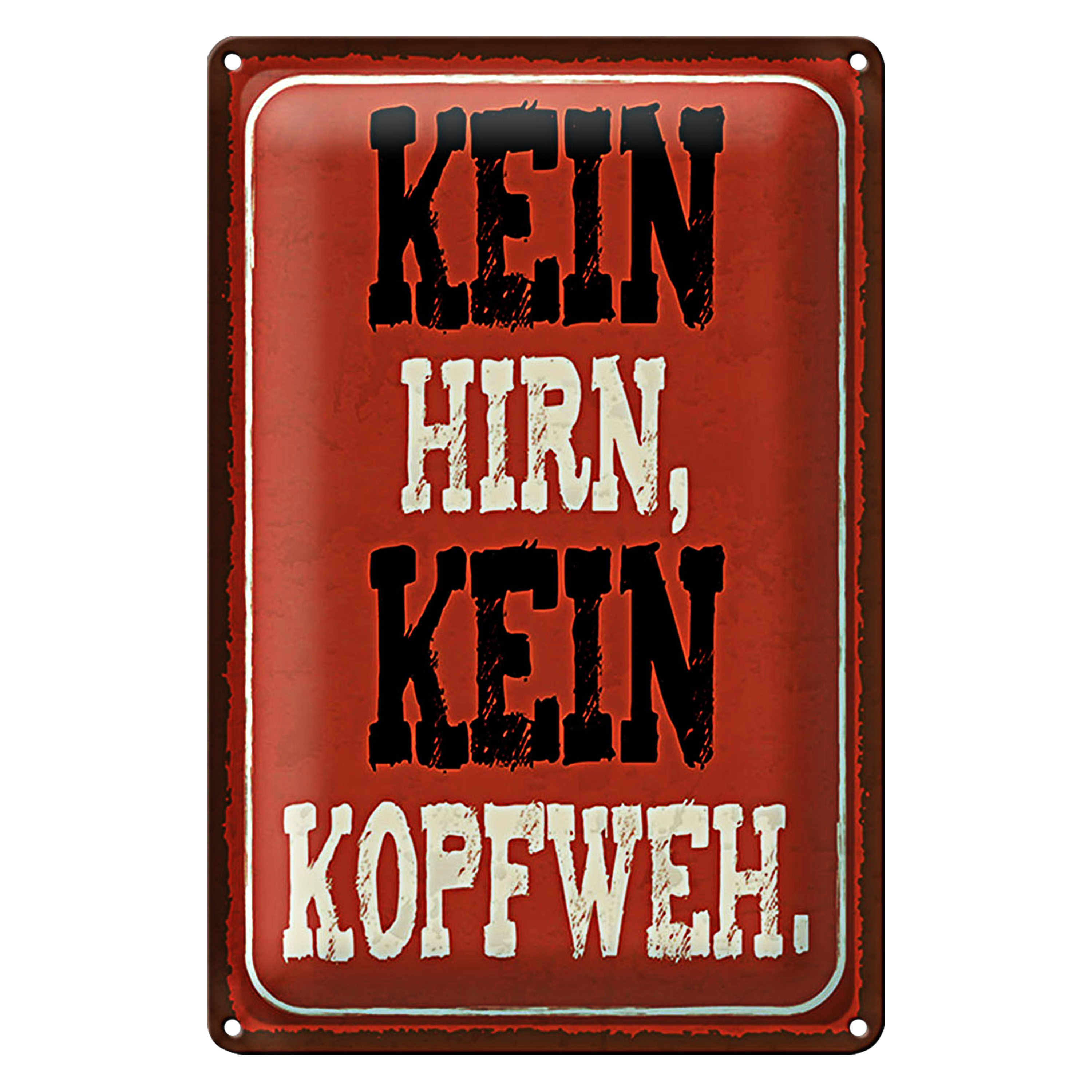 Blechschild Spruch 20x30cm kein Hirn kein Kopfweh