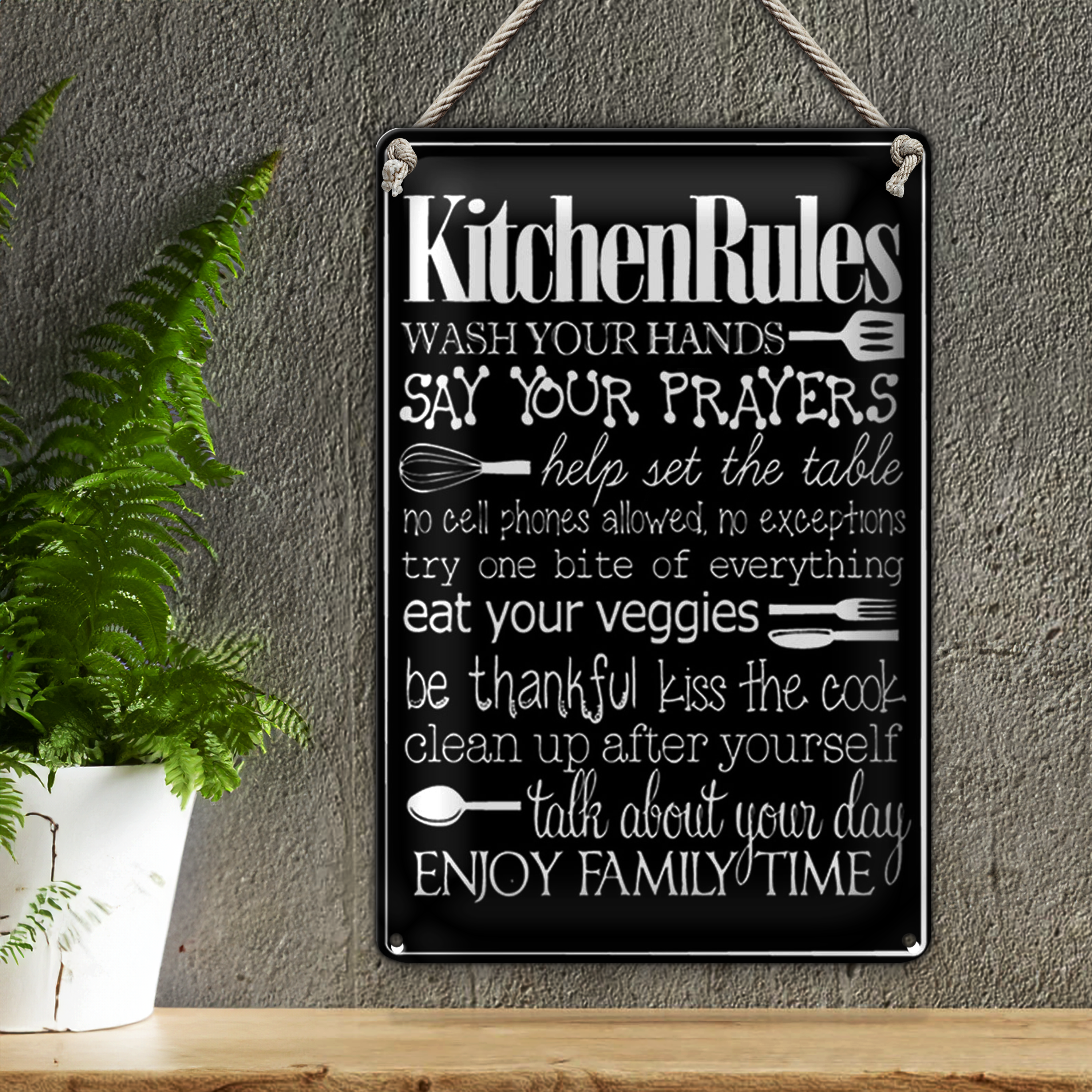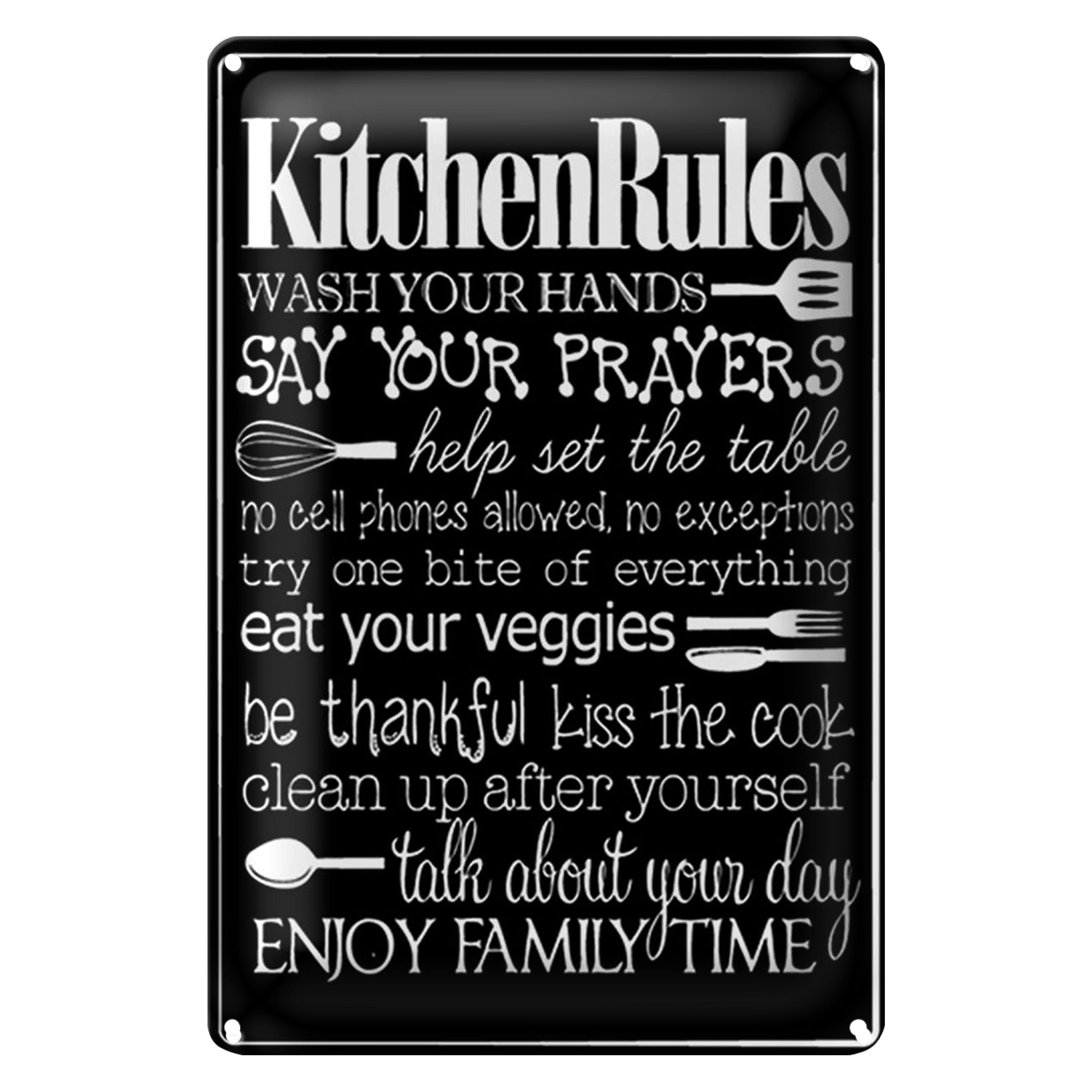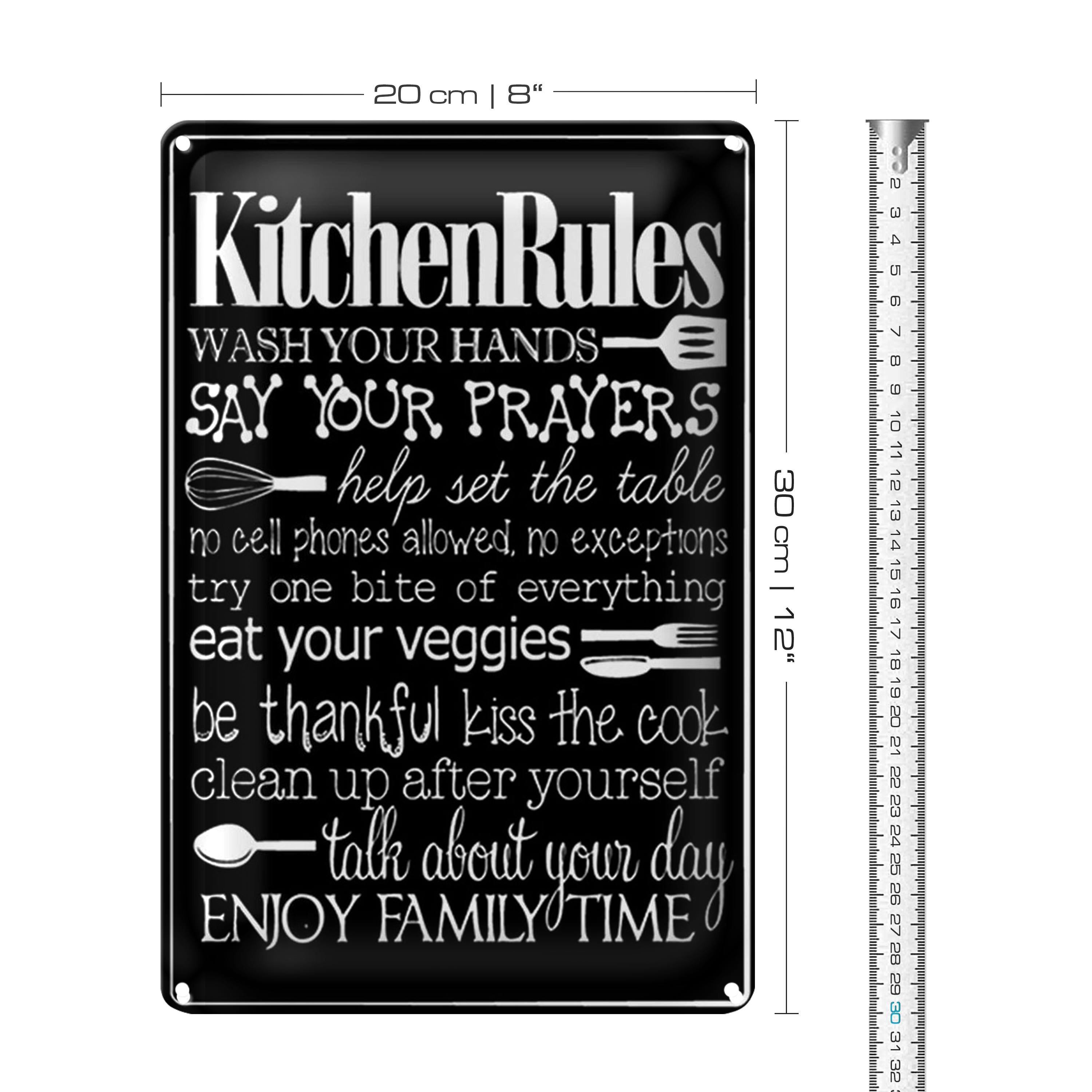 Blechschild Spruch 20x30cm Kitchen Rules wash your hands