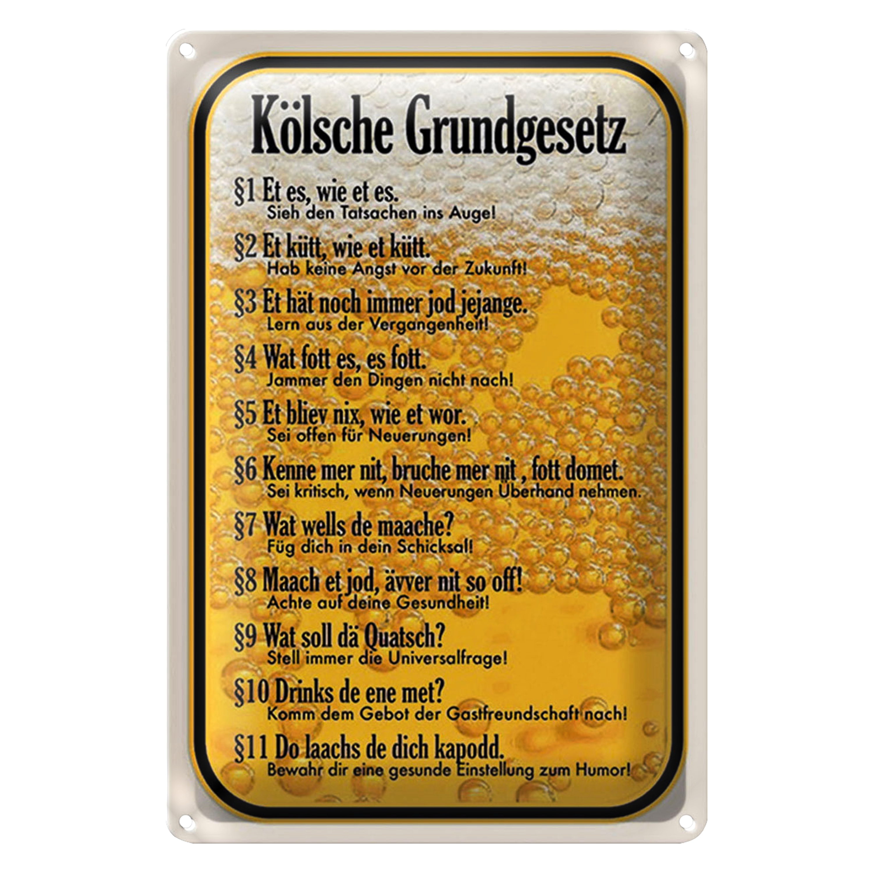 Blechschild Spruch 20x30cm Kölsche Grundgesetz Et es wie et