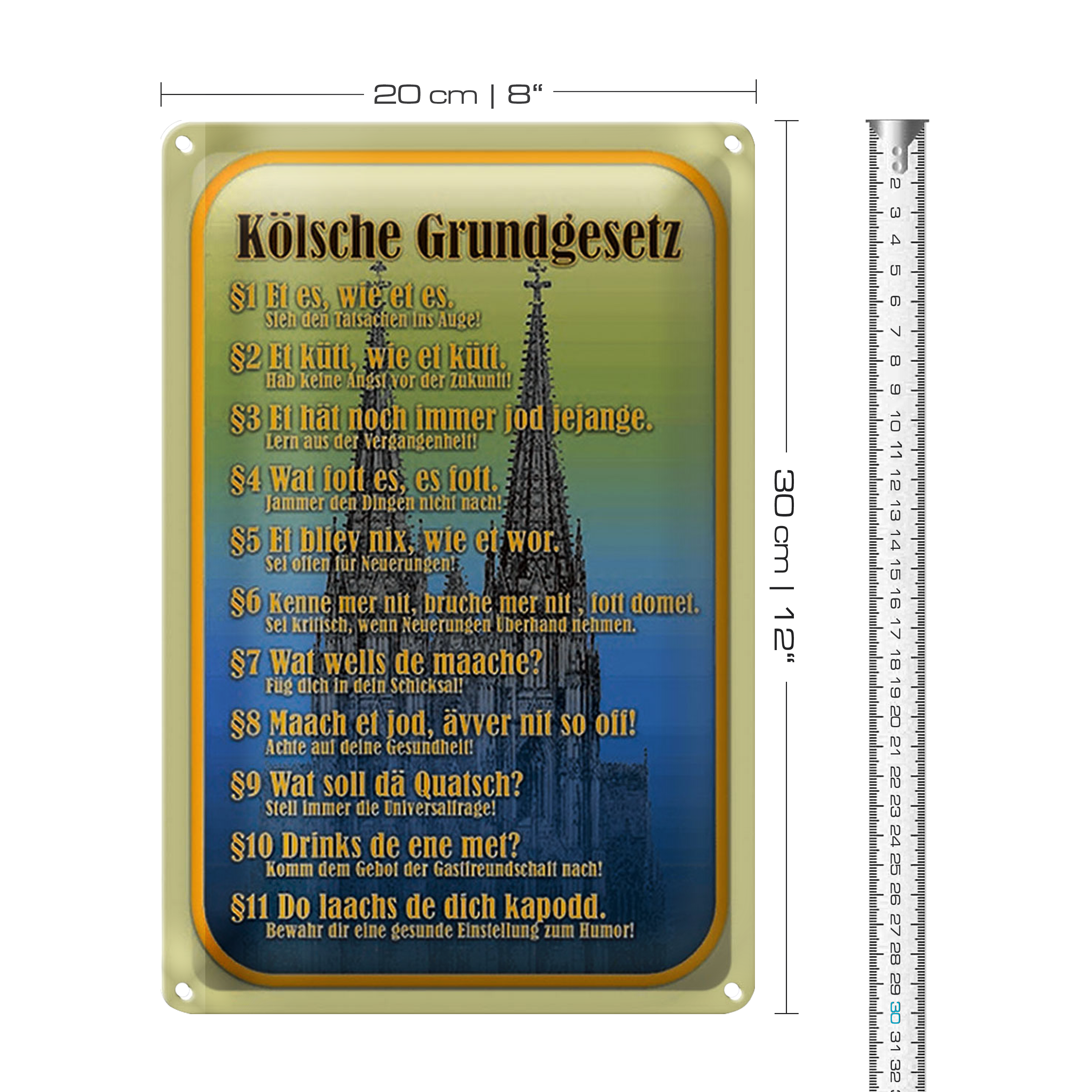 Blechschild Spruch 20x30cm Kölsche Grundgesetz wat fott es