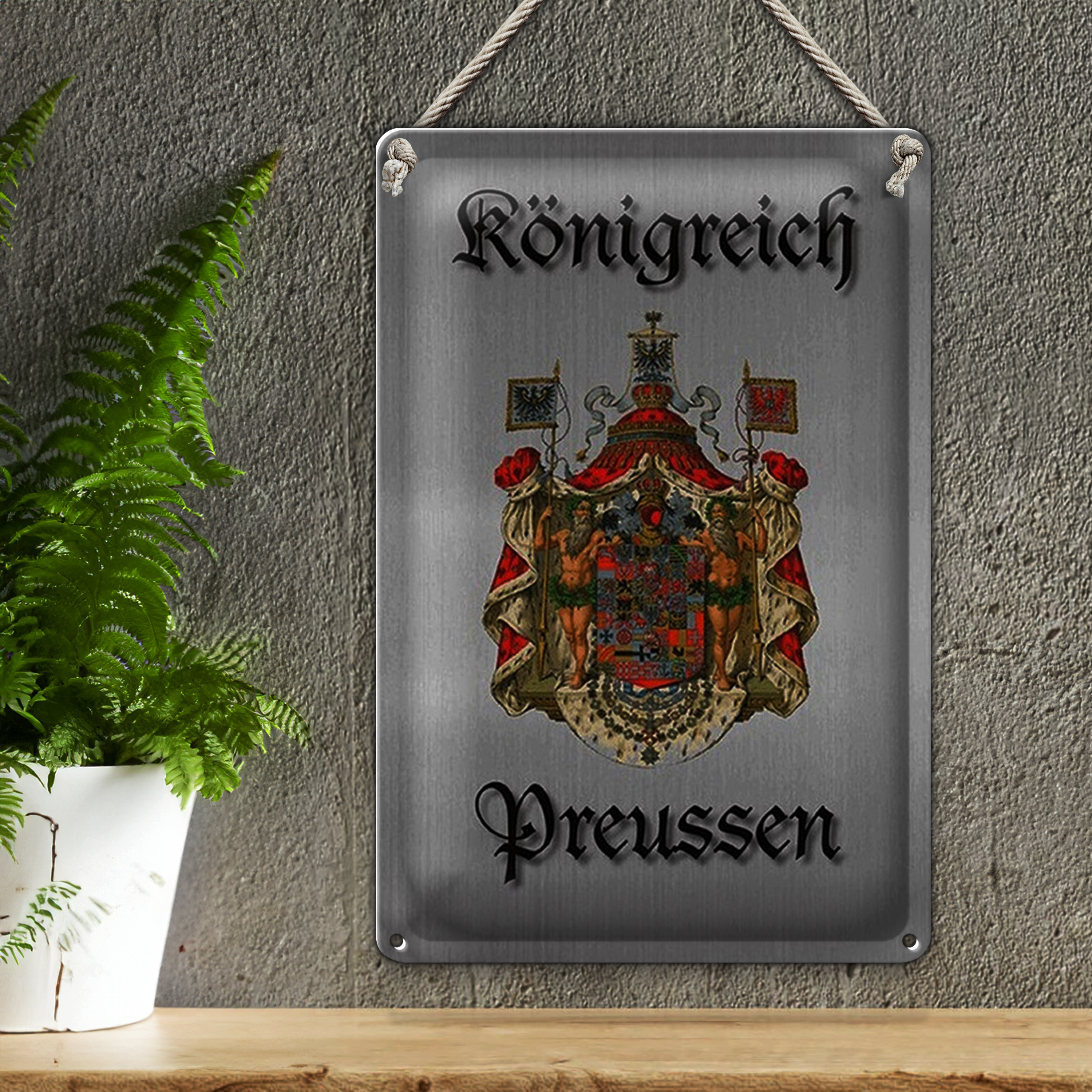 Blechschild Spruch 20x30cm Königreich Preussen Wappen graues Schild