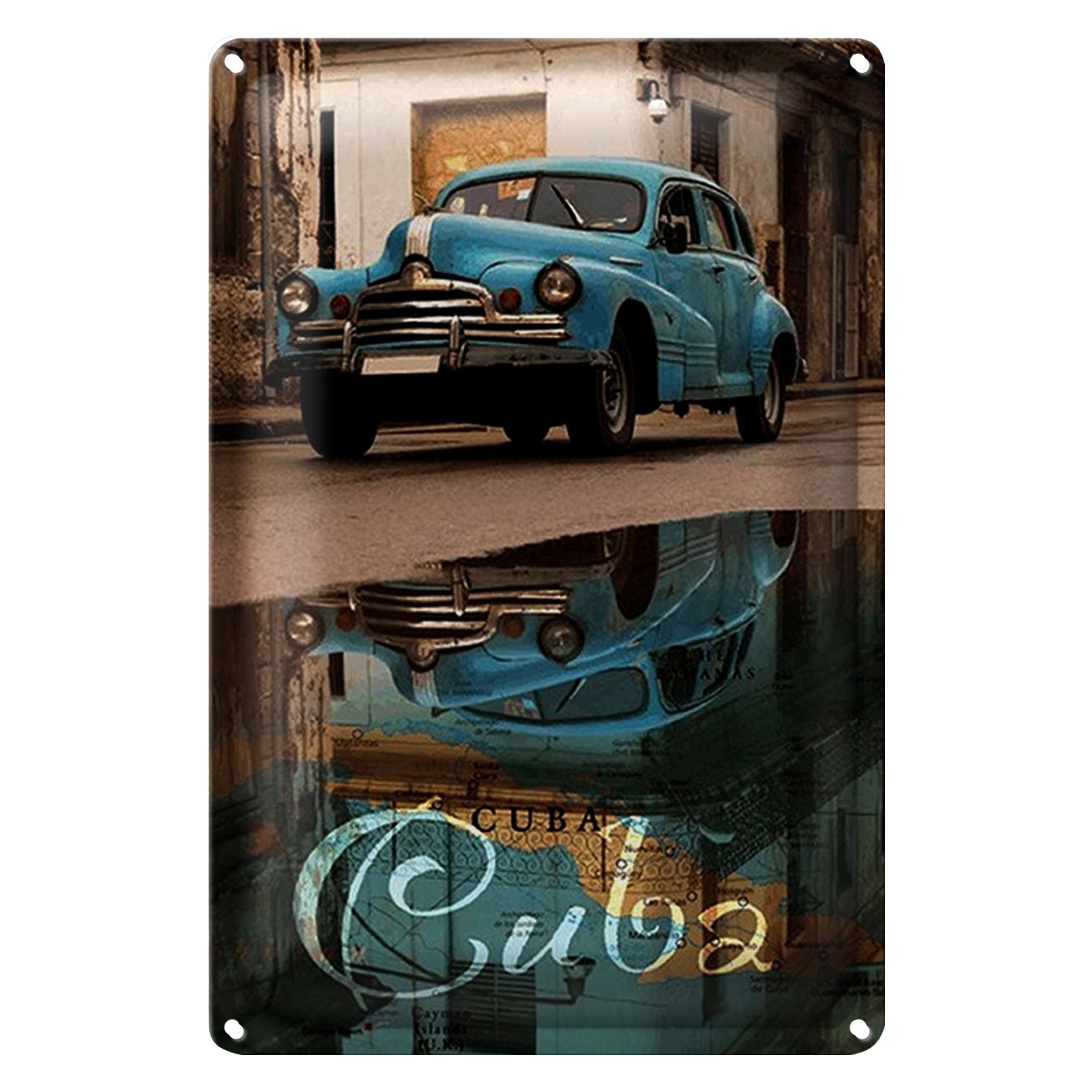 Blechschild Spruch 20x30cm Kuba Auto blau Oldtimer Spiegelung