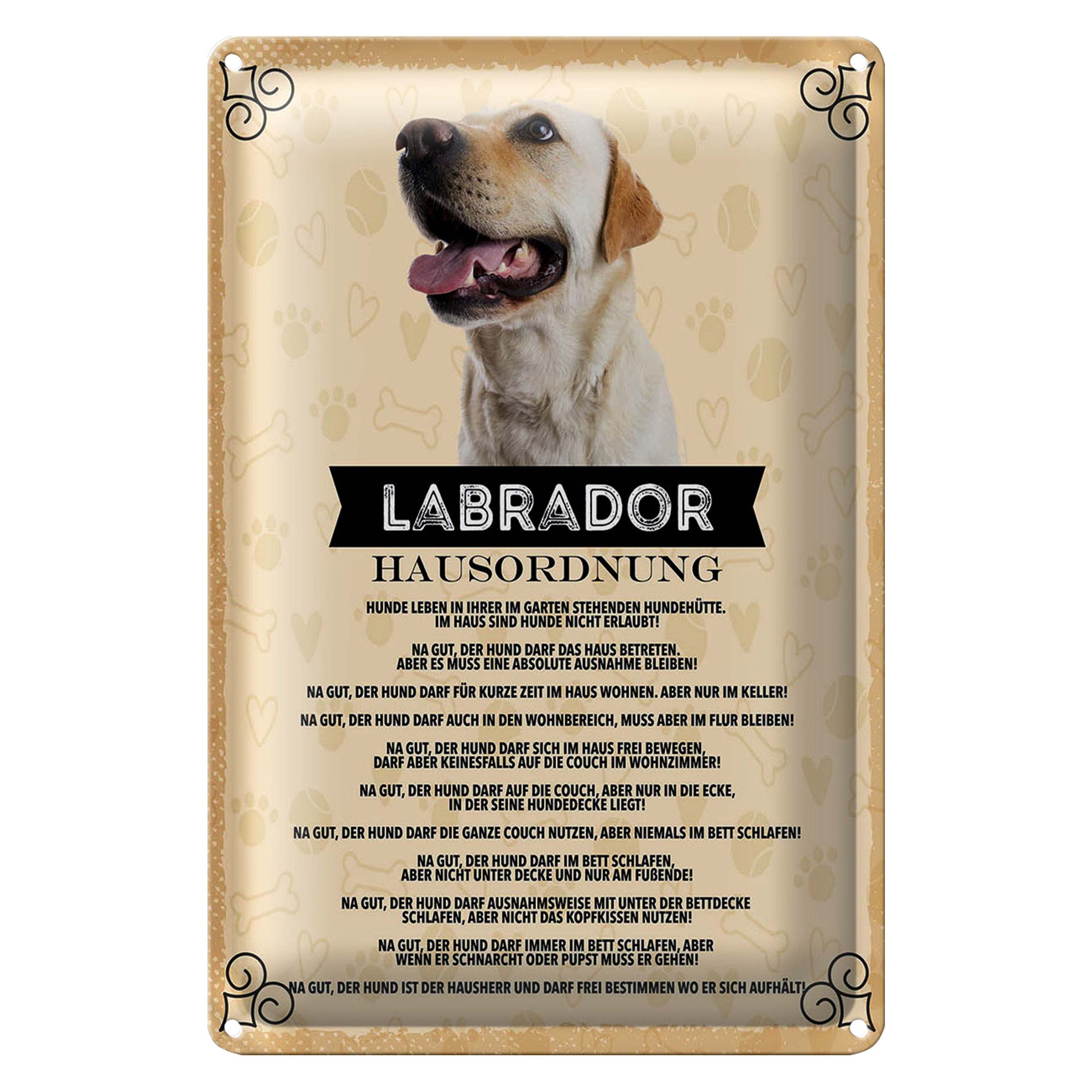 Blechschild Spruch 20x30cm Labrador Hausordnung