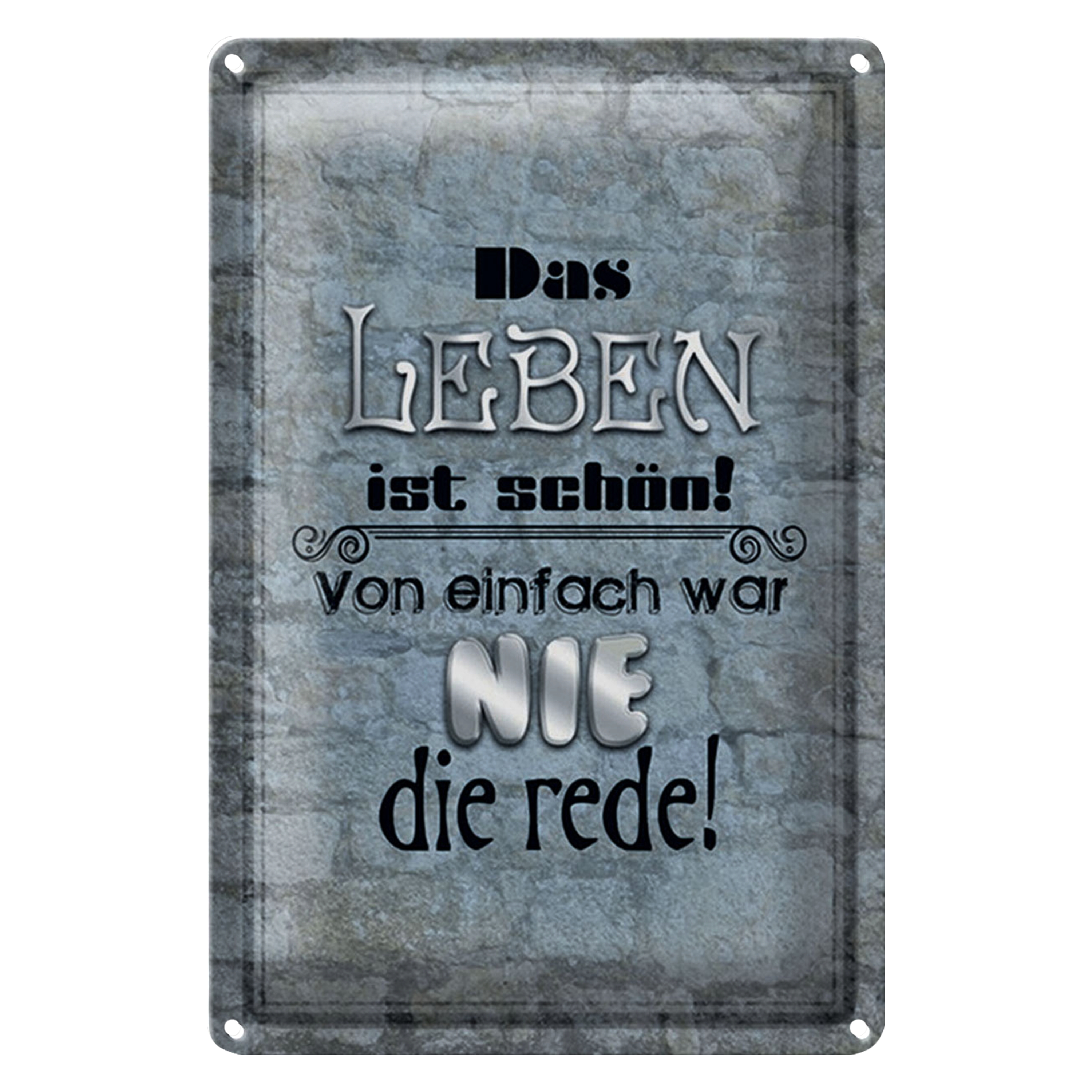 Blechschild Spruch 20x30cm Leben schön einfach war nie Rede