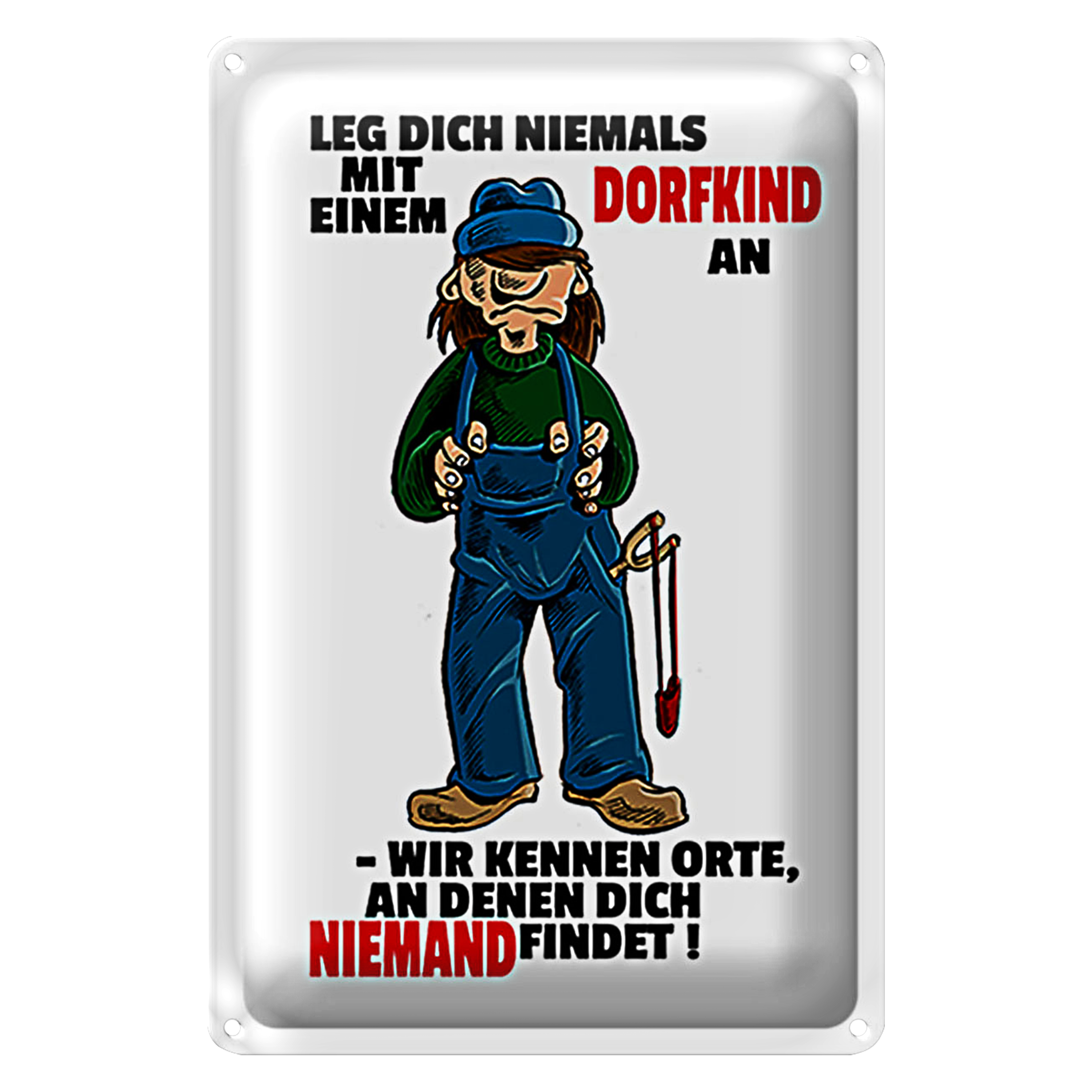 Blechschild Spruch 20x30cm Leg dich nicht mit einem Dorfkind an