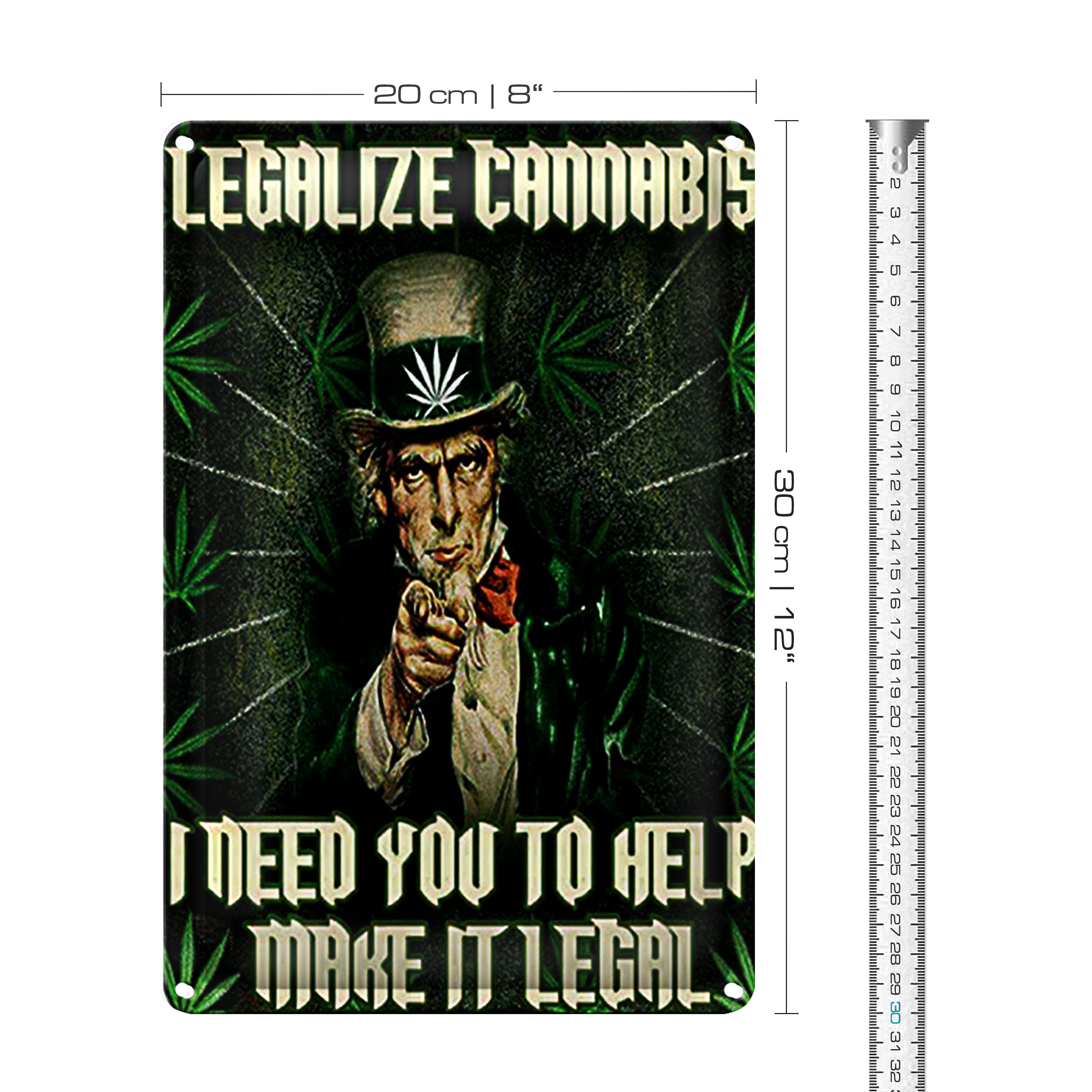 Blechschild Spruch 20x30cm legalize cannabis need you help