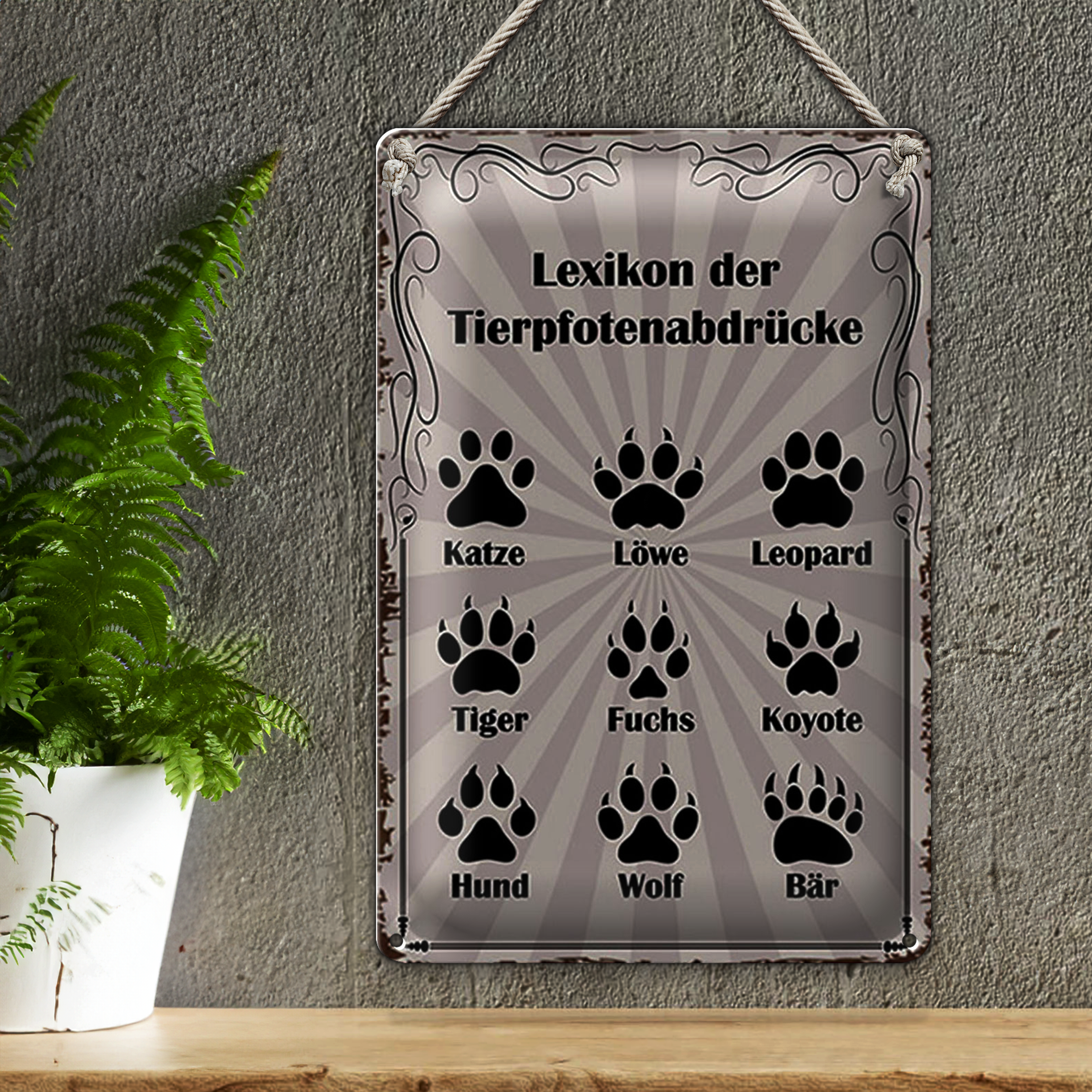 Blechschild Spruch 20x30cm Lexikon Tierpfotenabdrücke Tiere